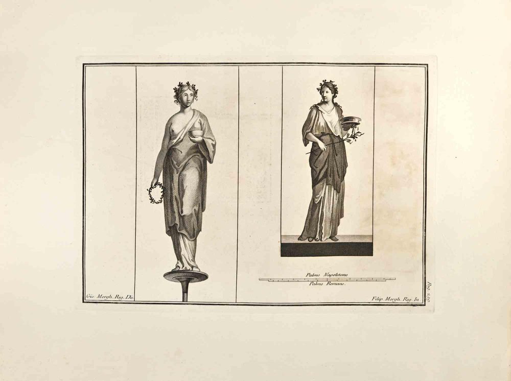 Filippo Morghen, Goddess Flora with Garland, Etching, 18th Century