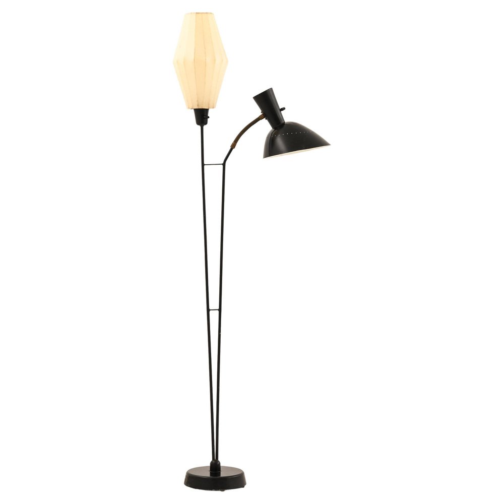 in several sizes and shapes; the Model 100L (1958), known as Ofir today, inspired by an upturned ceiling rose; and the Model no. 569 Giraffen Floor Lamp (1950s).