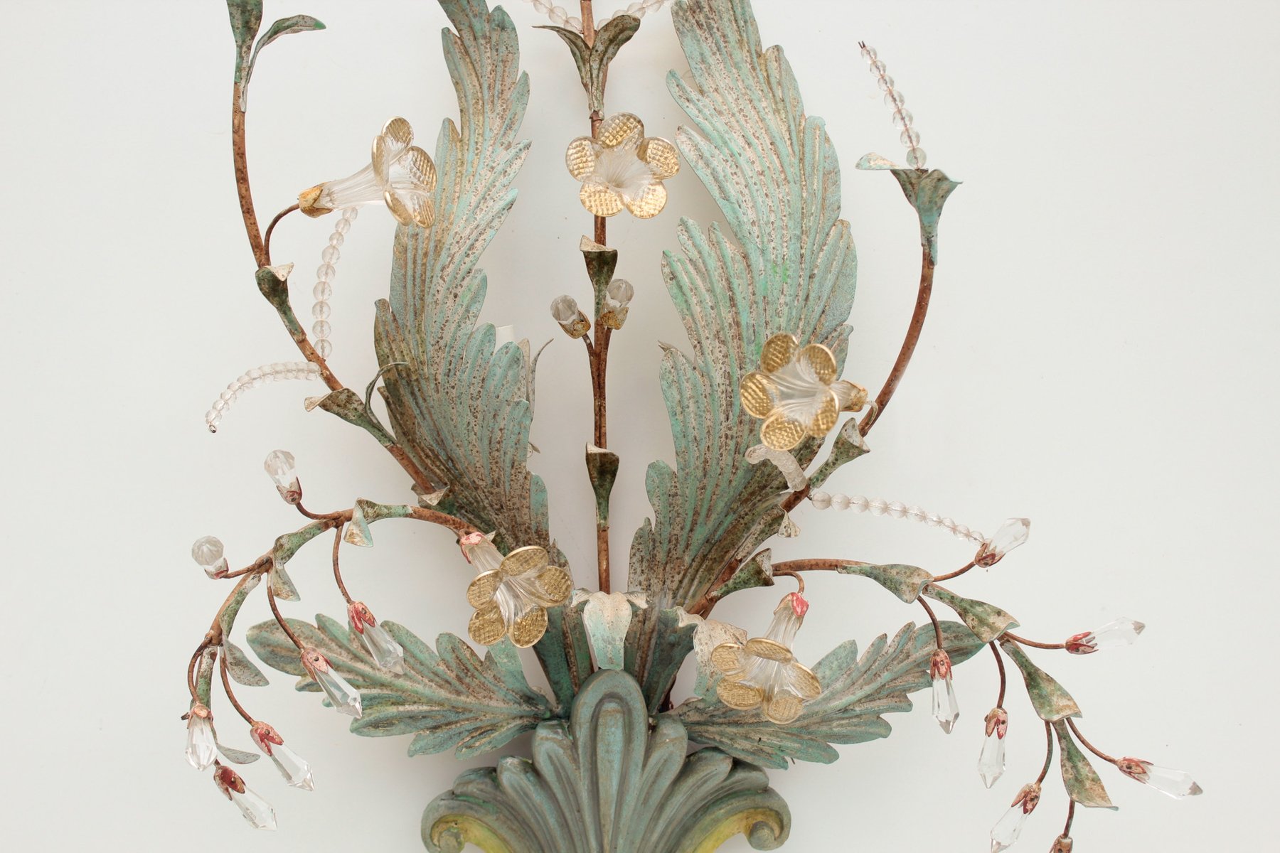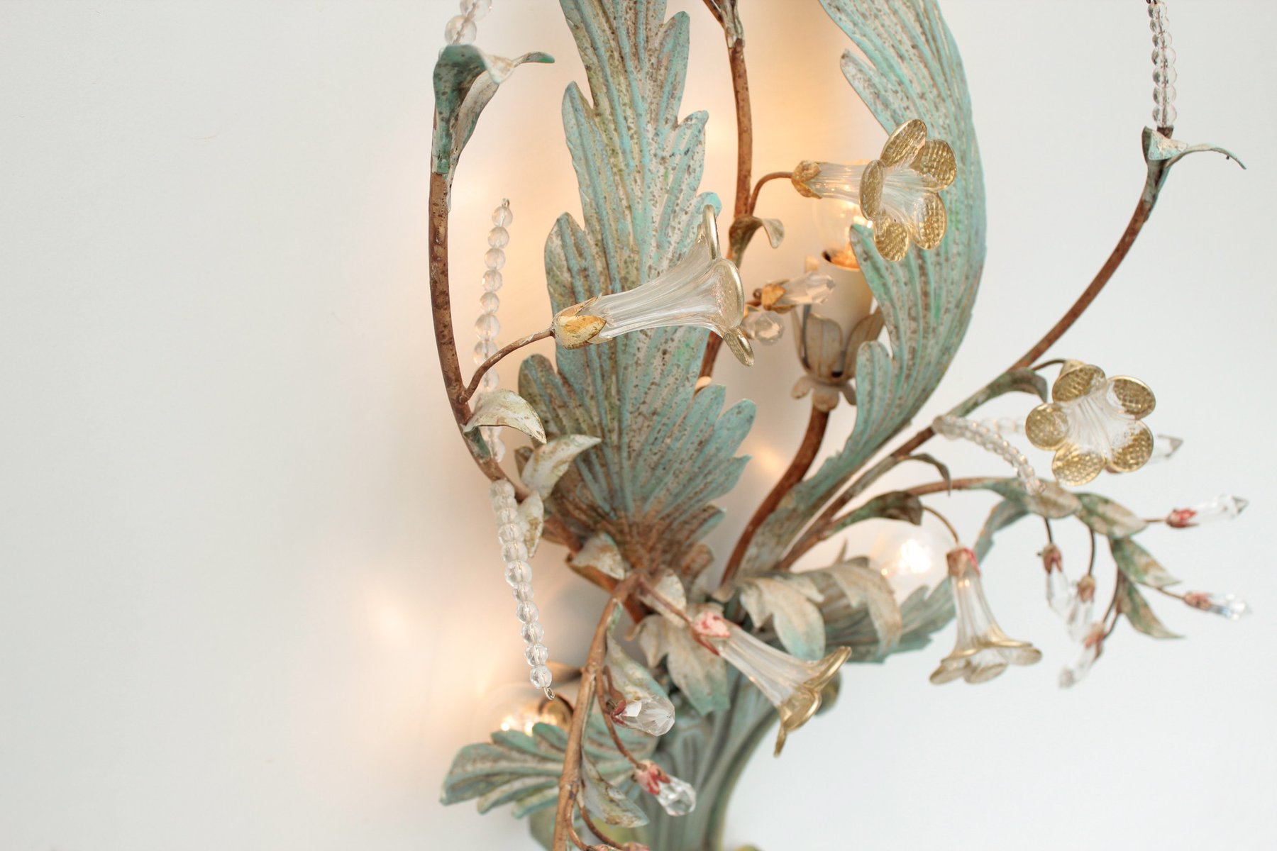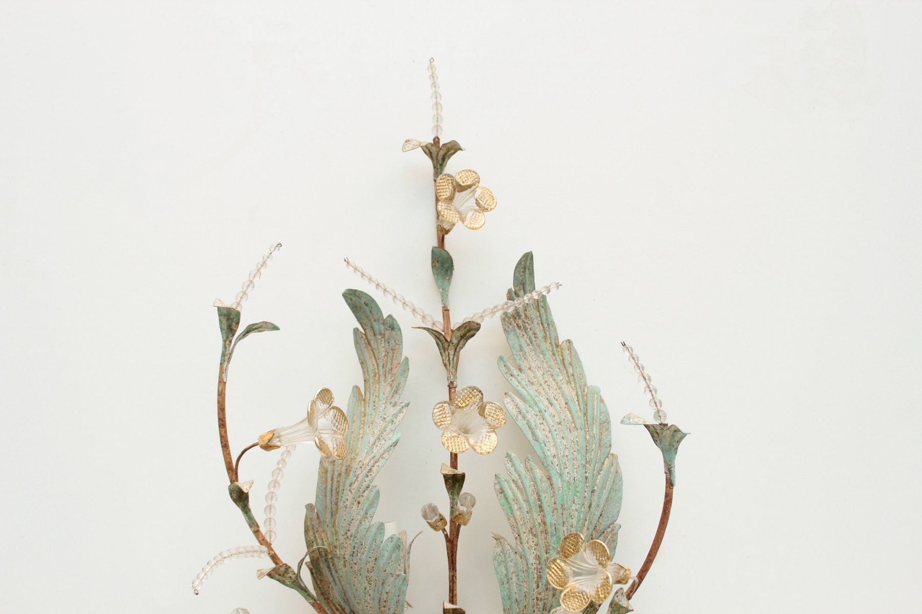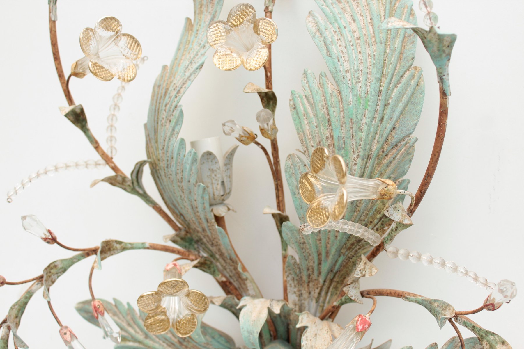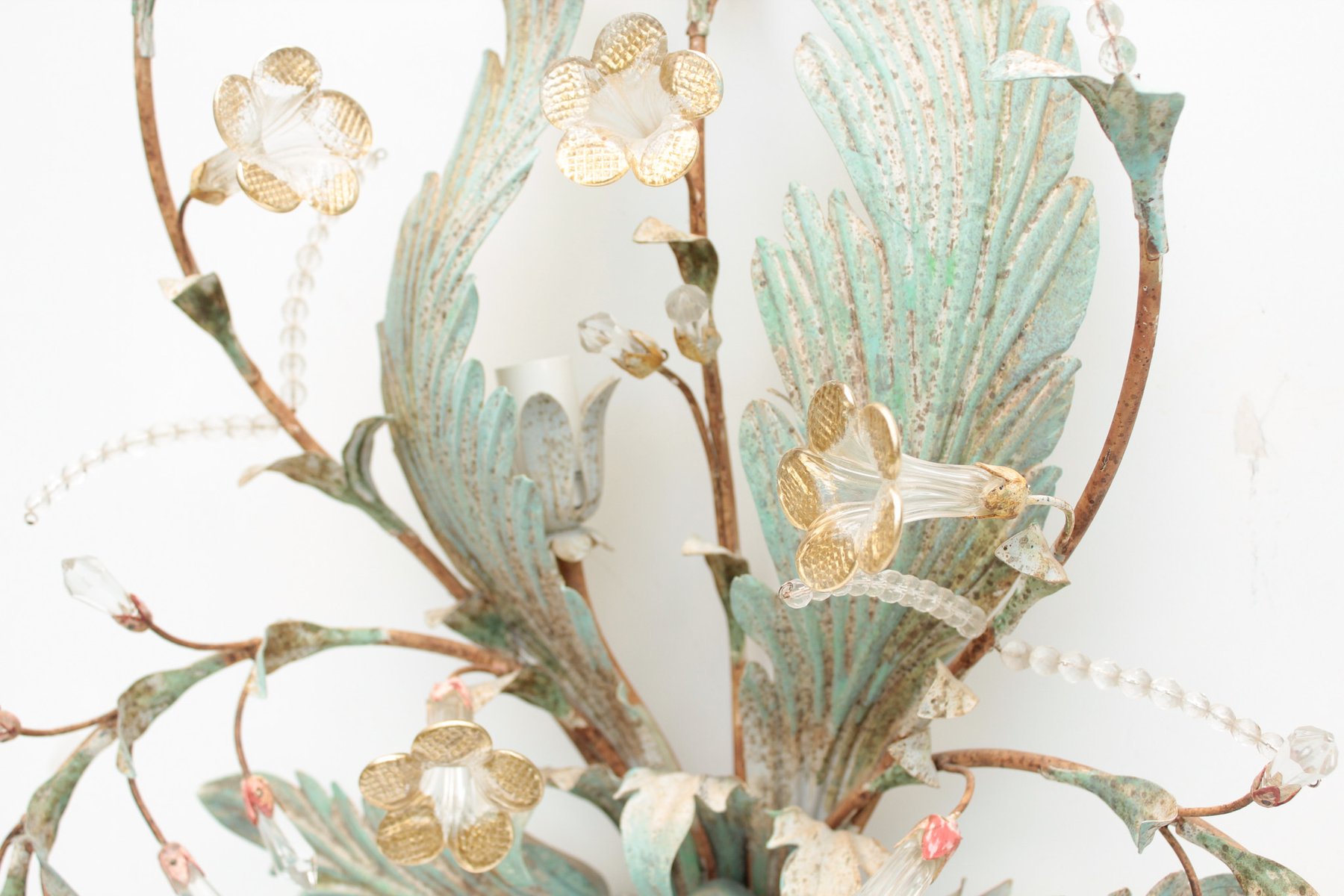 Floral Wall Lamp with Glass Flowers, Gold and Pastel, 1970s