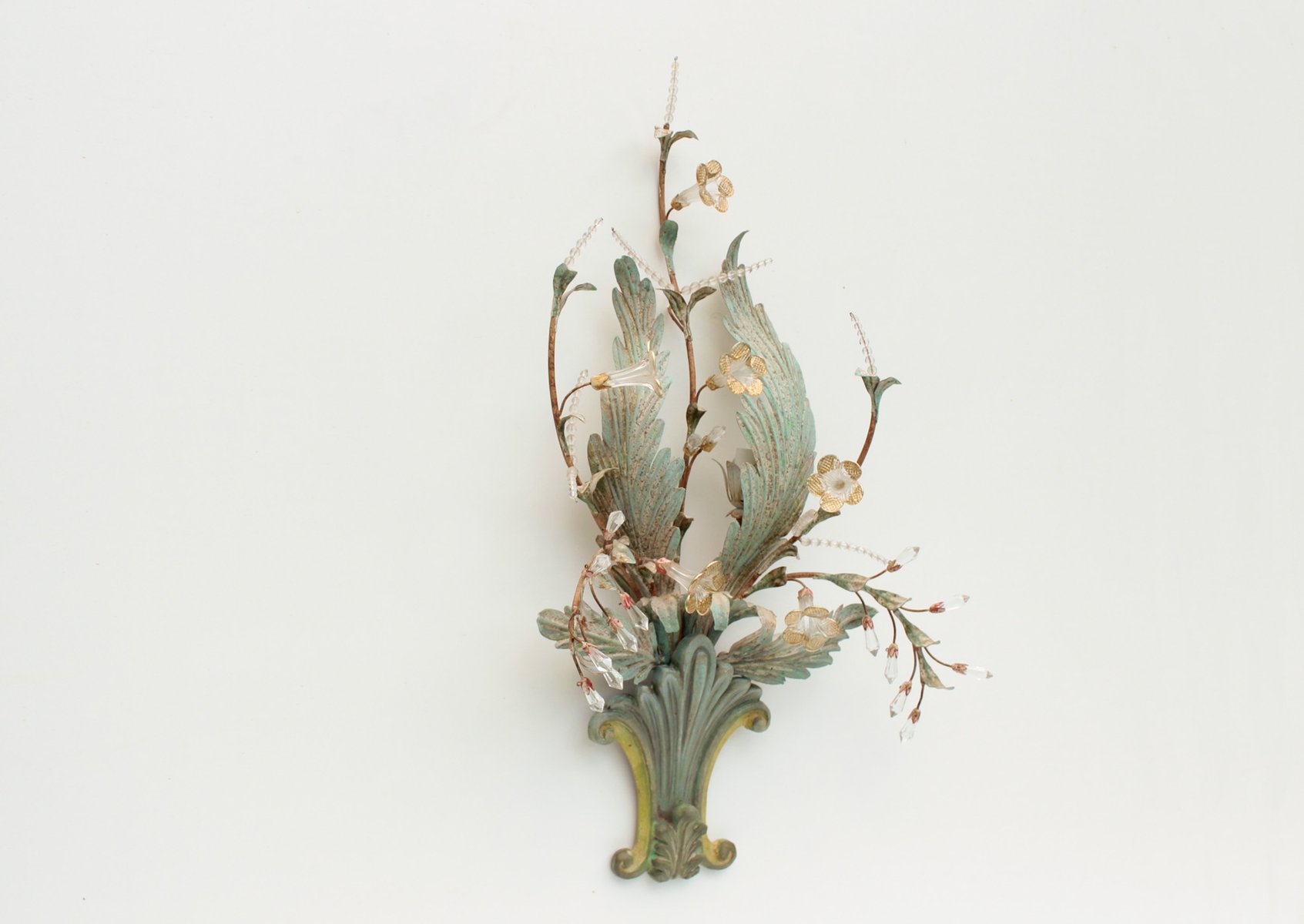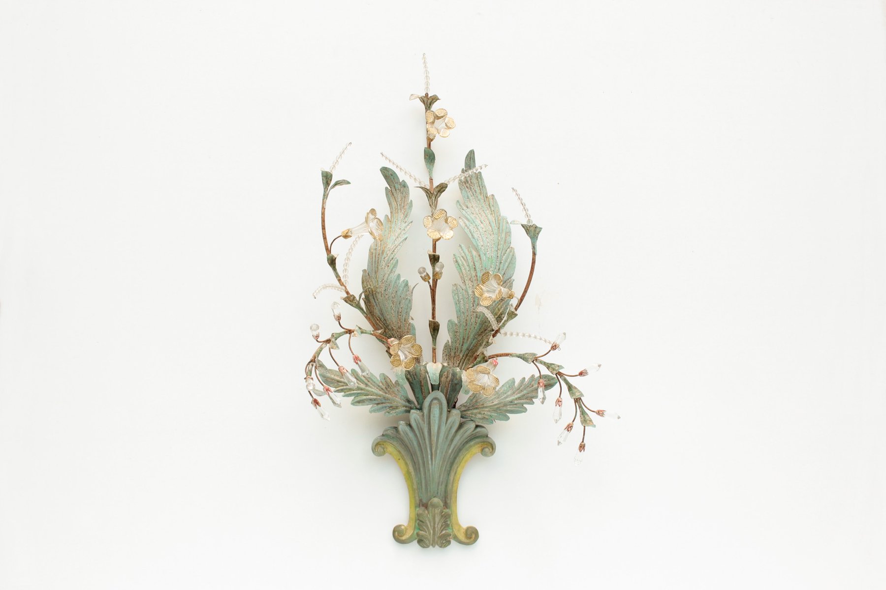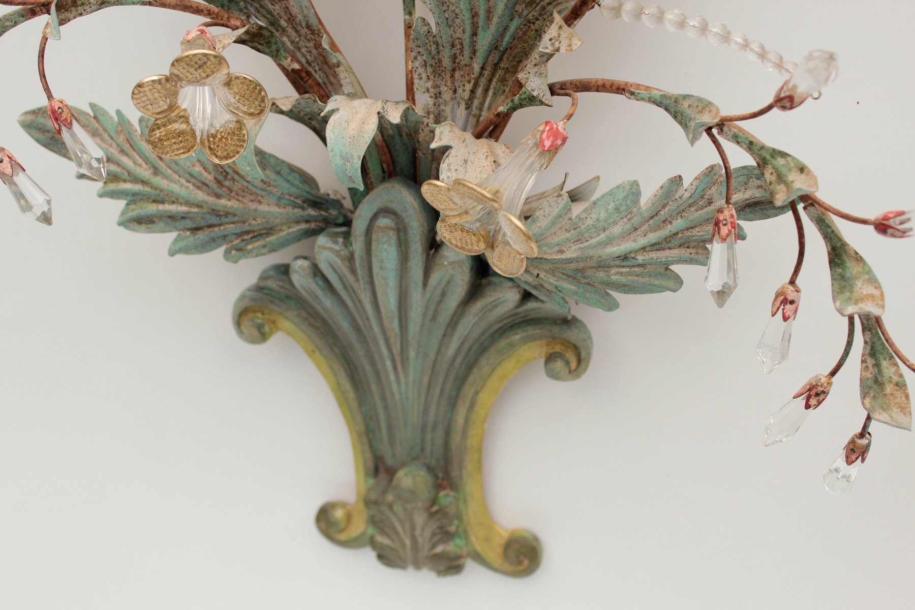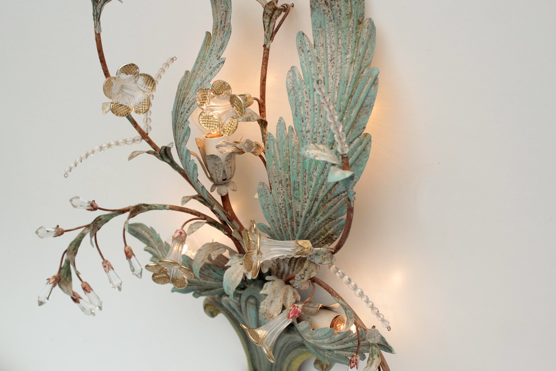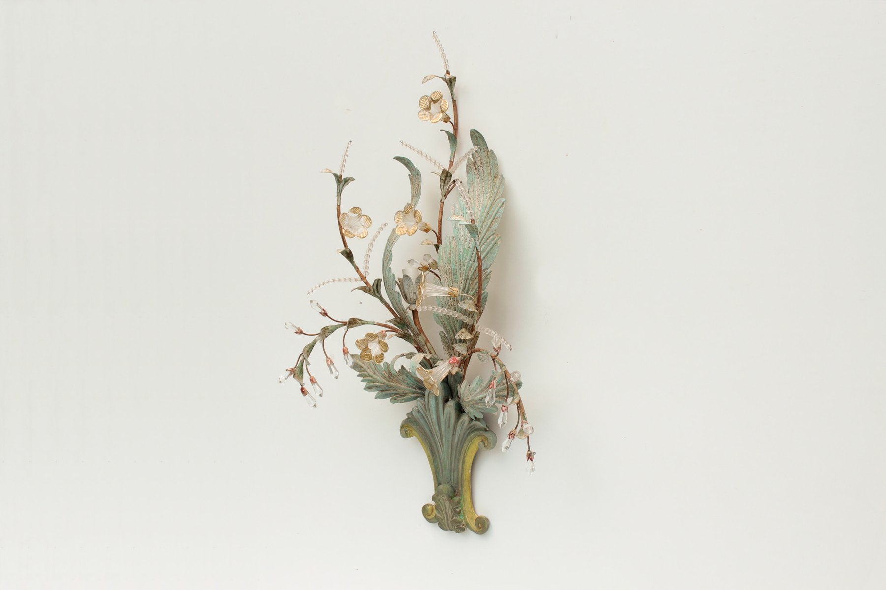 Floral Wall Lamp with Glass Flowers, Gold and Pastel, 1970s