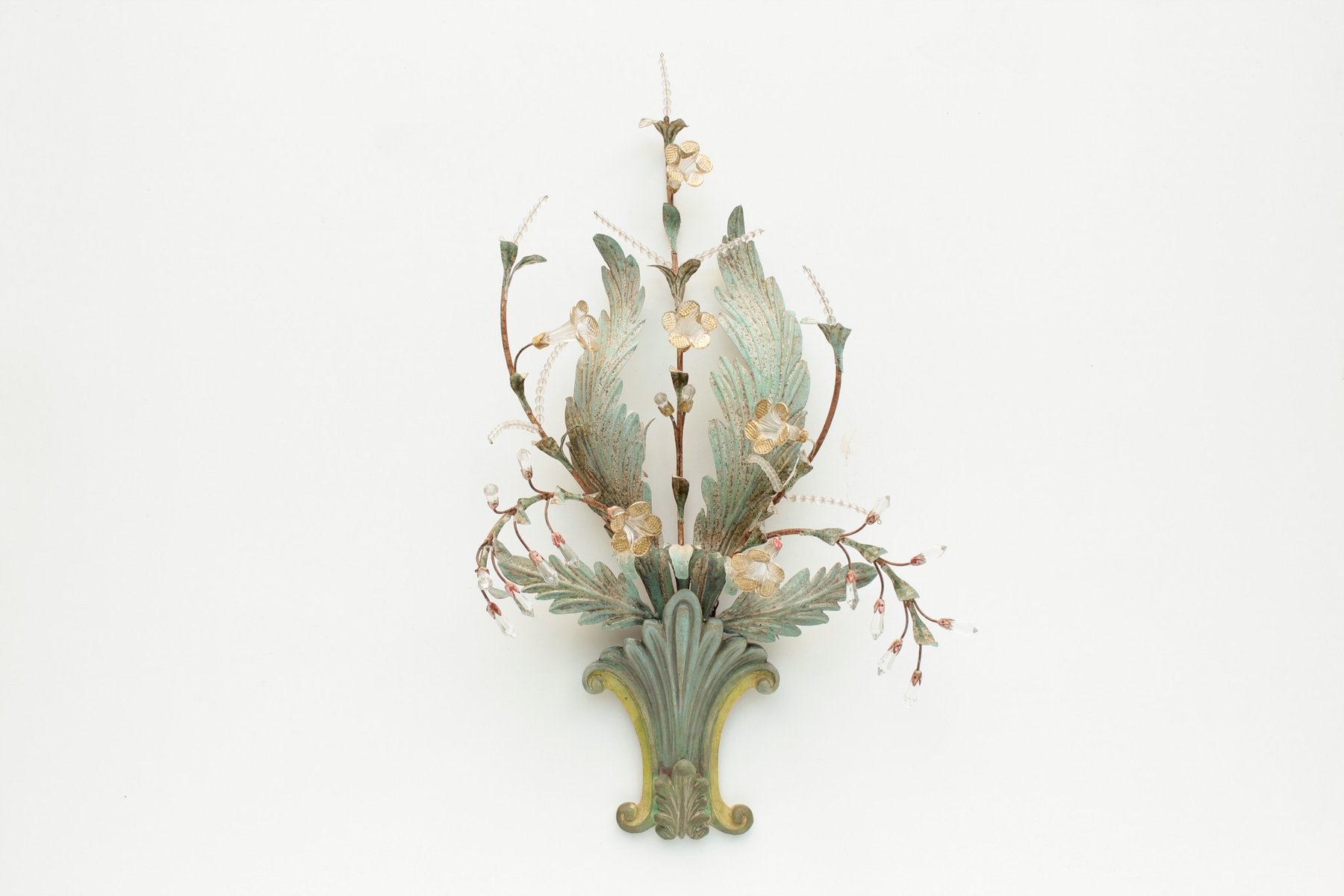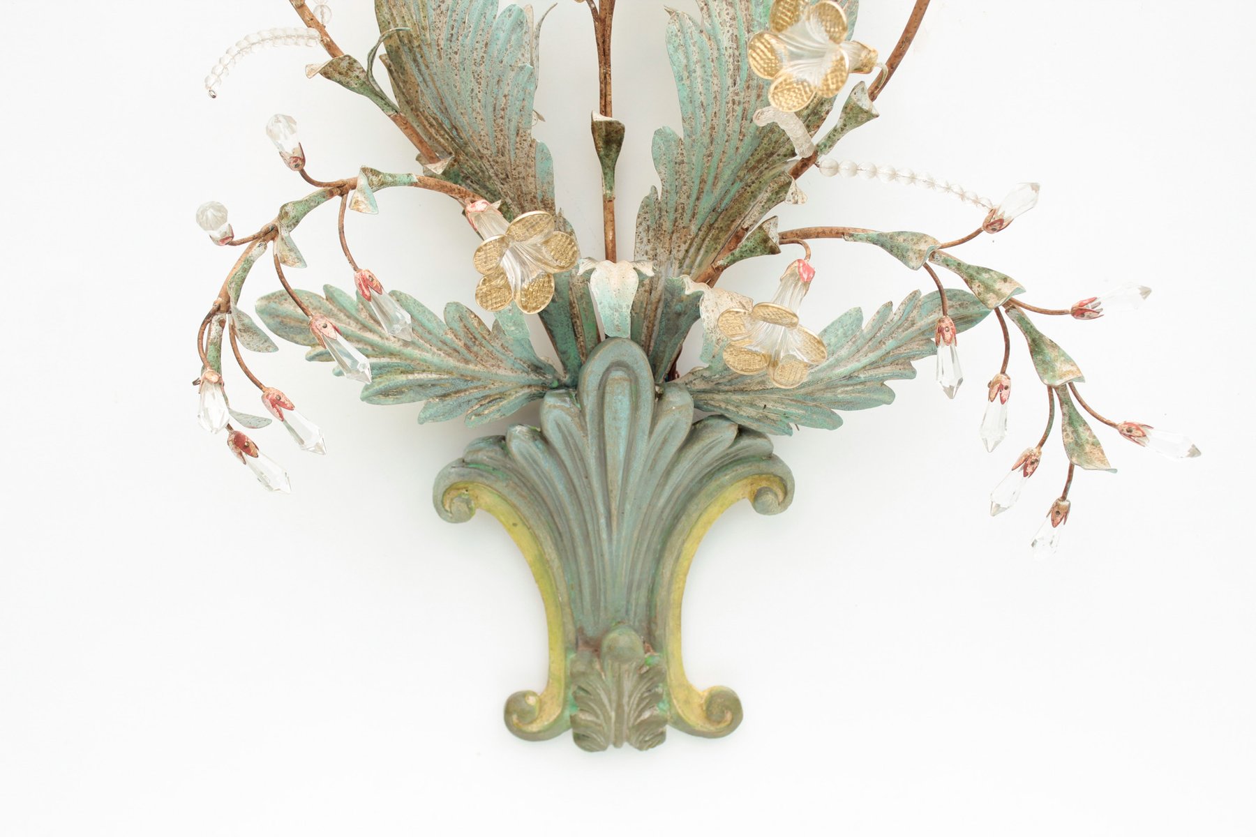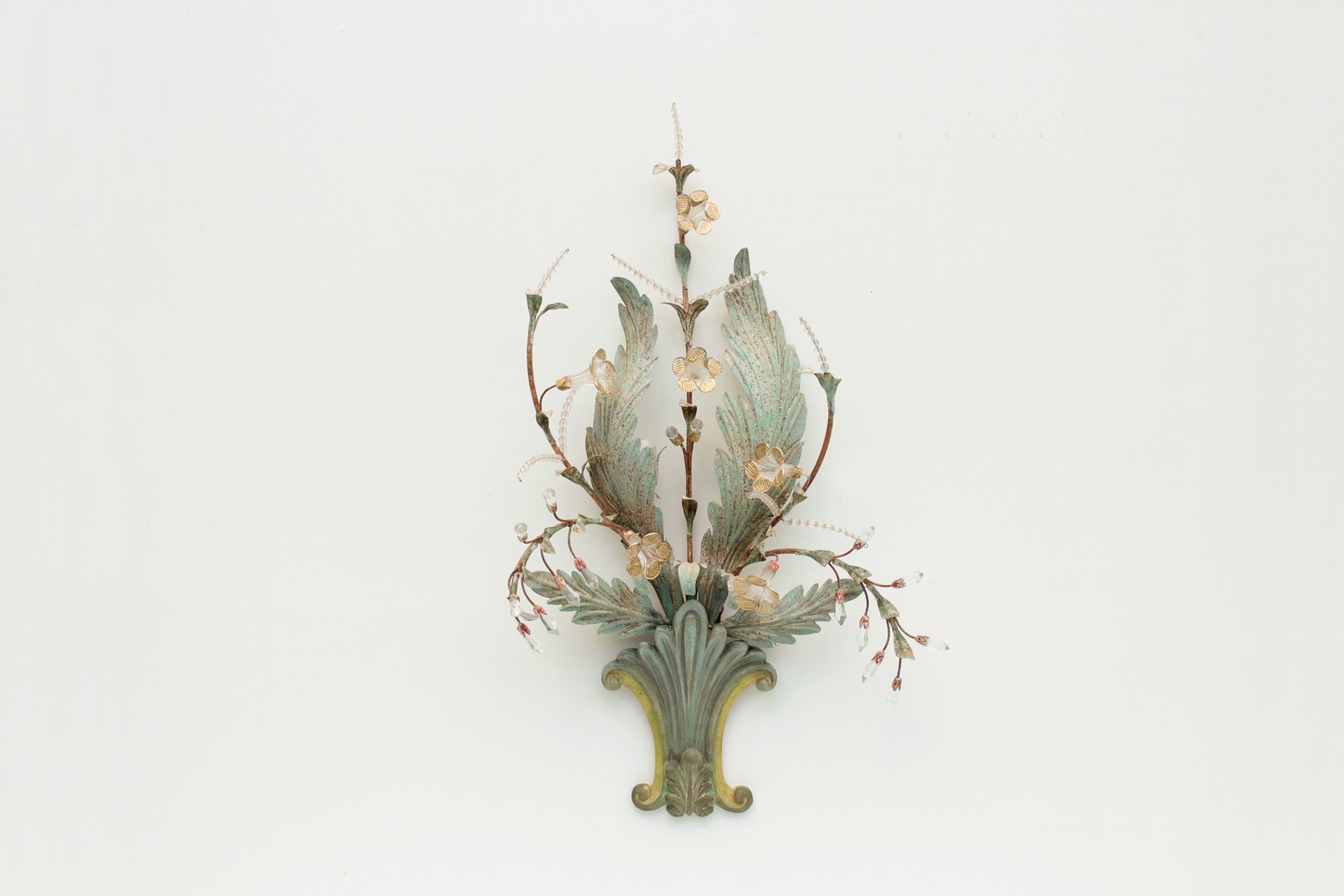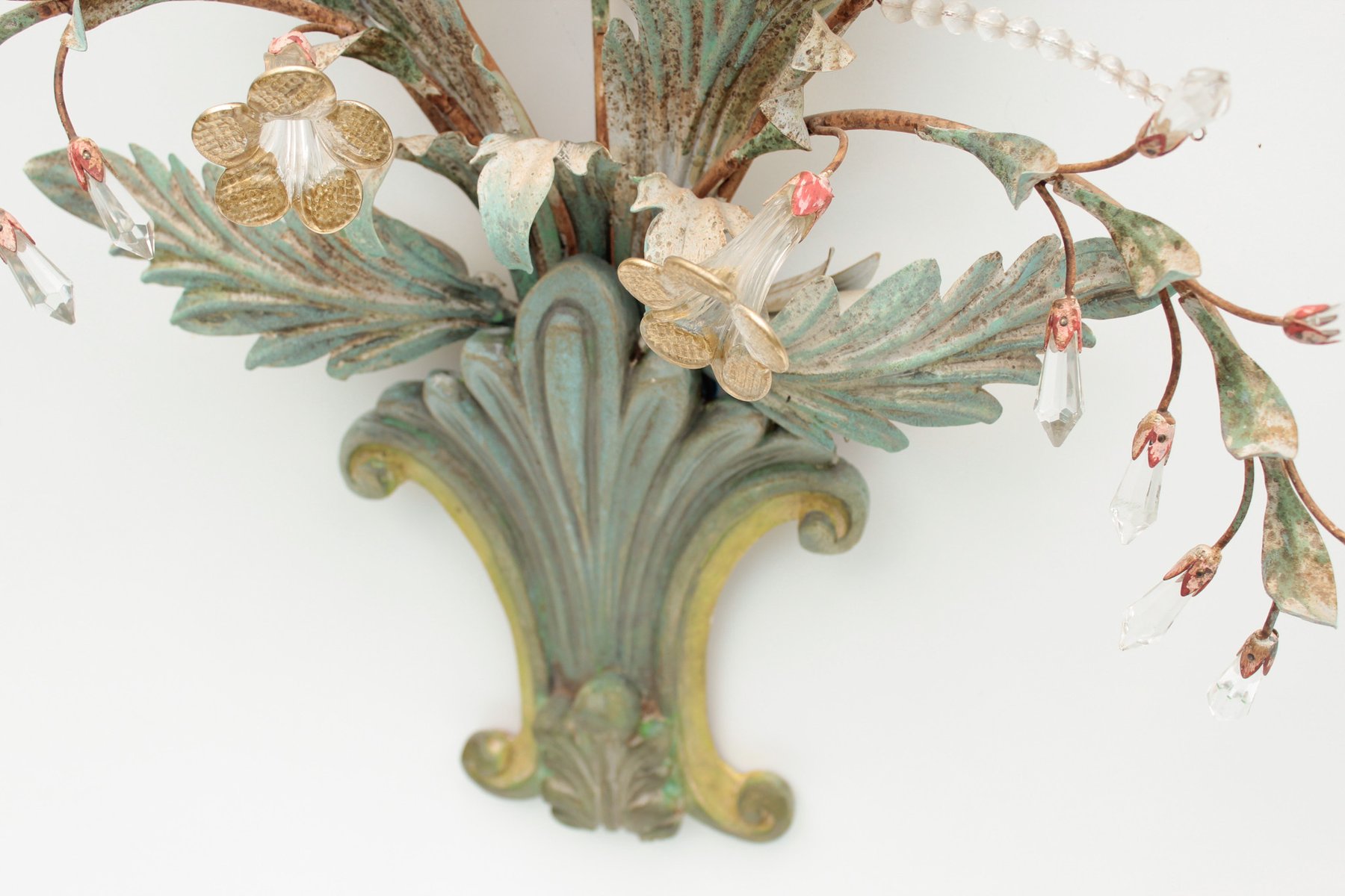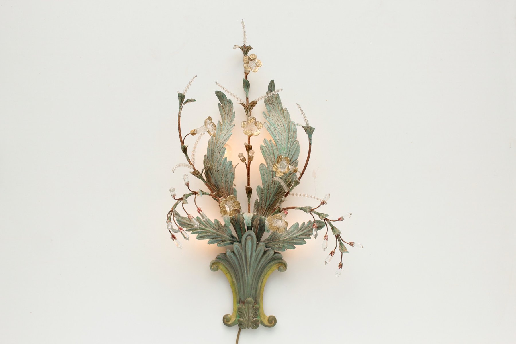Floral Wall Lamp with Glass Flowers, Gold and Pastel, 1970s