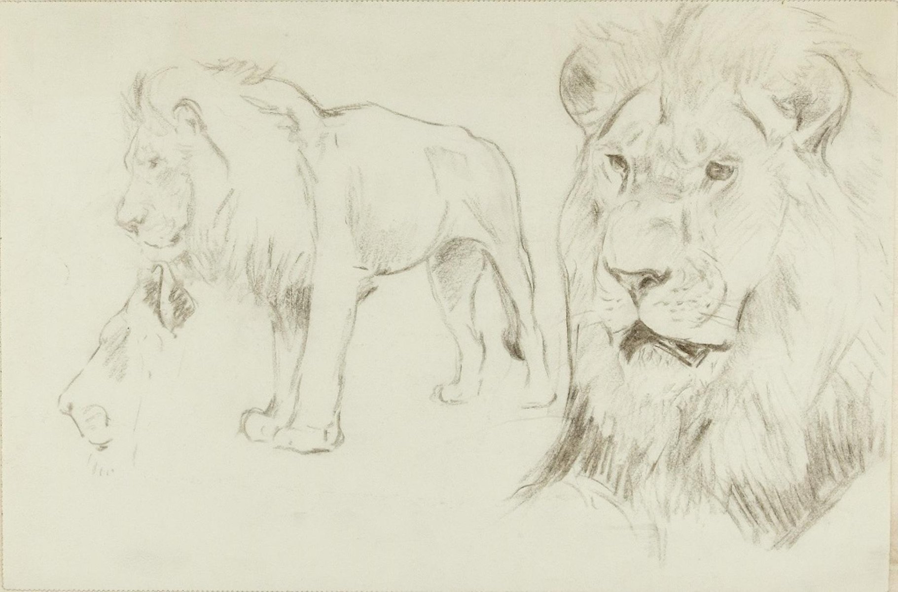 Foreground of a Lion - Original Pencil Drawing by Willy Lorenz - 1940s 1940s