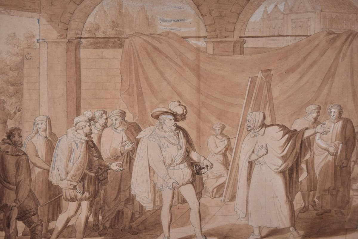 Francesco I and Titian in the Painter's Studio - Original Drawing 1824 1824
