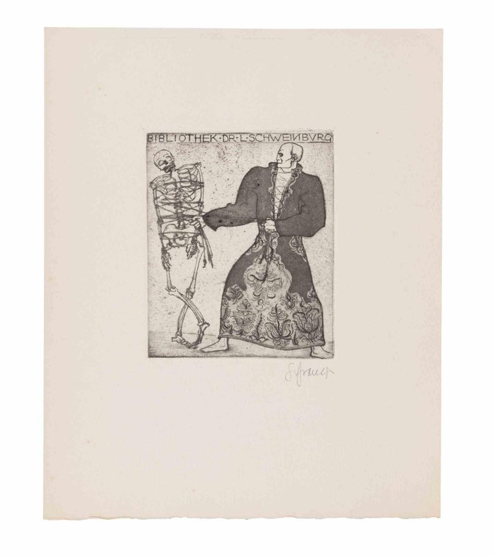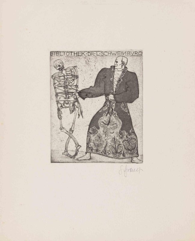 Frank Sepp, Ex Libris Bibliothek dr. L. Schweinburg, Etching, 1920s