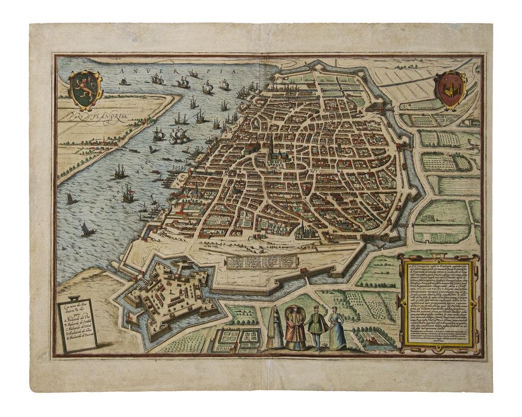 Franz Hogenberg - Map of Antwerp - Etching - Late 16th-Century