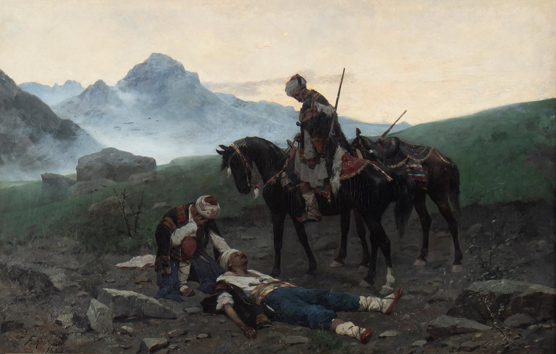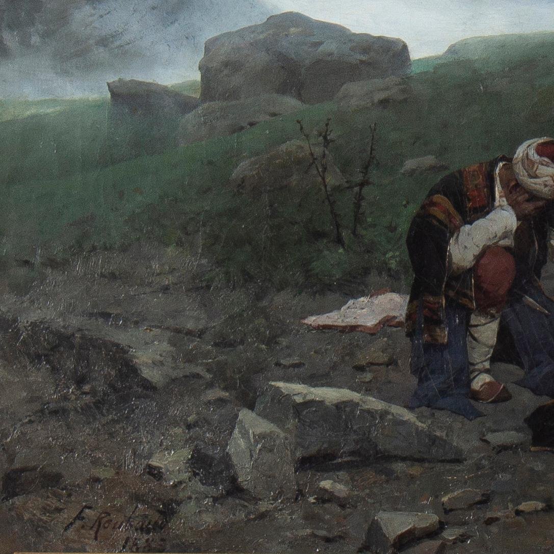 Franz Roubaud, Soldiers in Caucasus, 1883, Painting, Framed