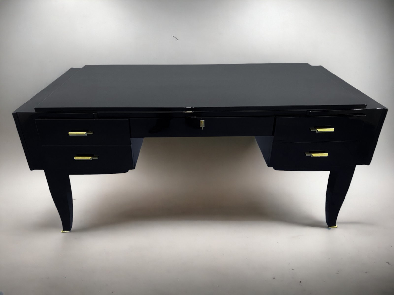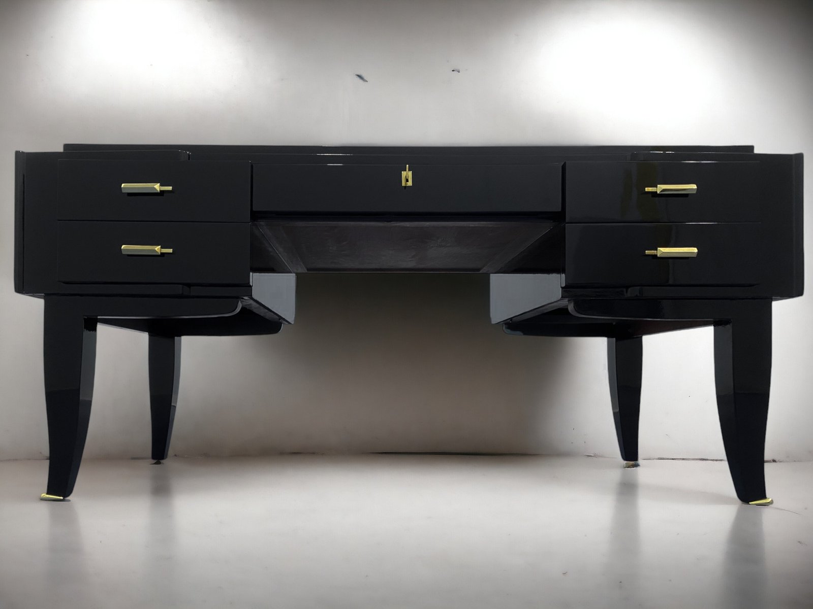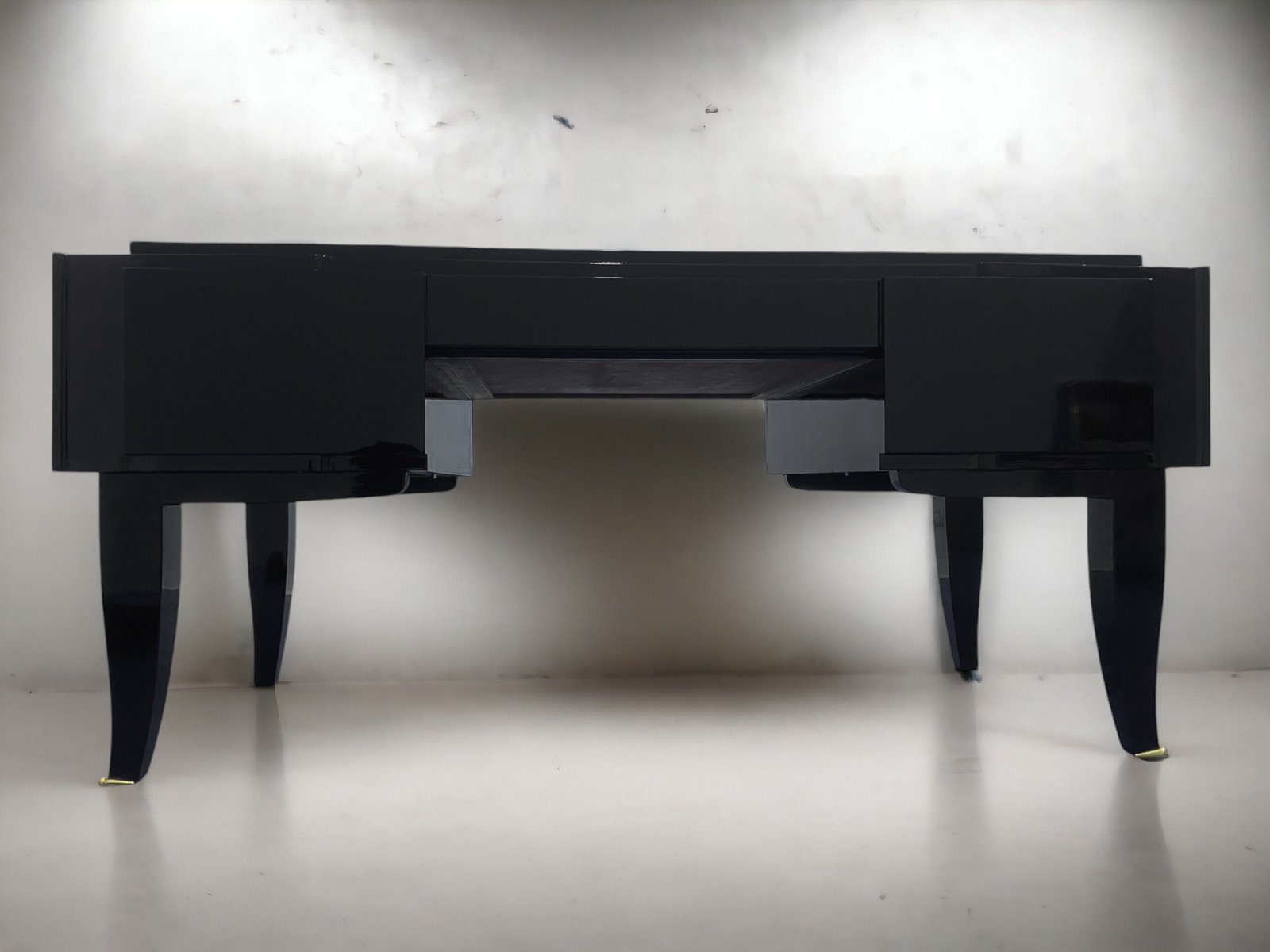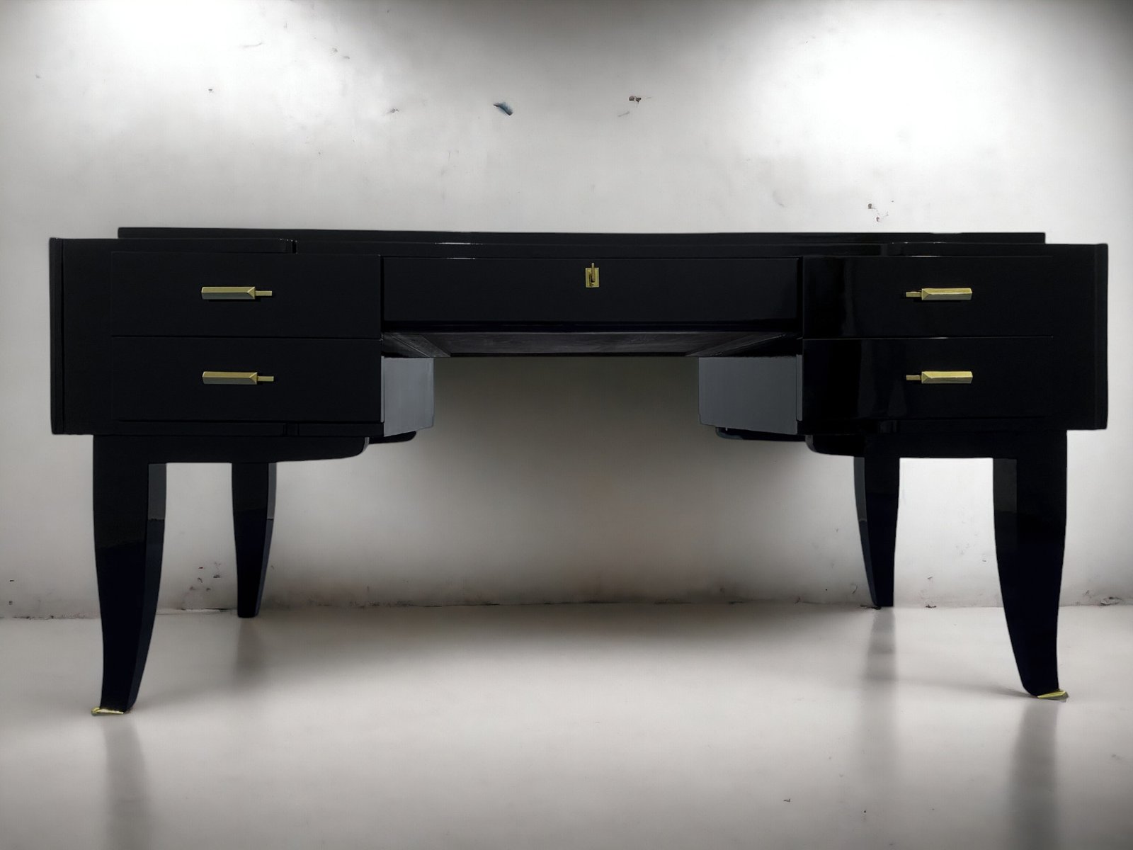 French Art Deco Black Lacquered Executive Desk, 1930s