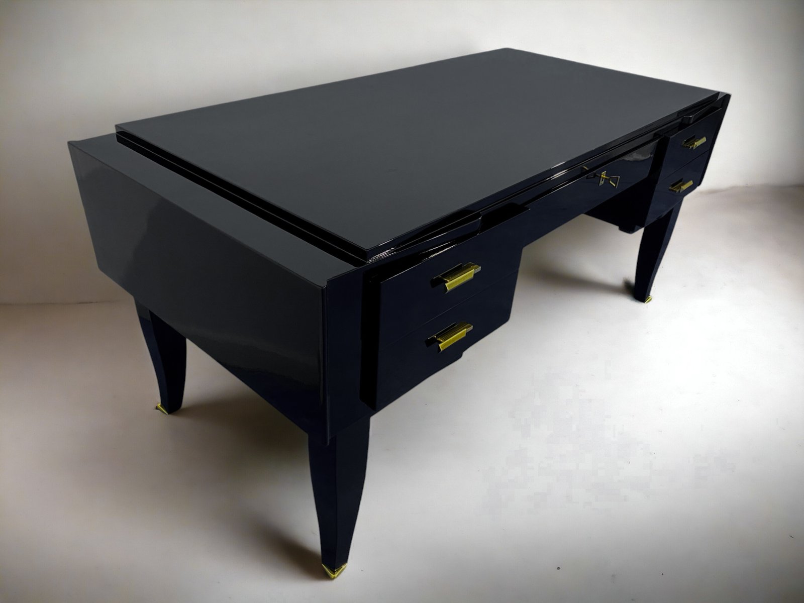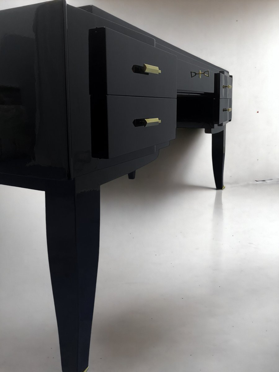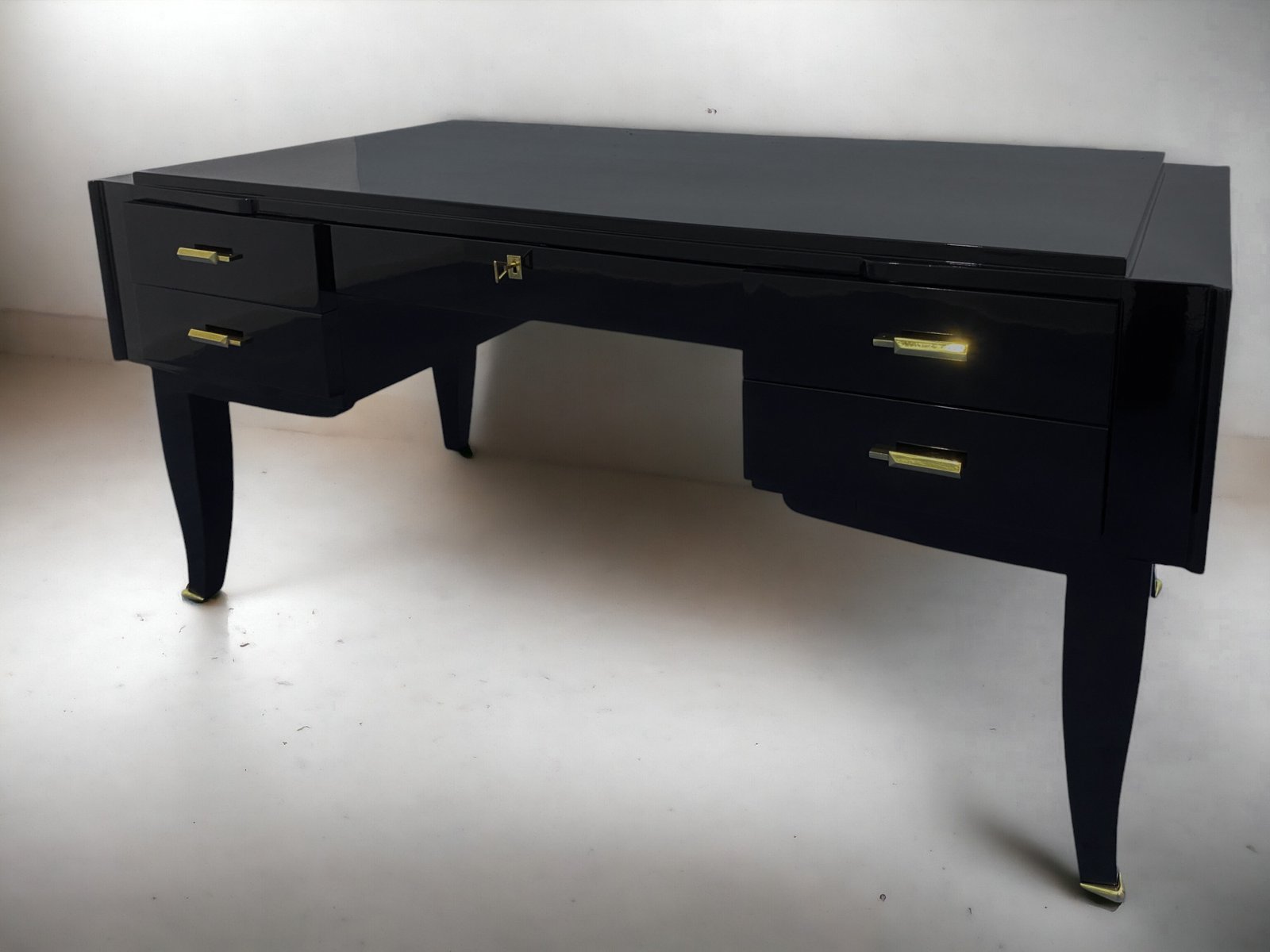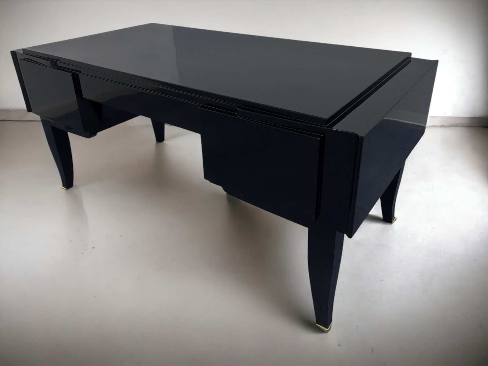 French Art Deco Black Lacquered Executive Desk, 1930s
