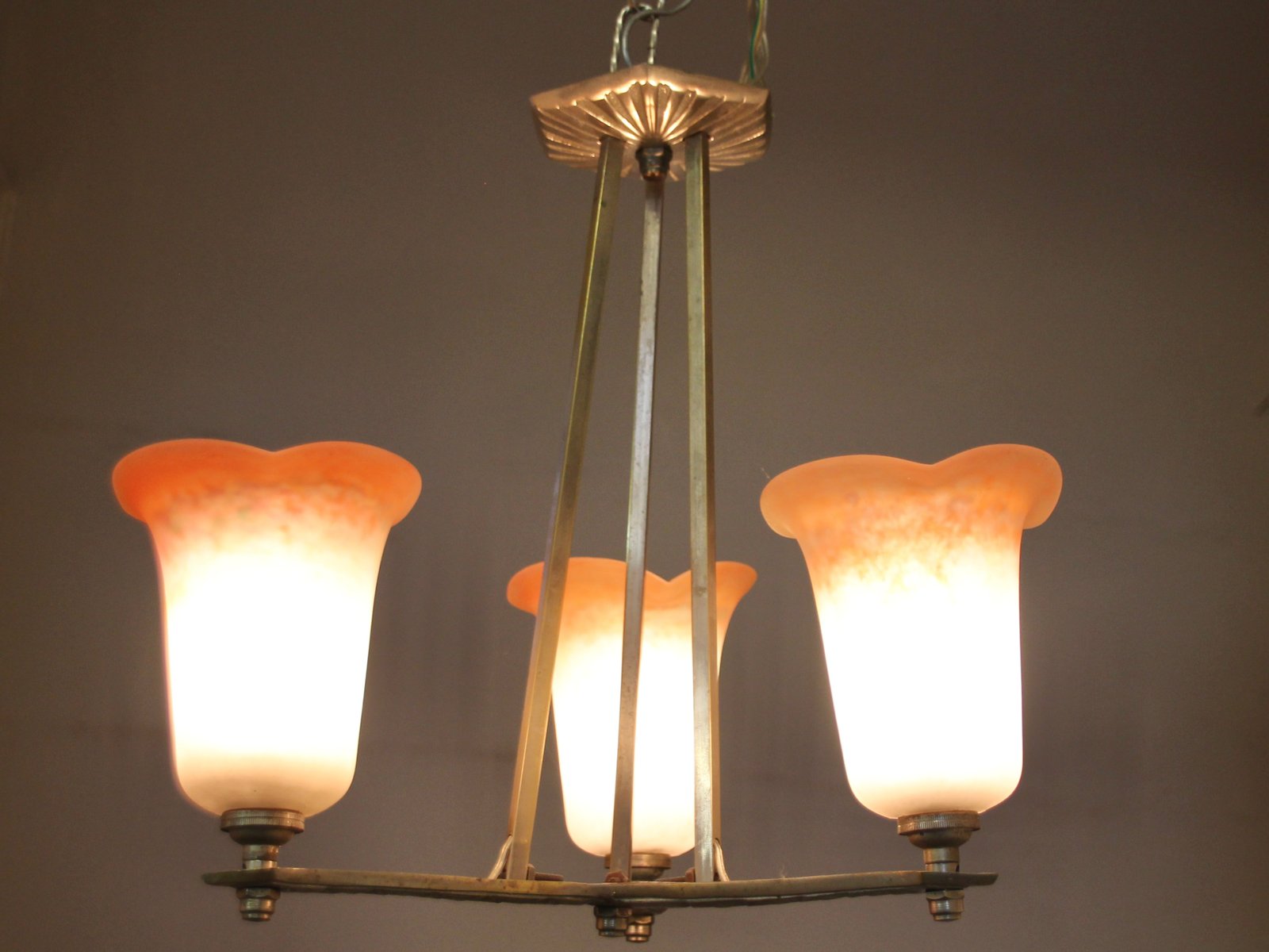 French Art Deco Ceiling Lamp from Noverdy, 1920s