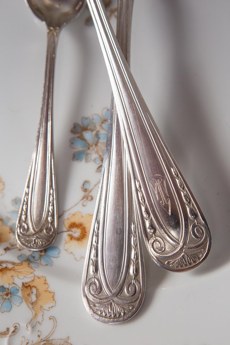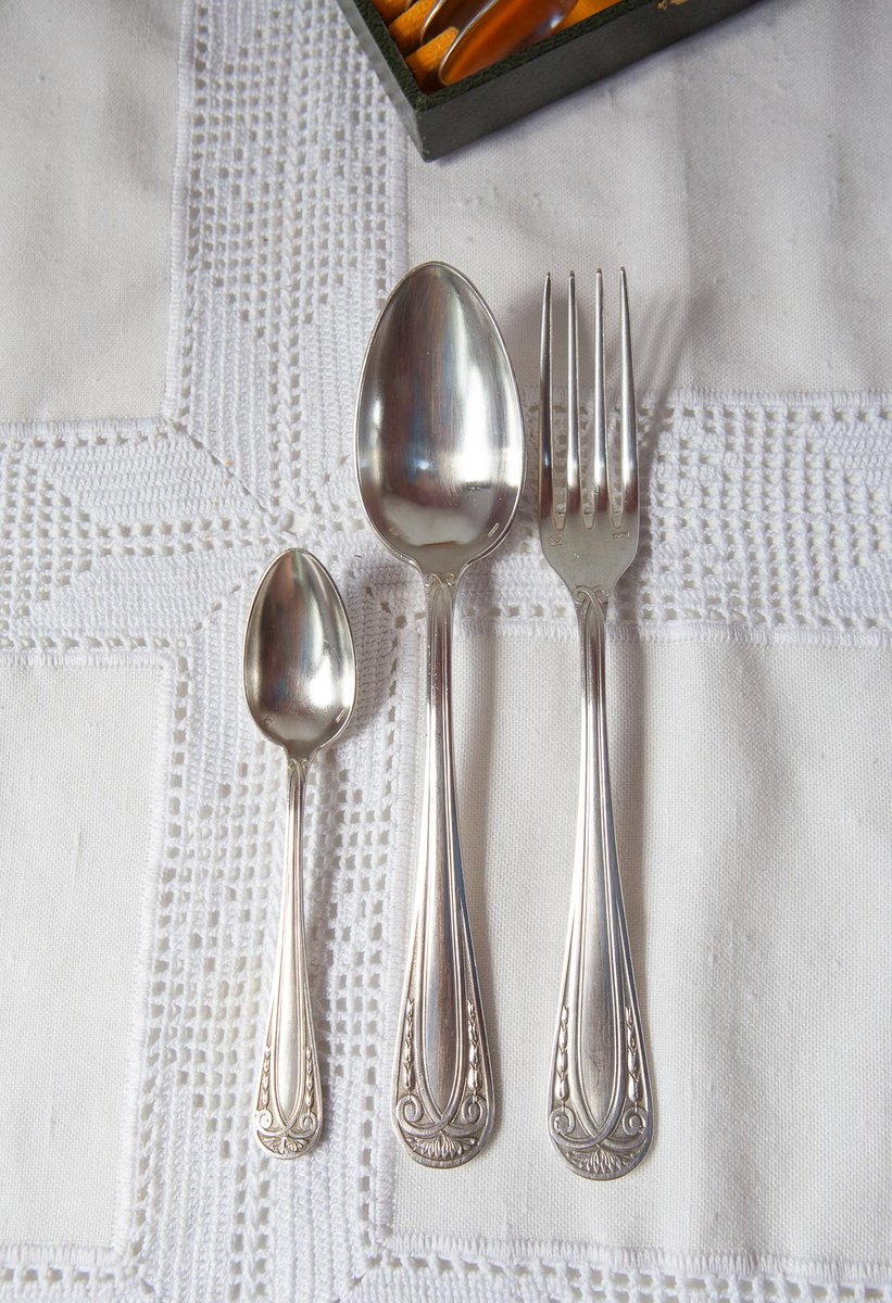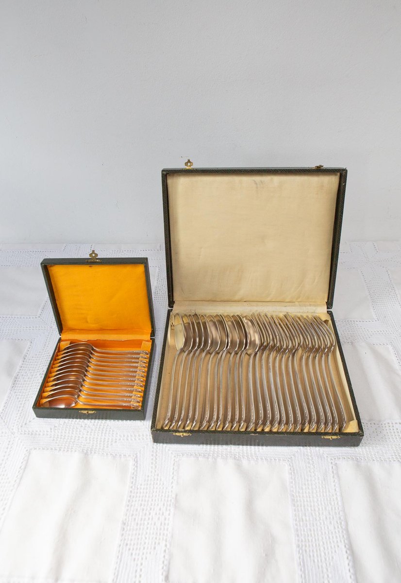 French Art Deco Cutlery Service for 12 with T C Initials from Apollo, 1930s, Set of 38