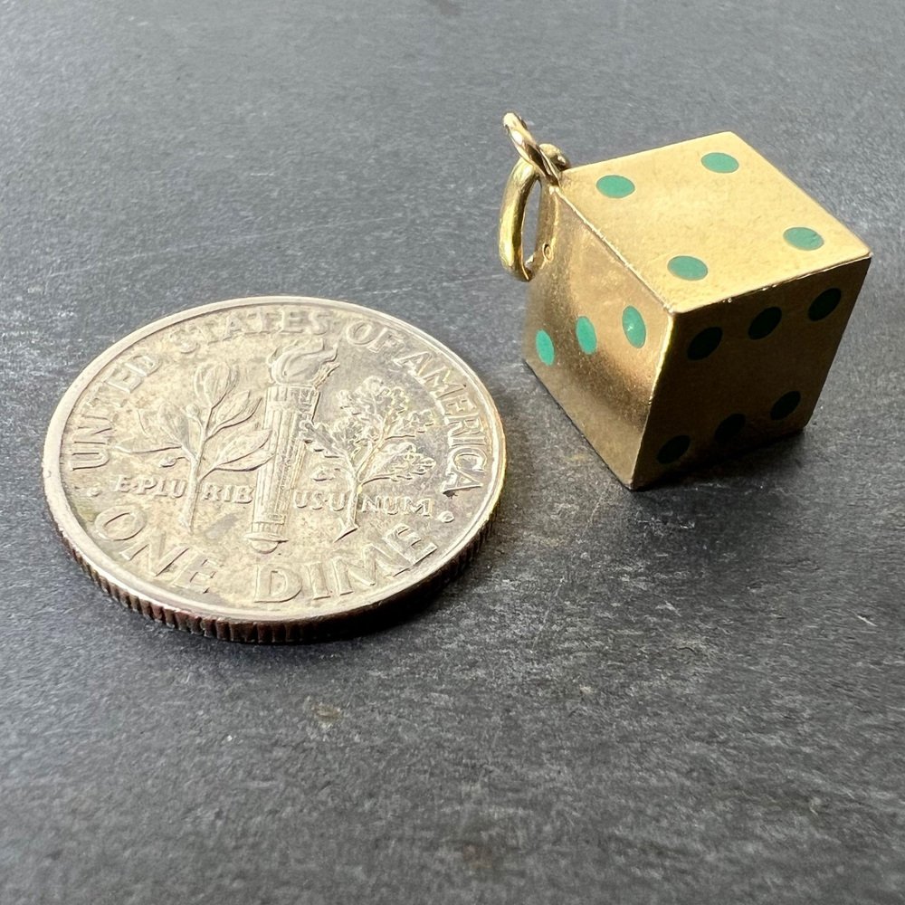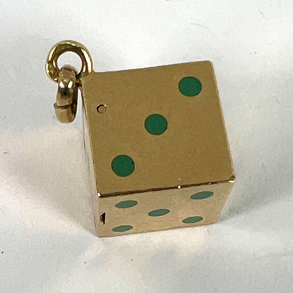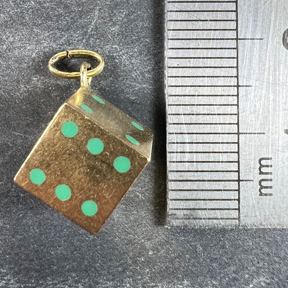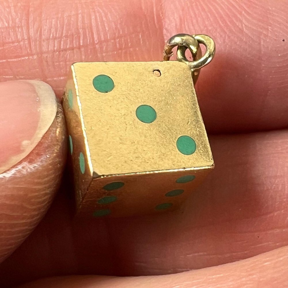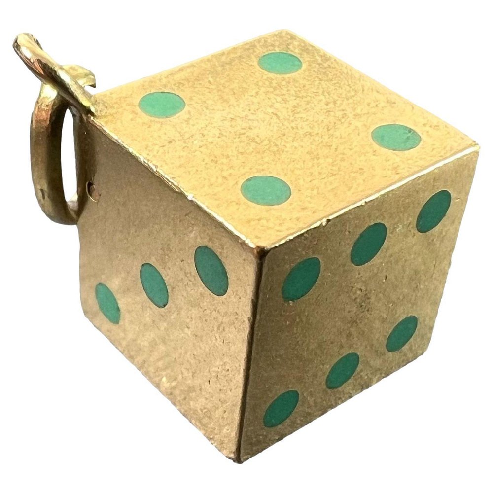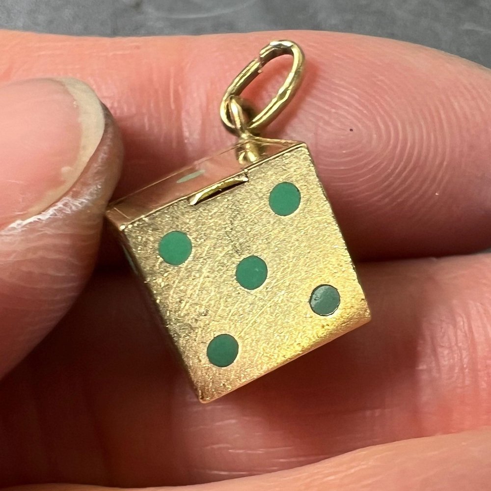 French Art Deco Die with Miniature Dice 18k Yellow Gold Enamel Charm Pendant, 1890s