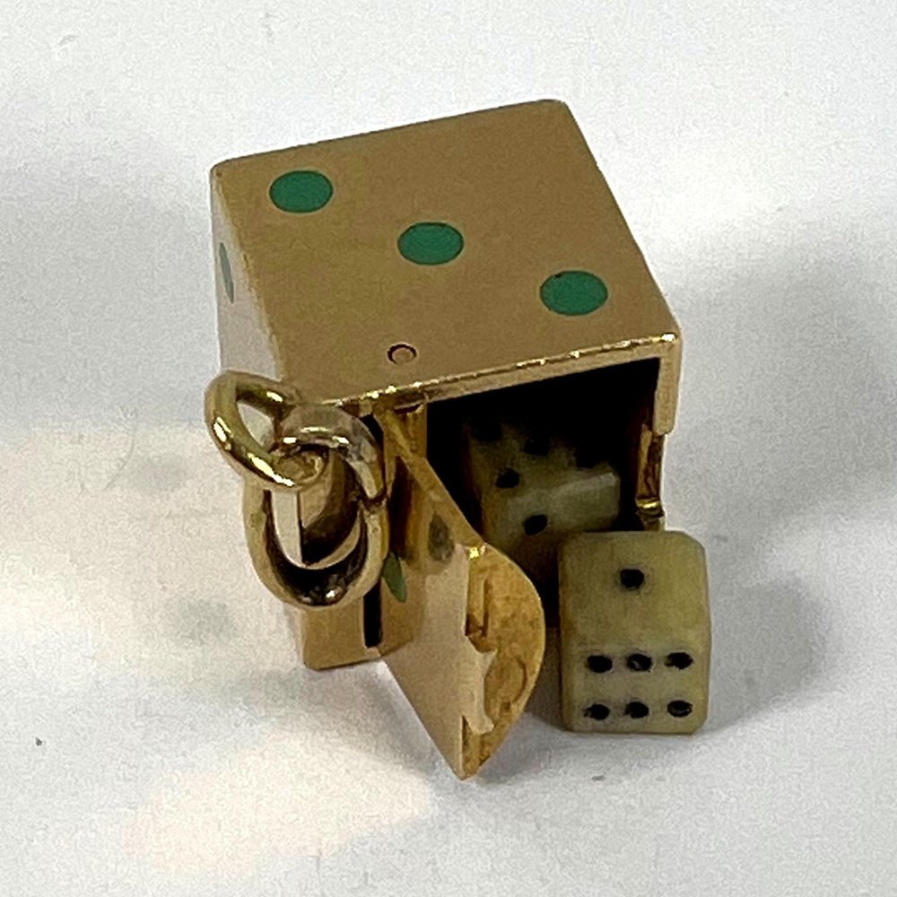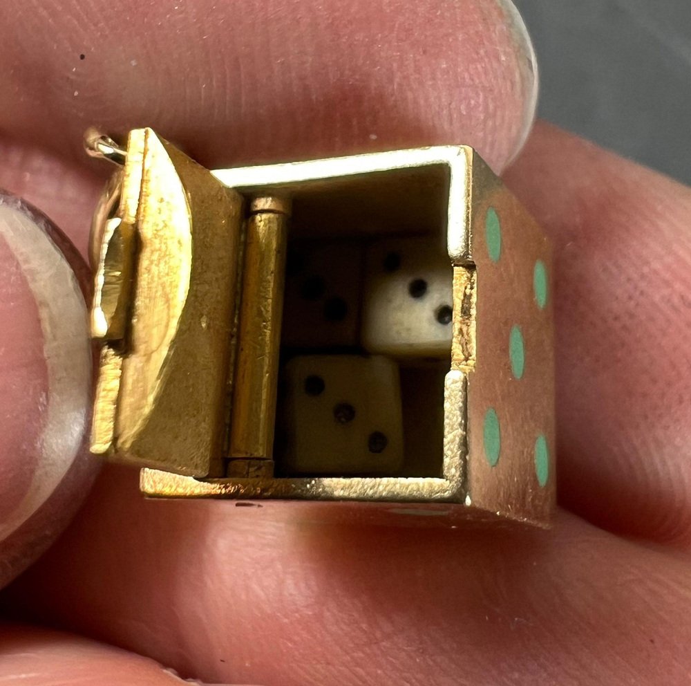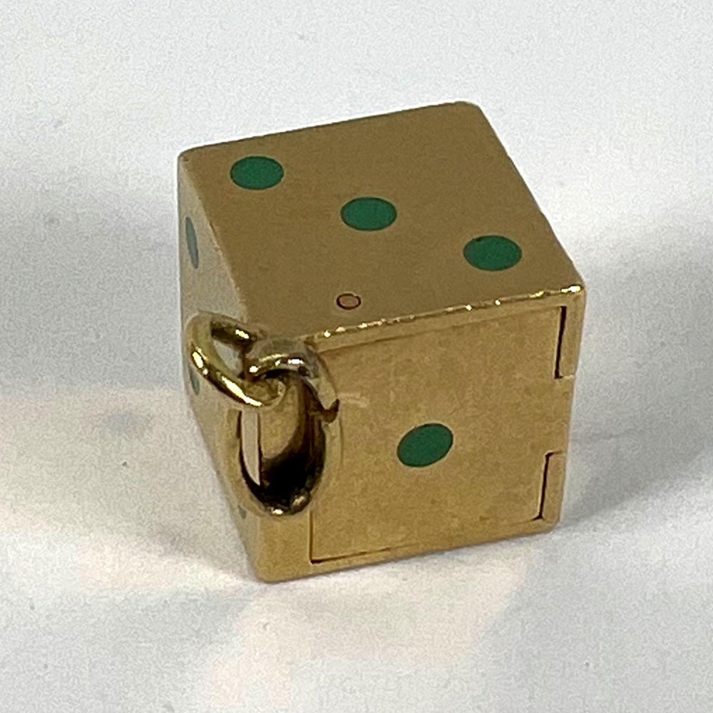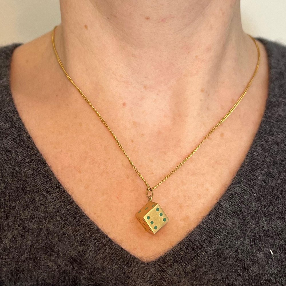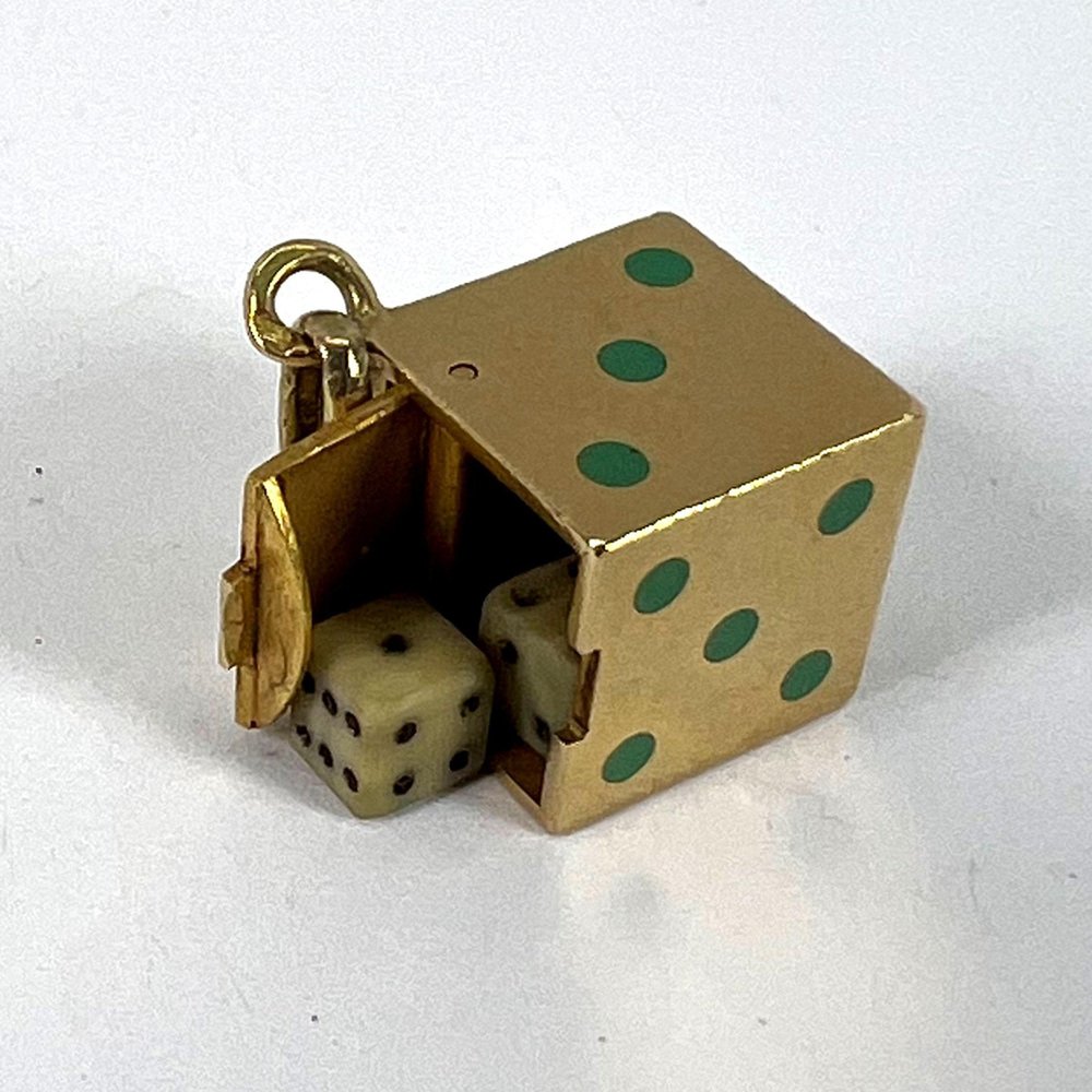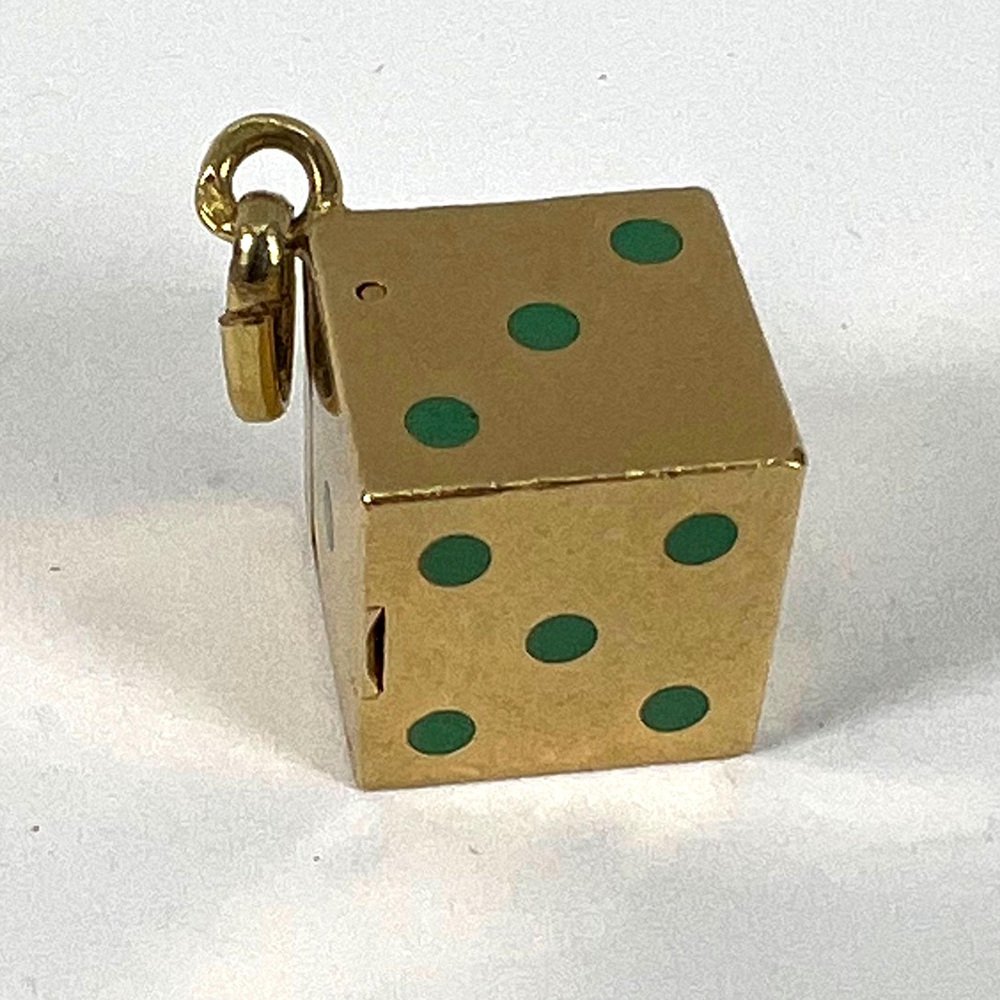 French Art Deco Die with Miniature Dice 18k Yellow Gold Enamel Charm Pendant, 1890s