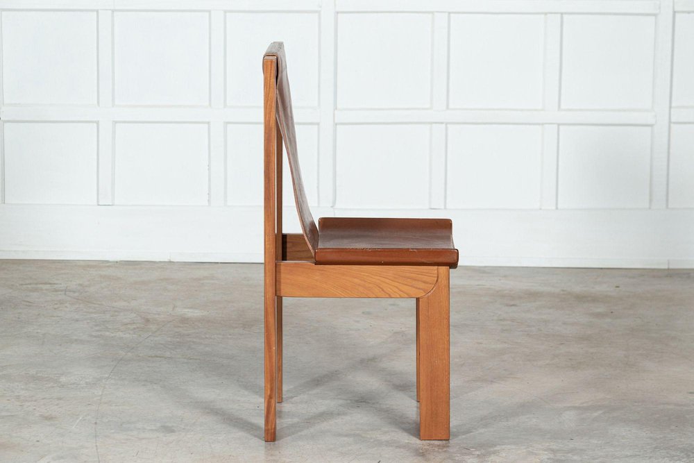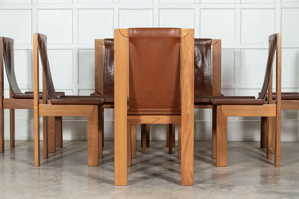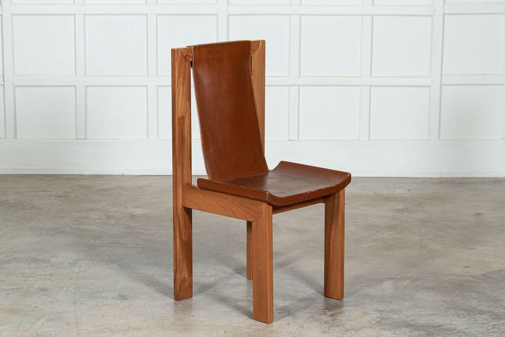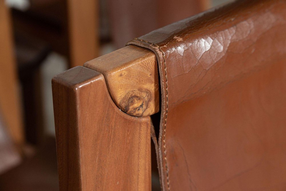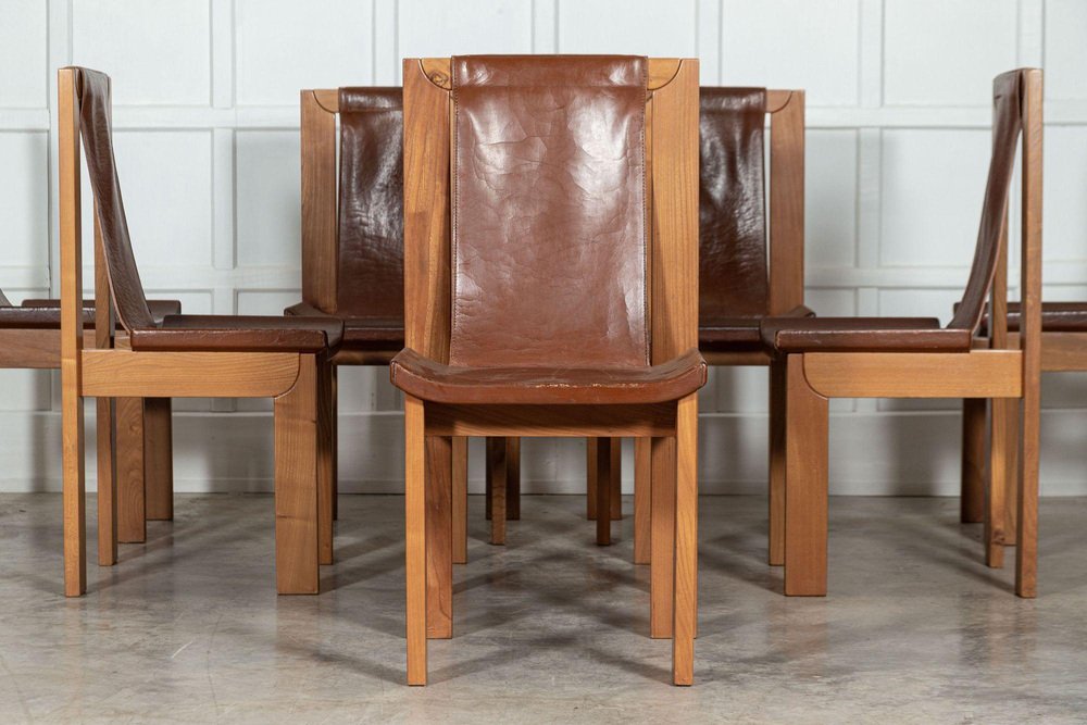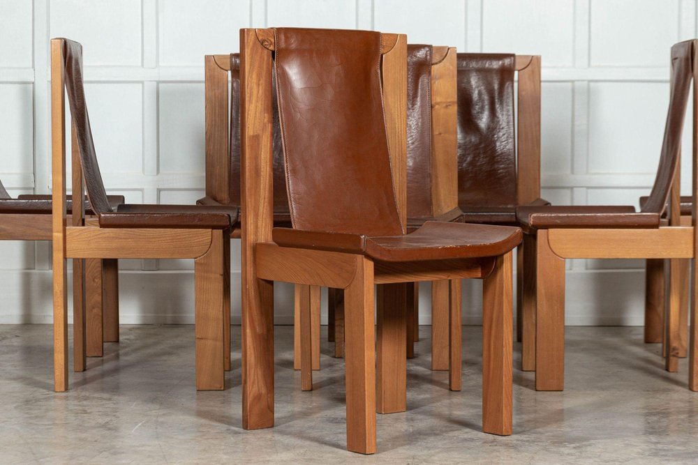 French Brutalist Elm & Leather Chairs by Roland Haeusler, 1980s, Set of 8