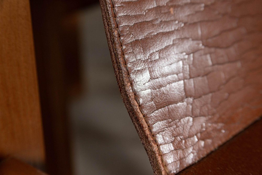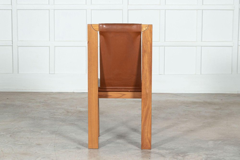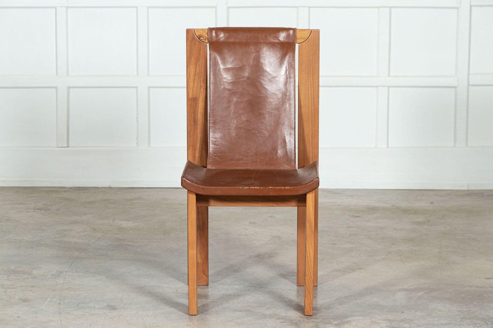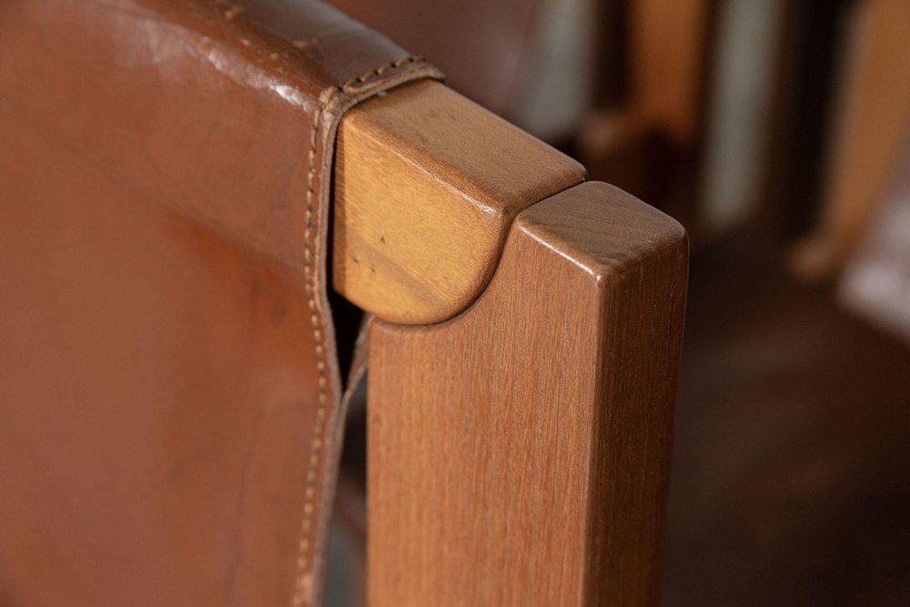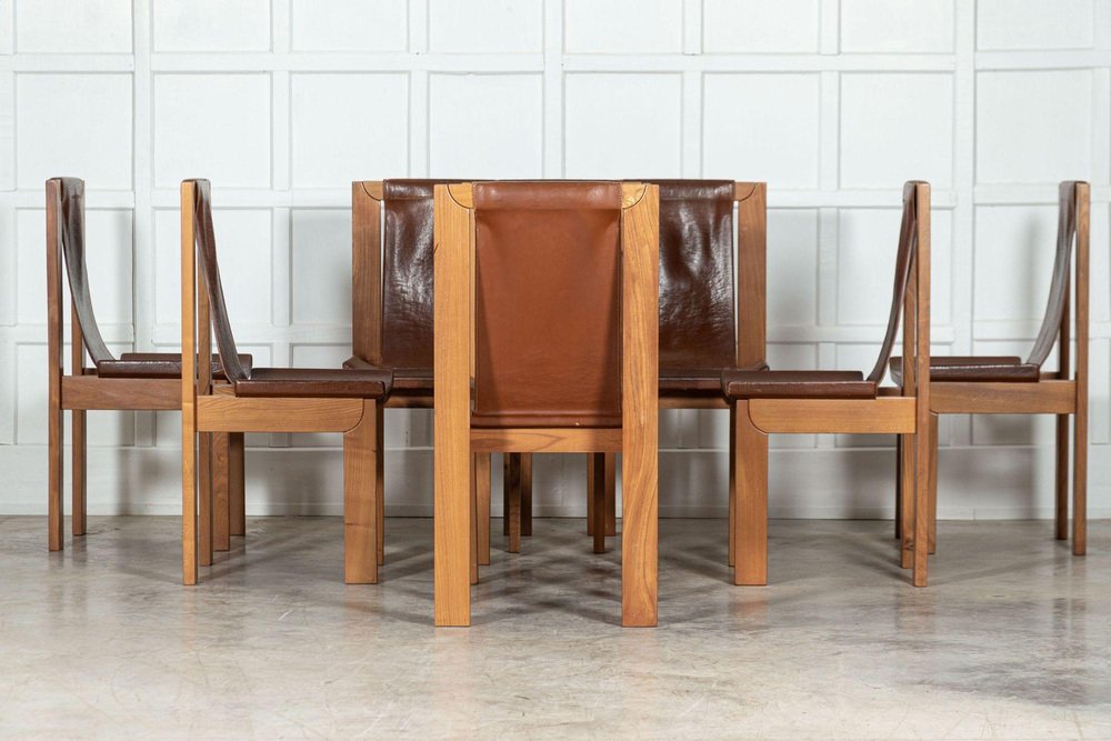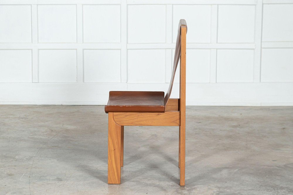 French Brutalist Elm & Leather Chairs by Roland Haeusler, 1980s, Set of 8