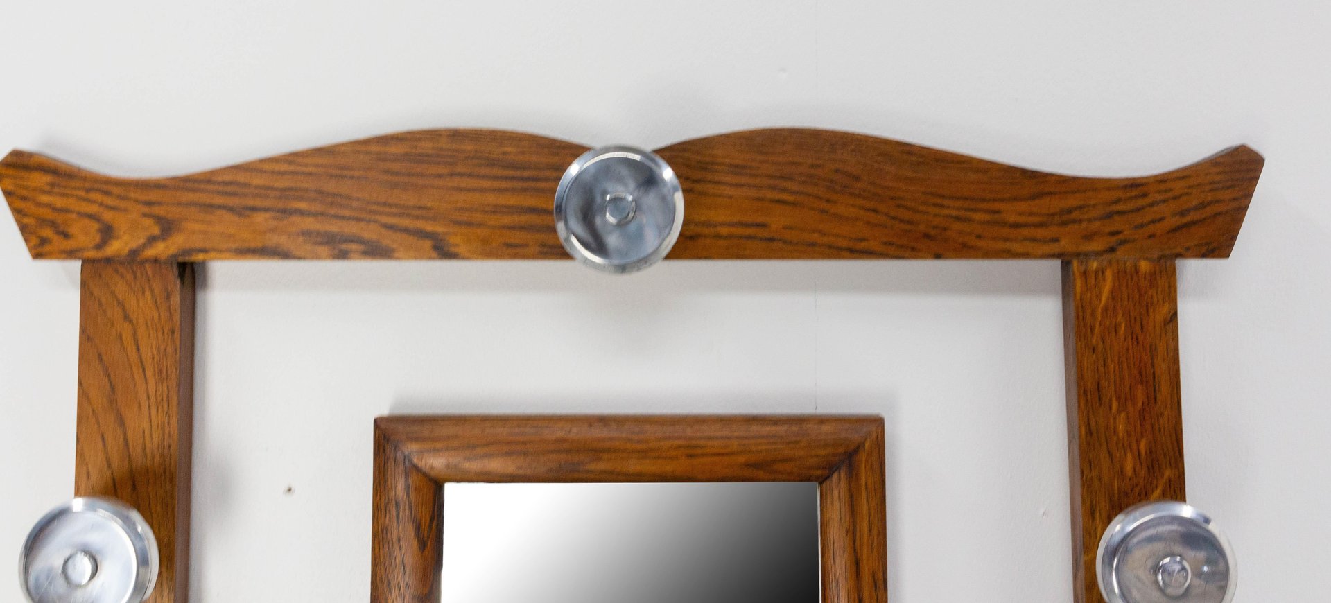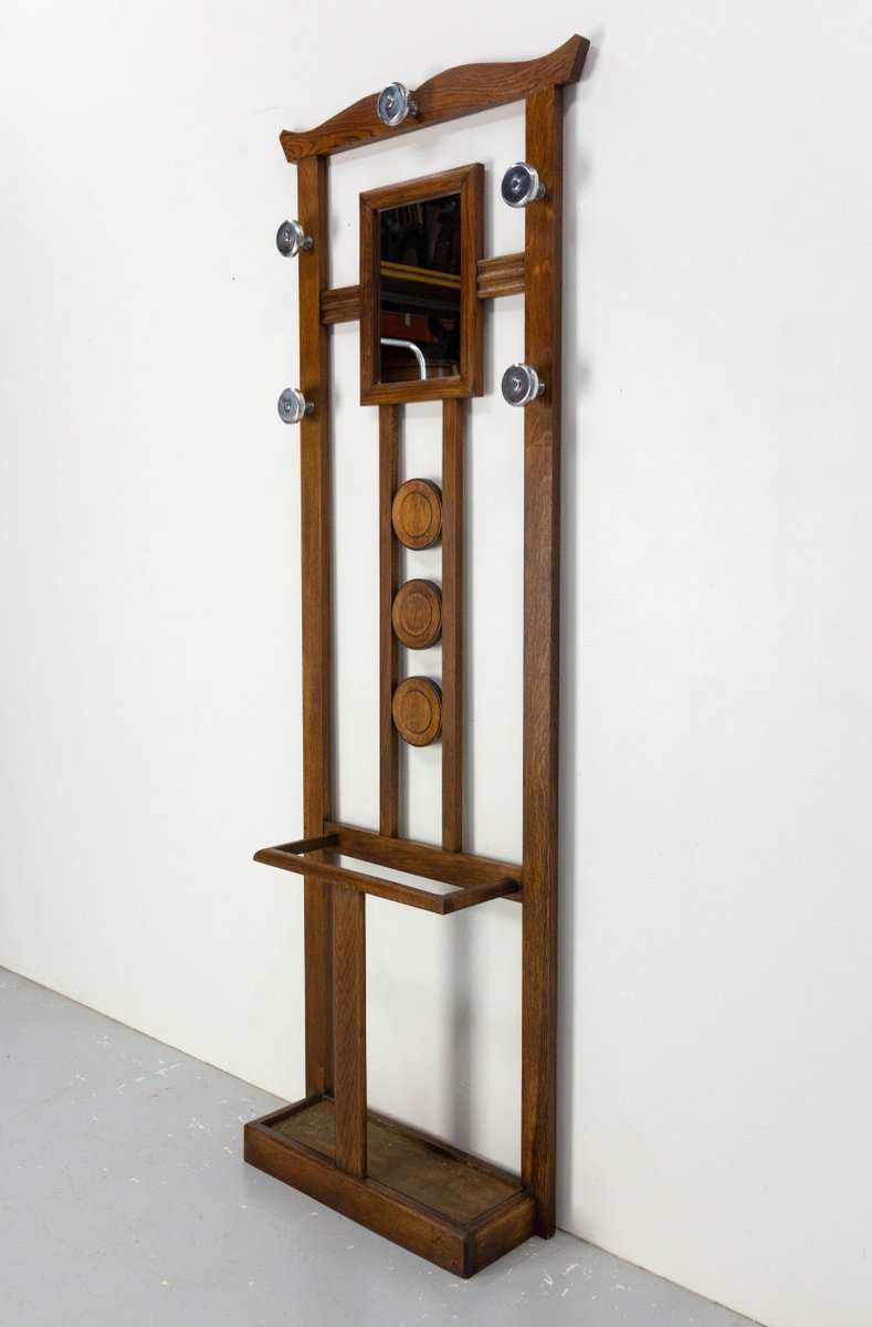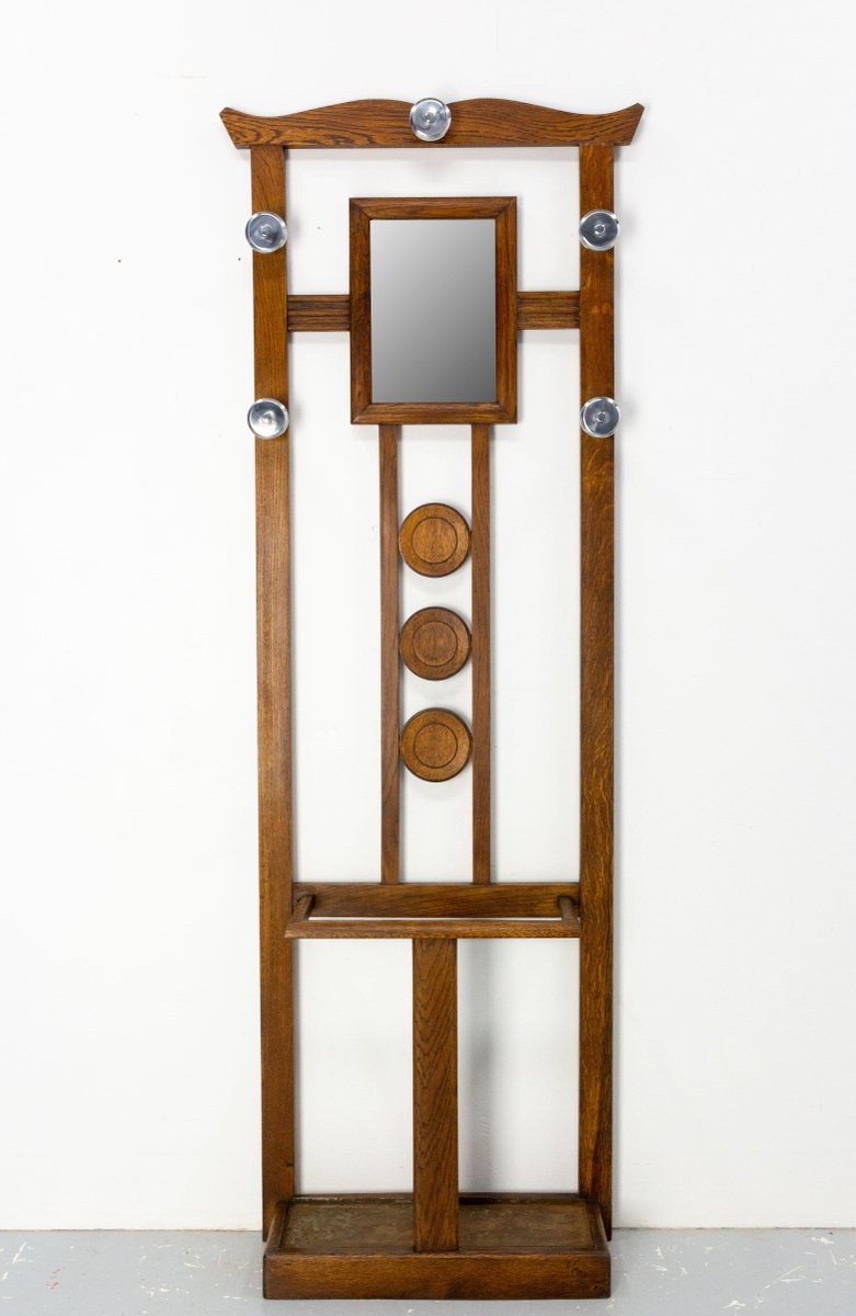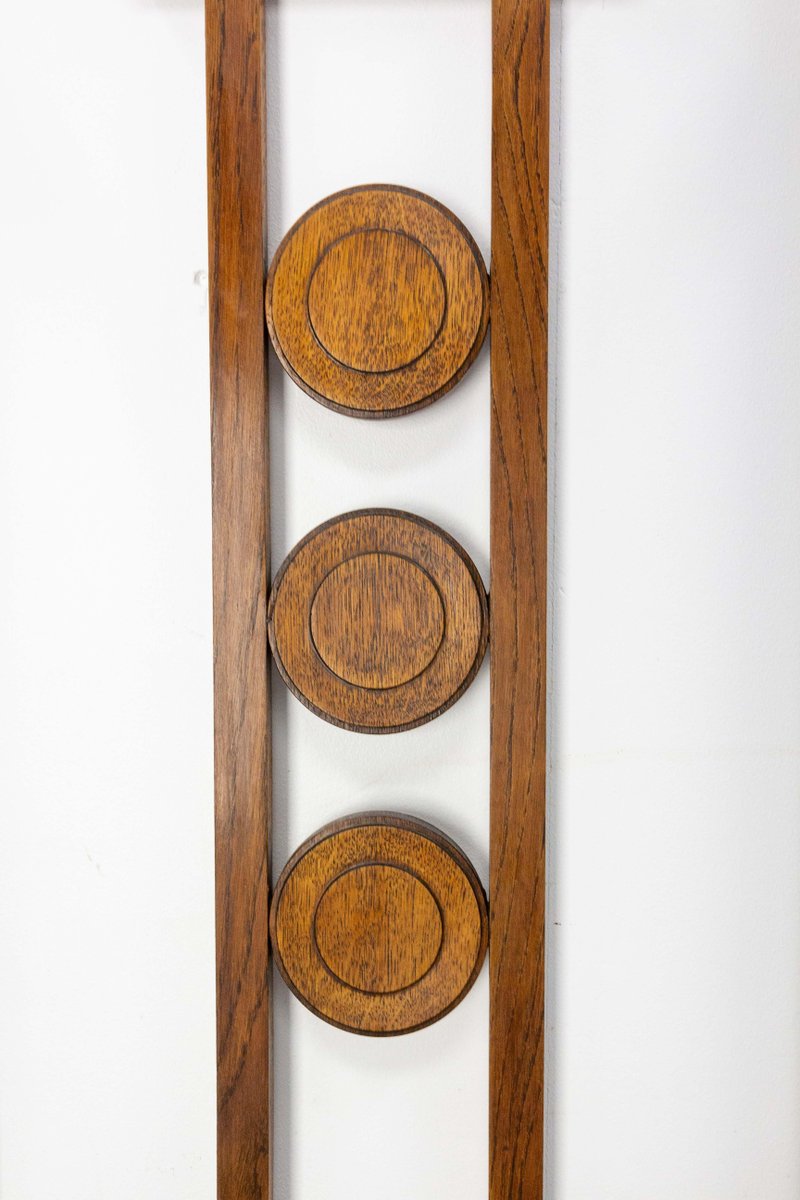 French Coat Rack in Oak, Glass and Mirror, 1950s
