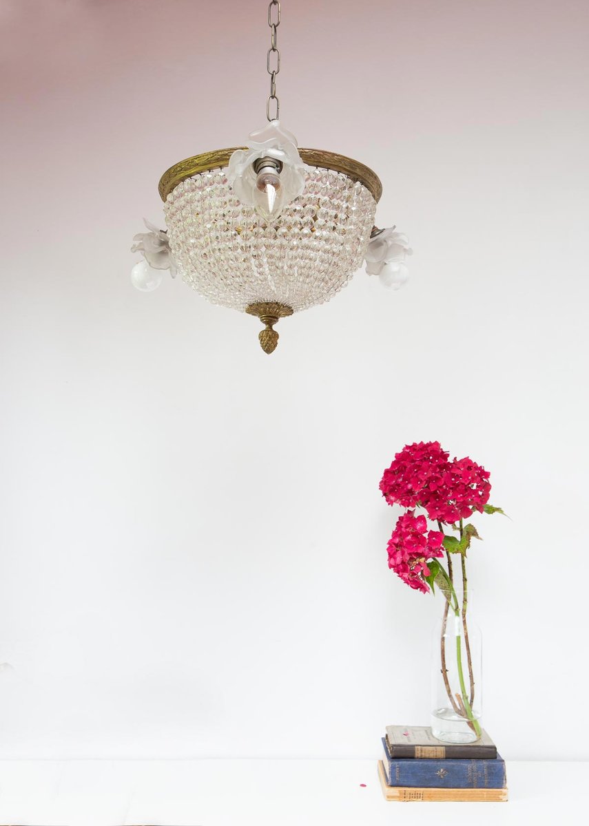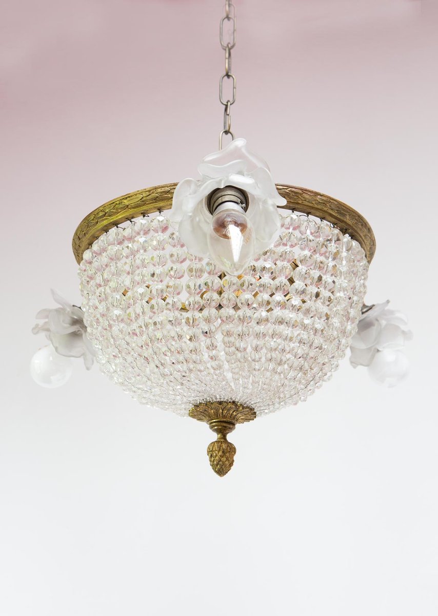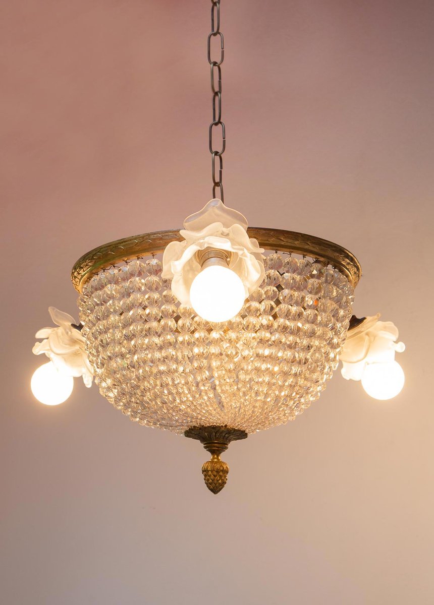 French Corbeille Chandelier in Bronze and Glass, 1890s