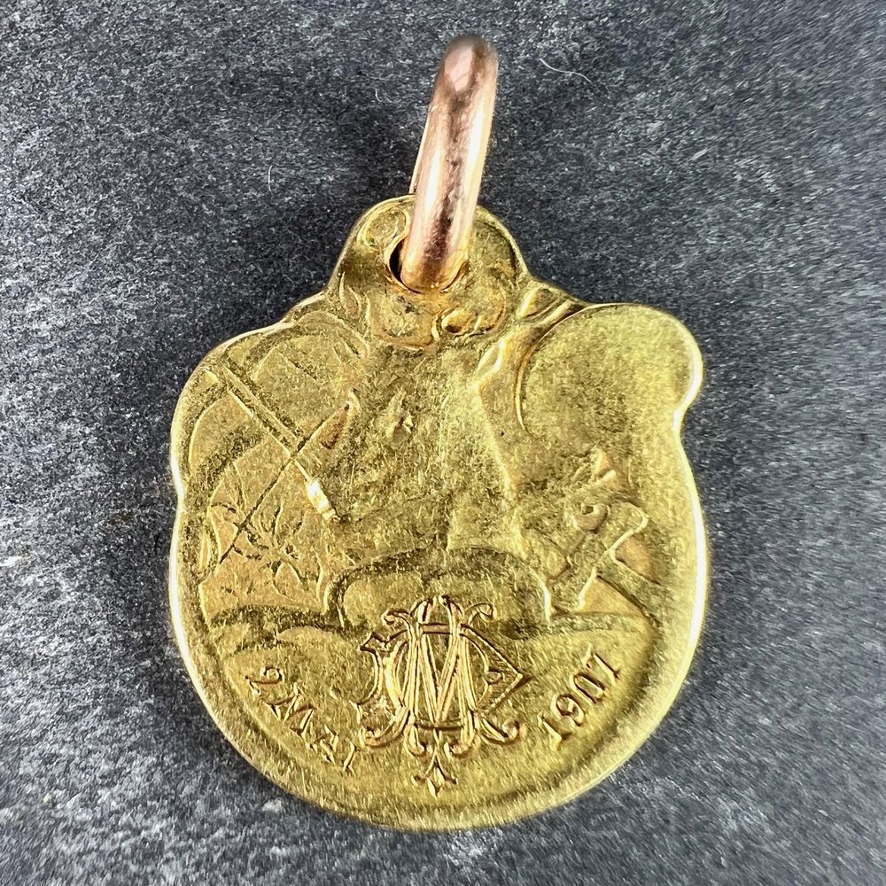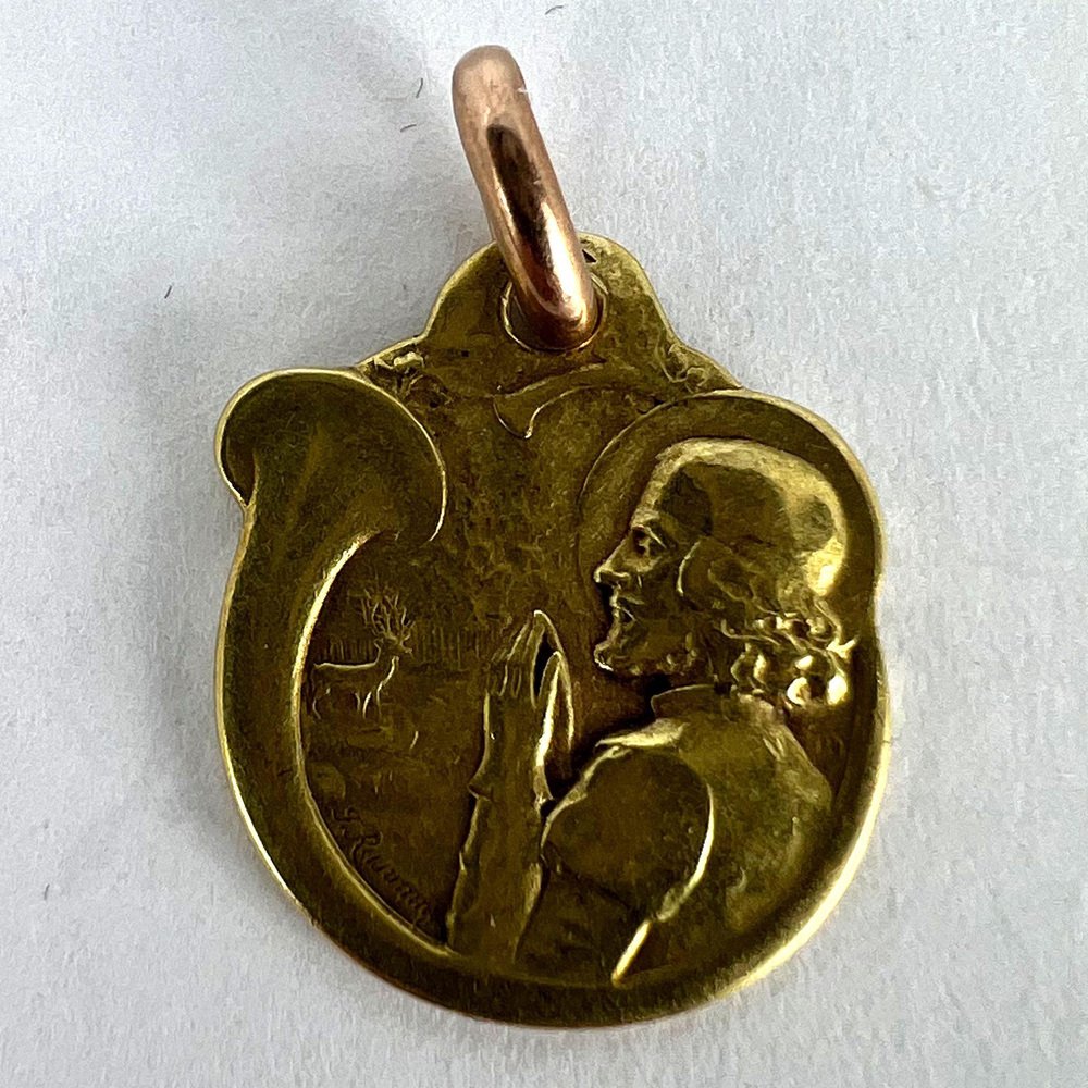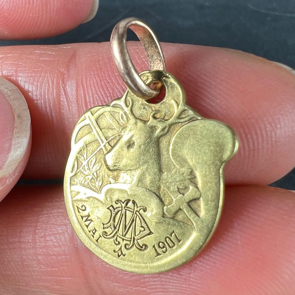French Deer Hunting Horn 18k Yellow Gold Charm Pendant by Rasumny, 1890s