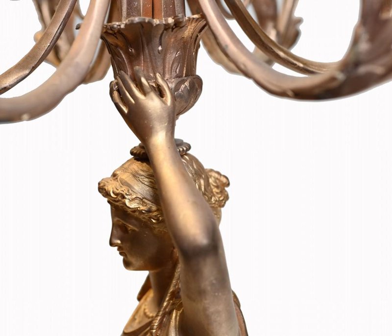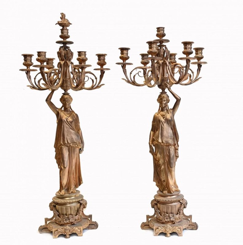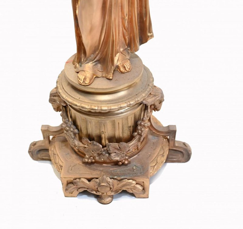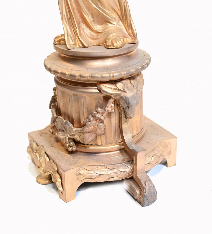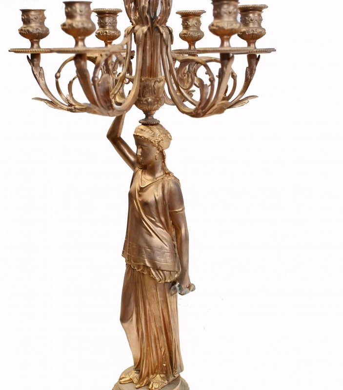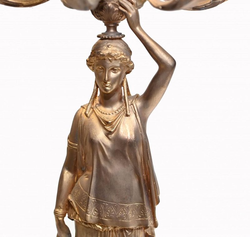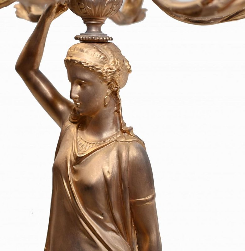 French Gilt Female Maiden Figural Candleholders, Set of 2