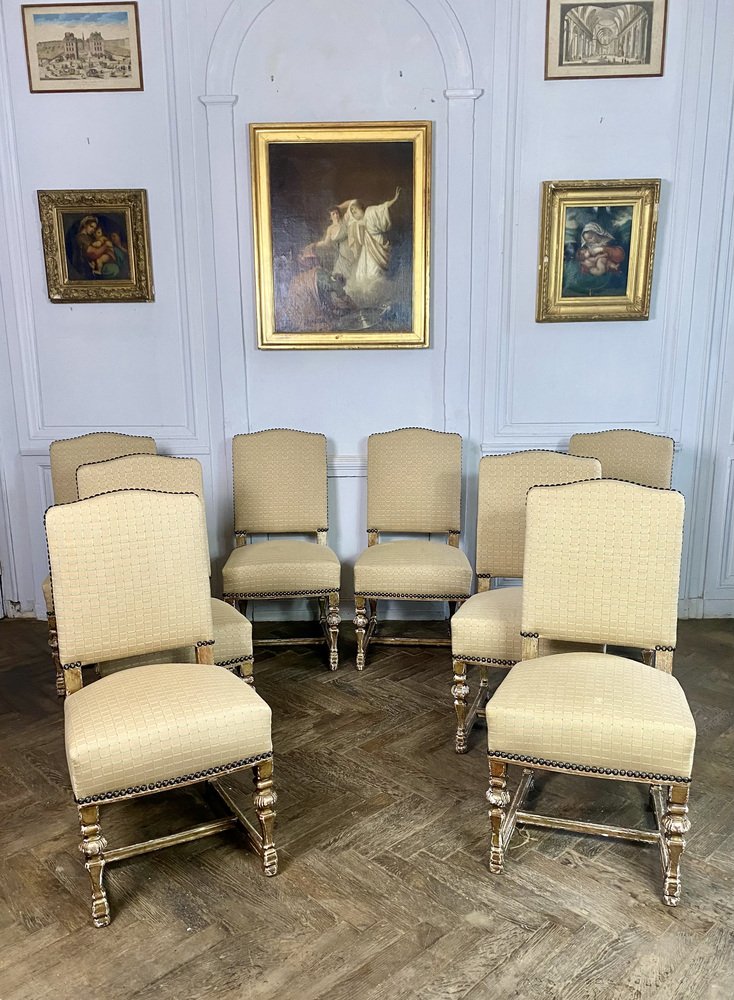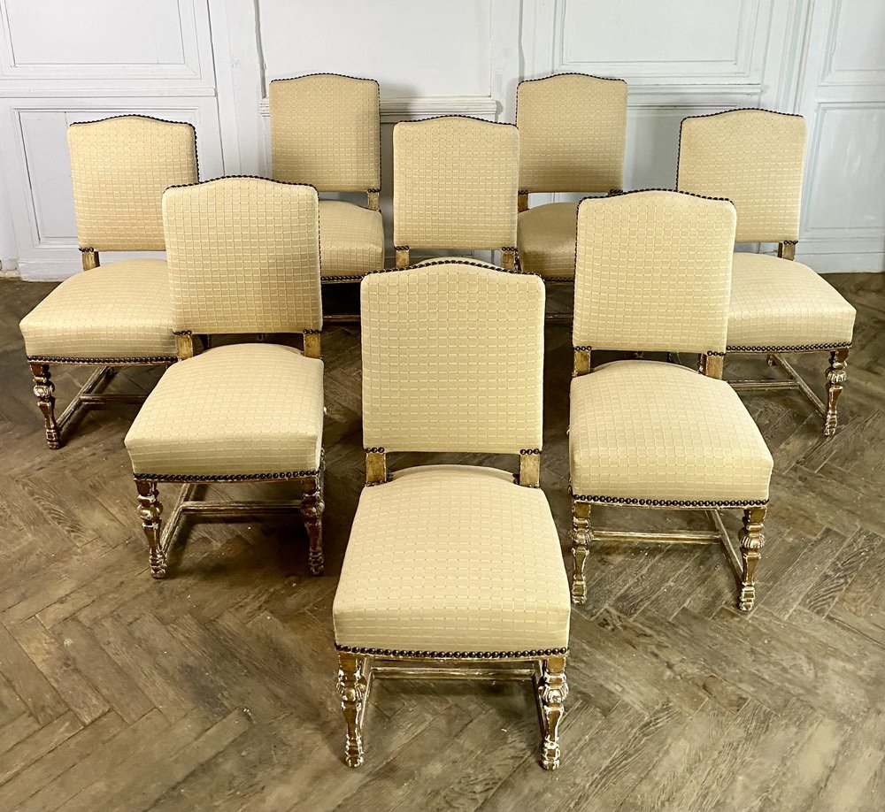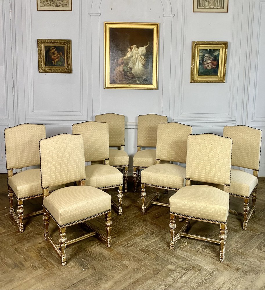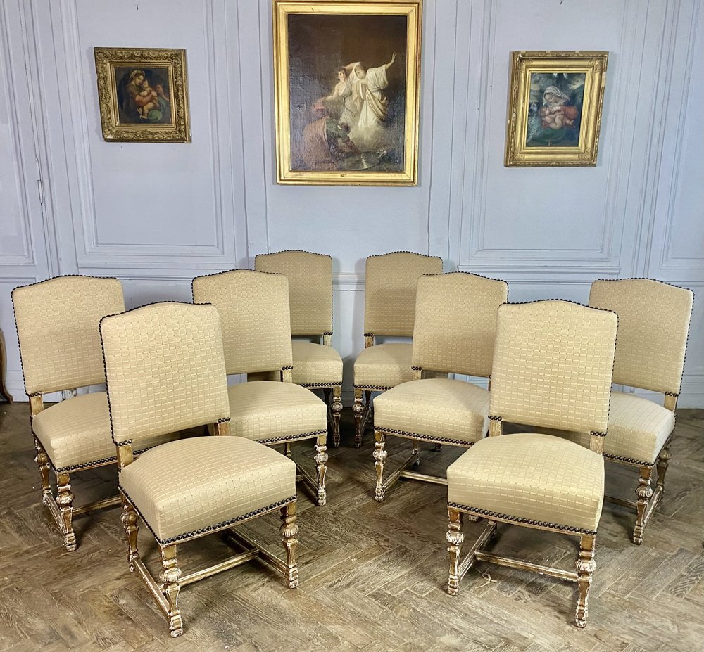 French Louis XIV Style Chairs in Gilt Wood, 1860, Set of 8