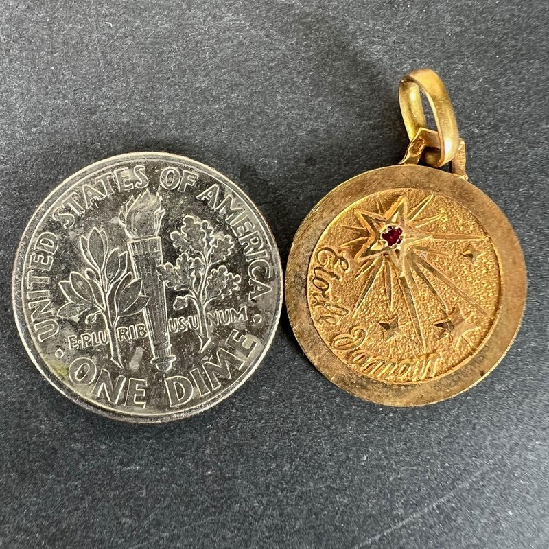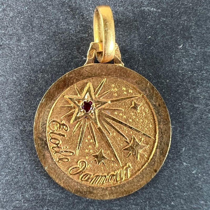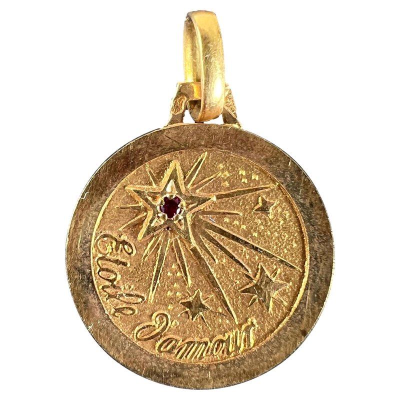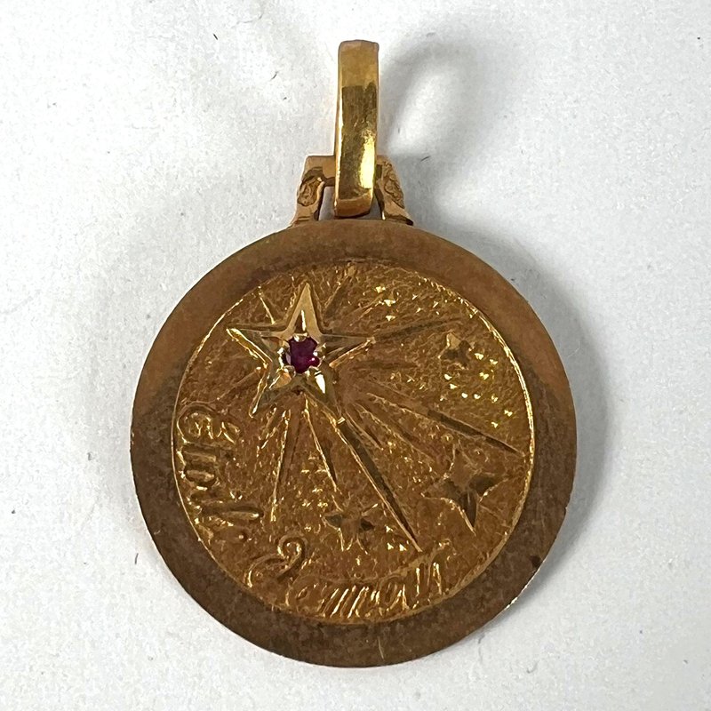 French Lucky Star of Love Ruby Charm Pendant in 18 Karat Yellow Gold, 1920s