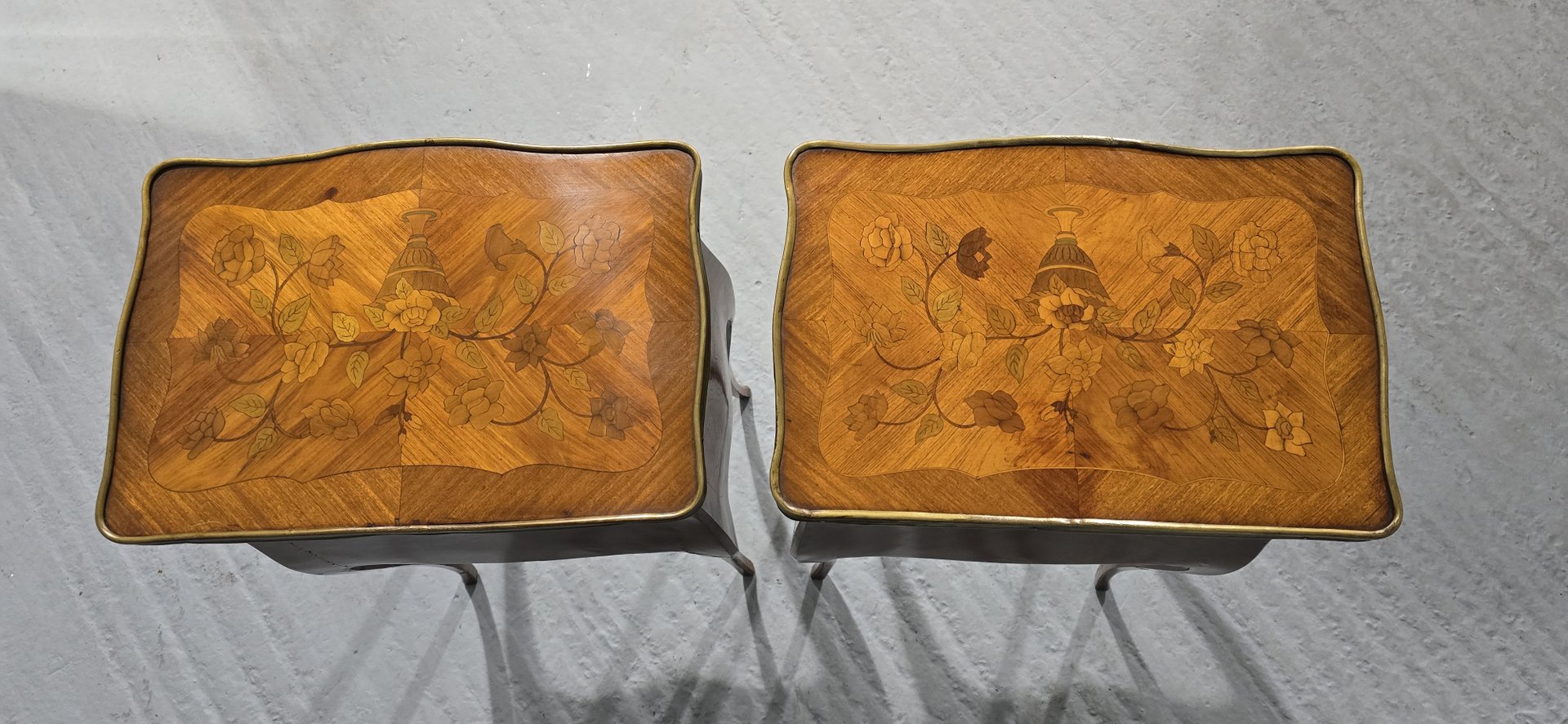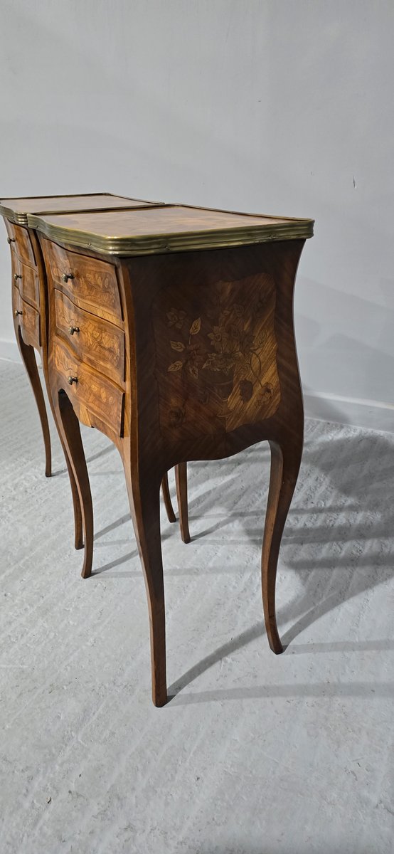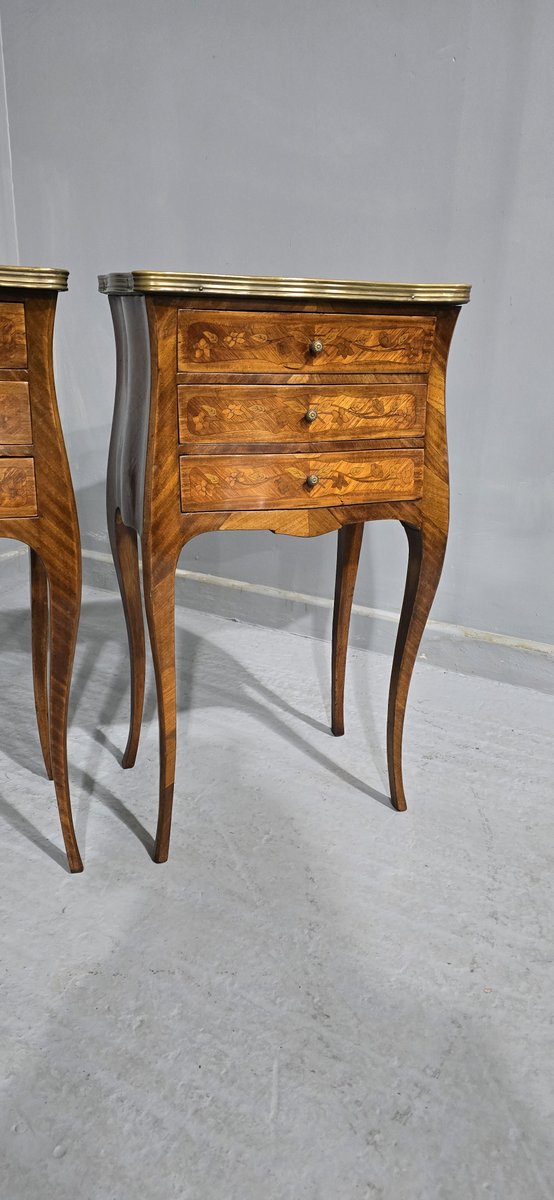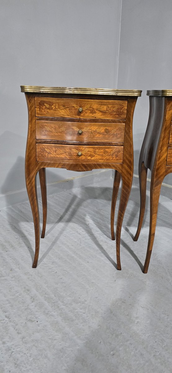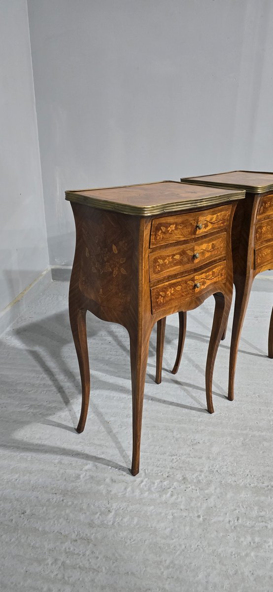 French Marquetry Bedside Lamp Tables, 1900, Set of 2