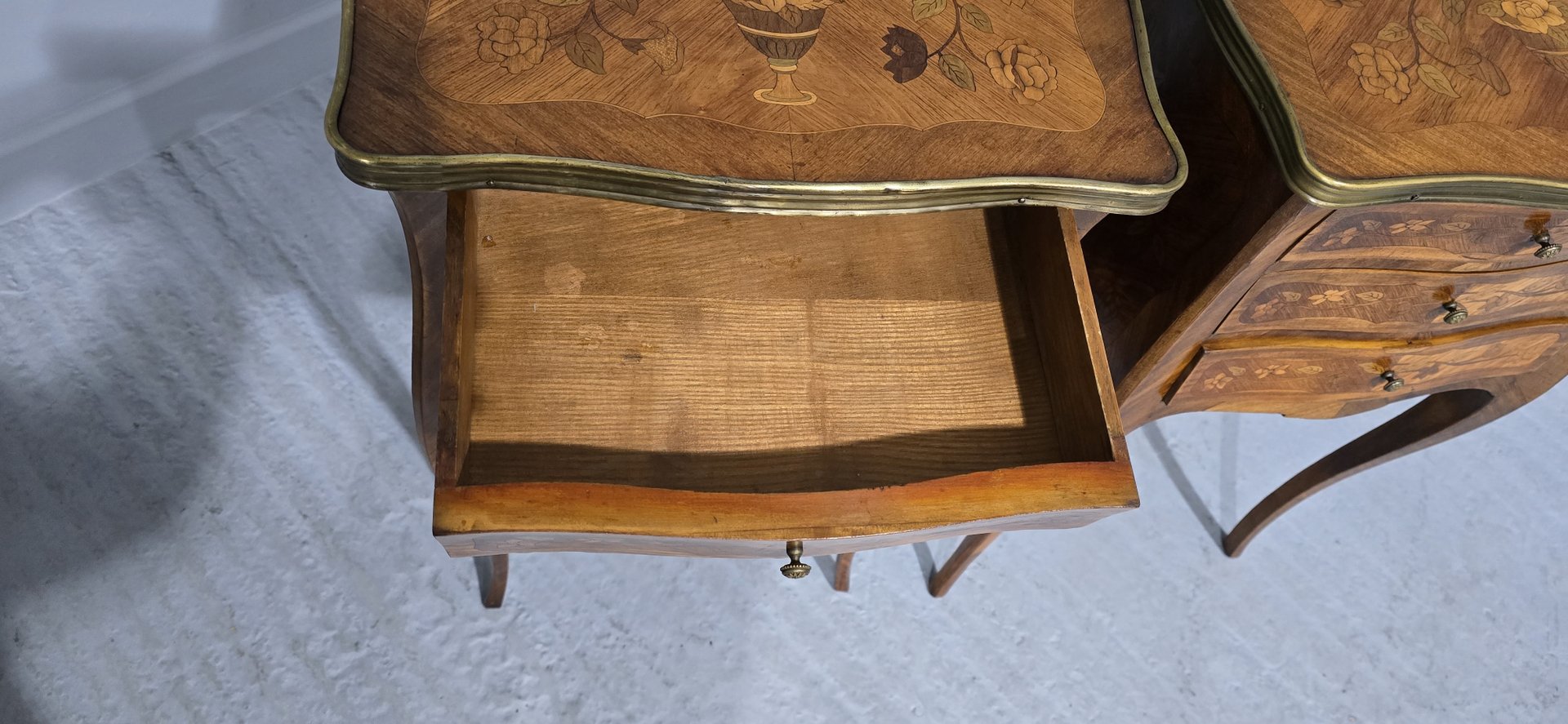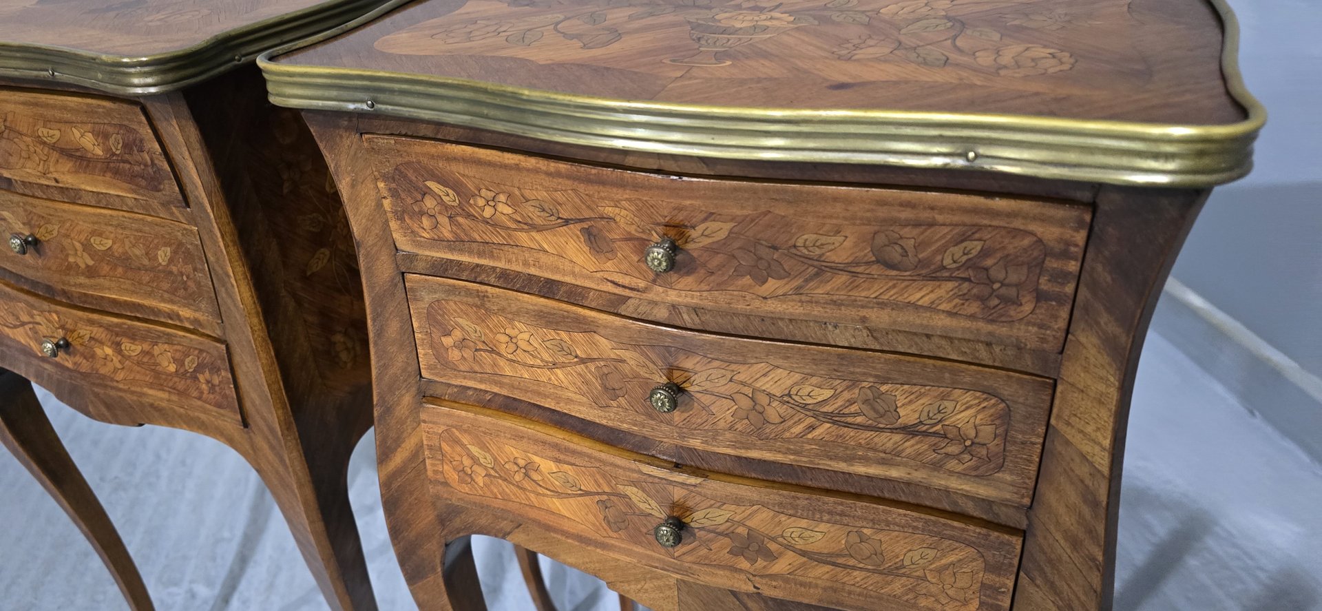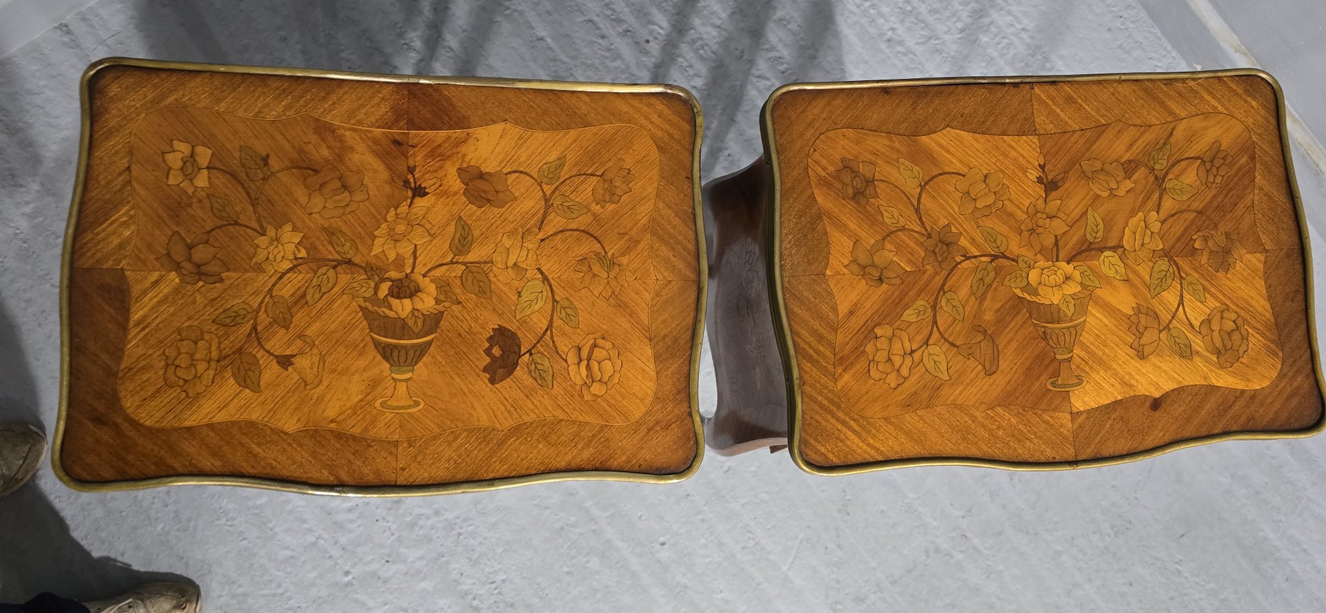 French Marquetry Bedside Lamp Tables, 1900, Set of 2