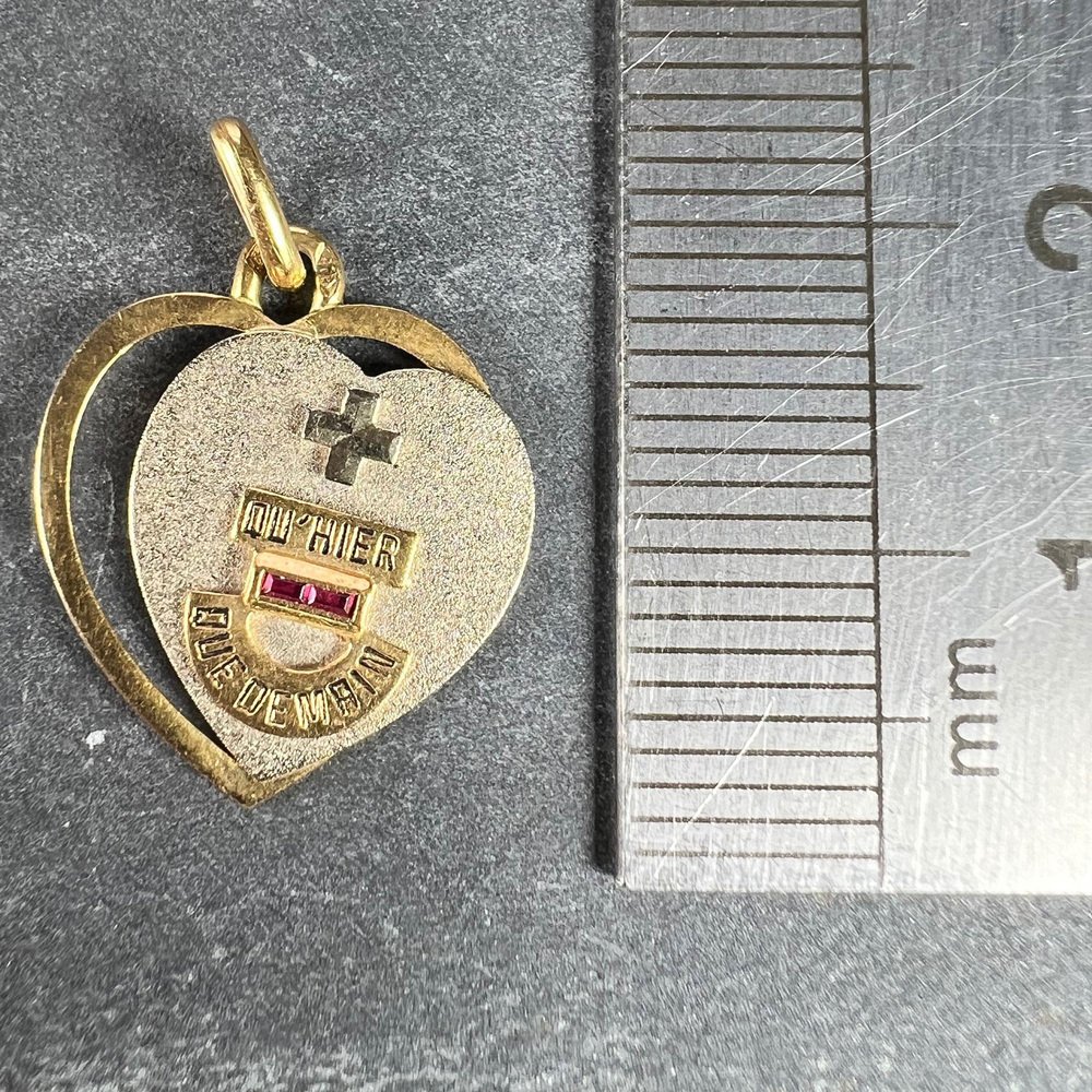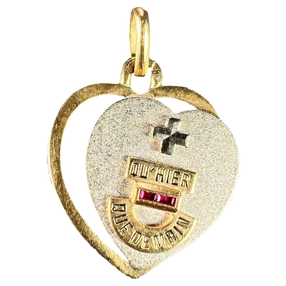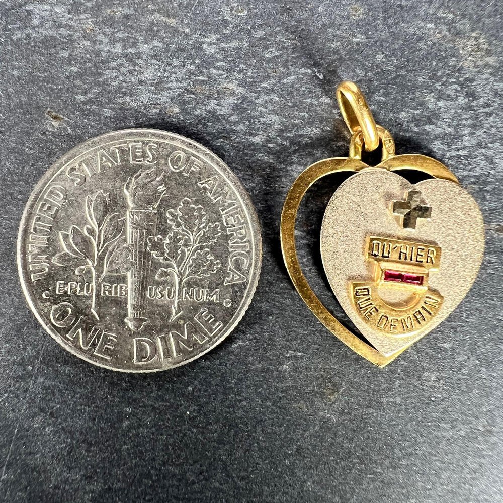 French Plus Quhier Heart Ruby 18k Yellow White Gold Love Charm Pendant from Augis, 1960s