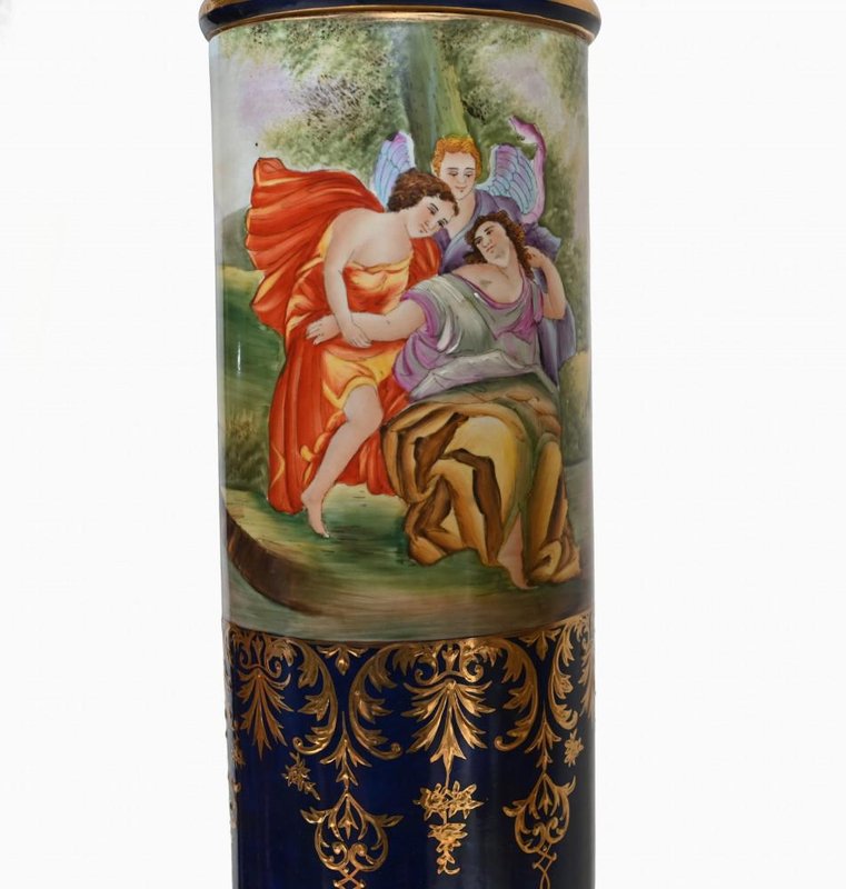 French Porcelain Pedestal Stands, Set of 2