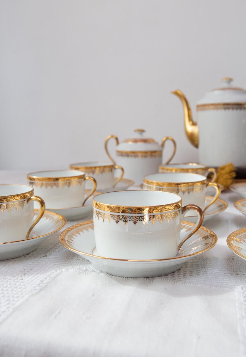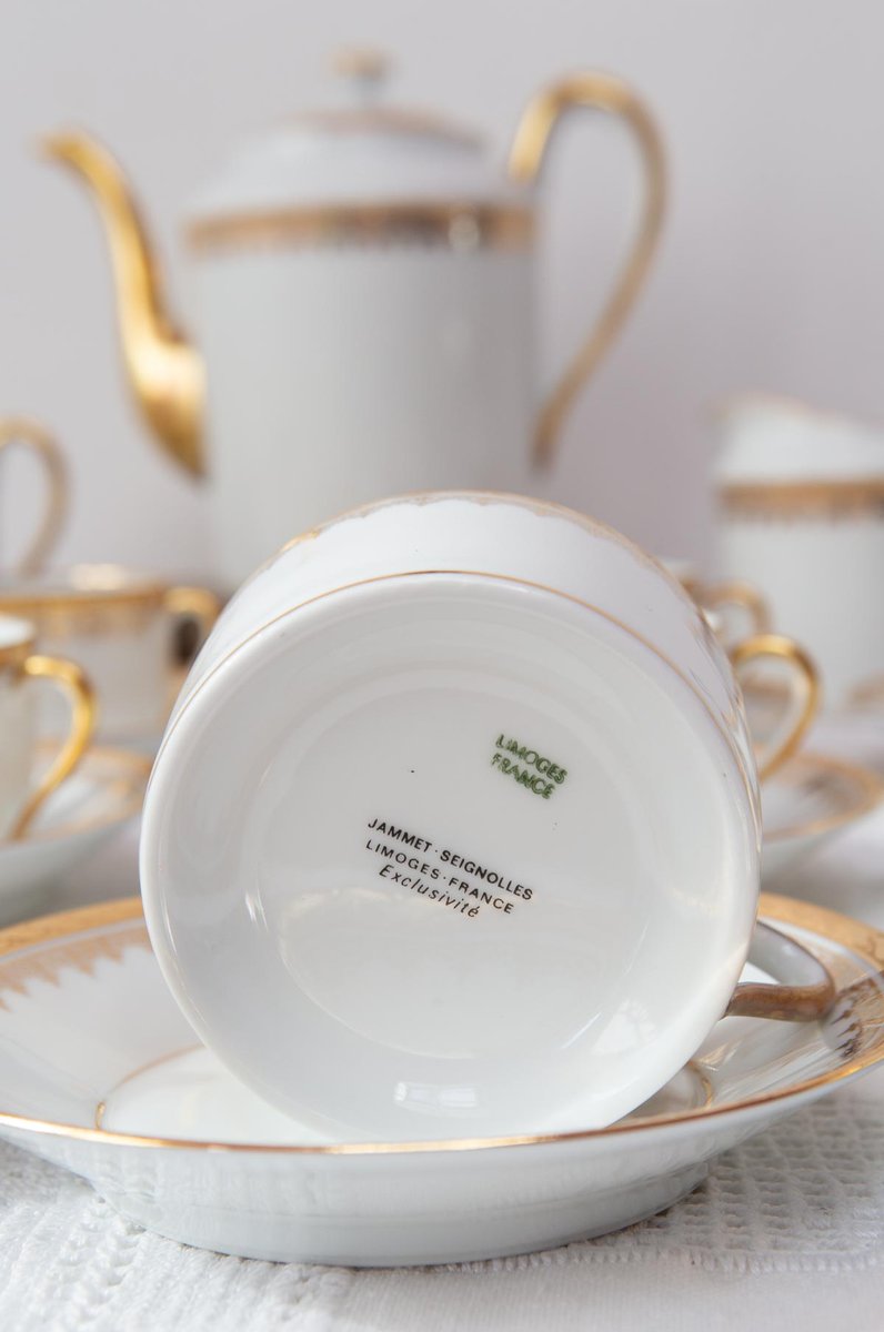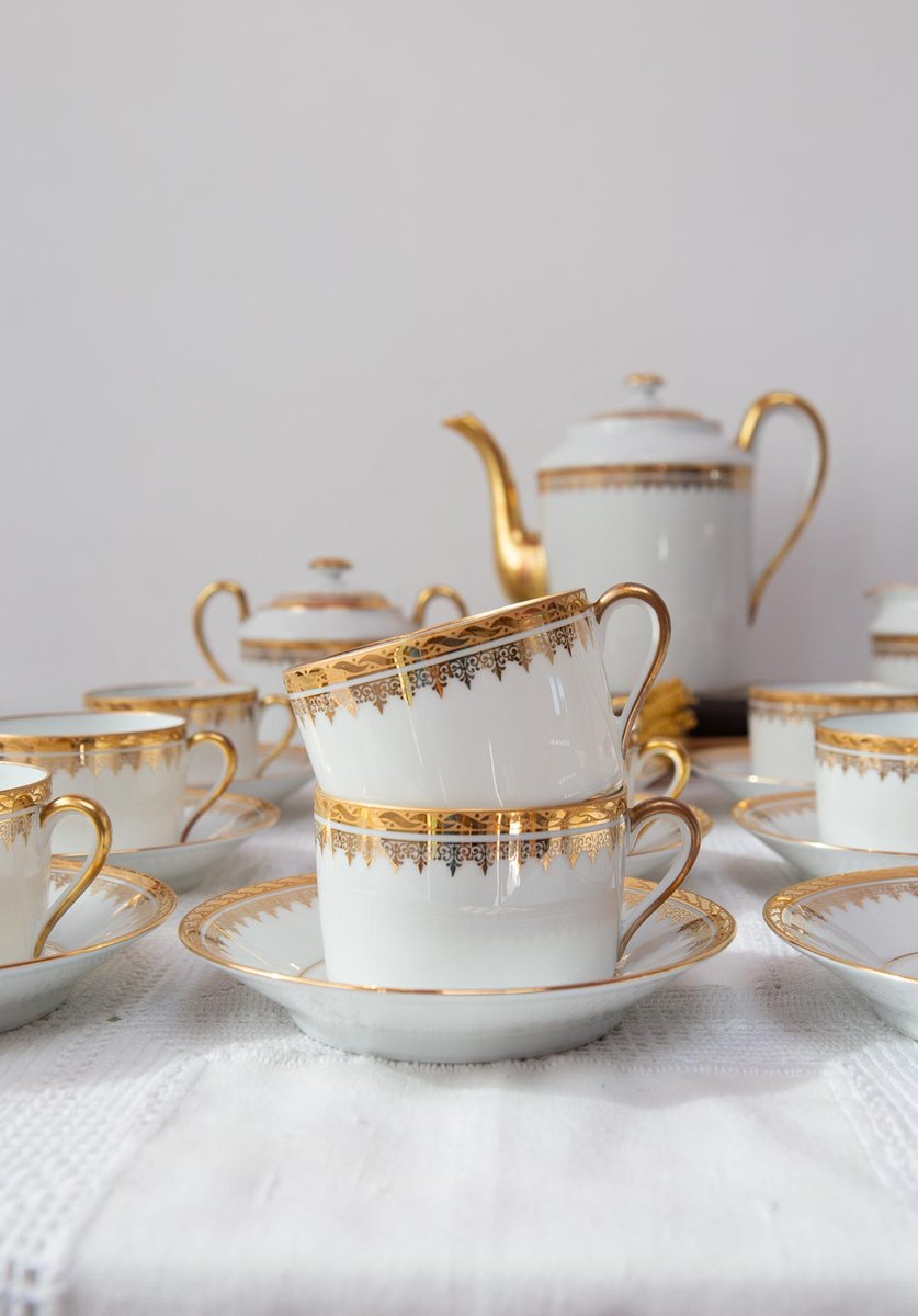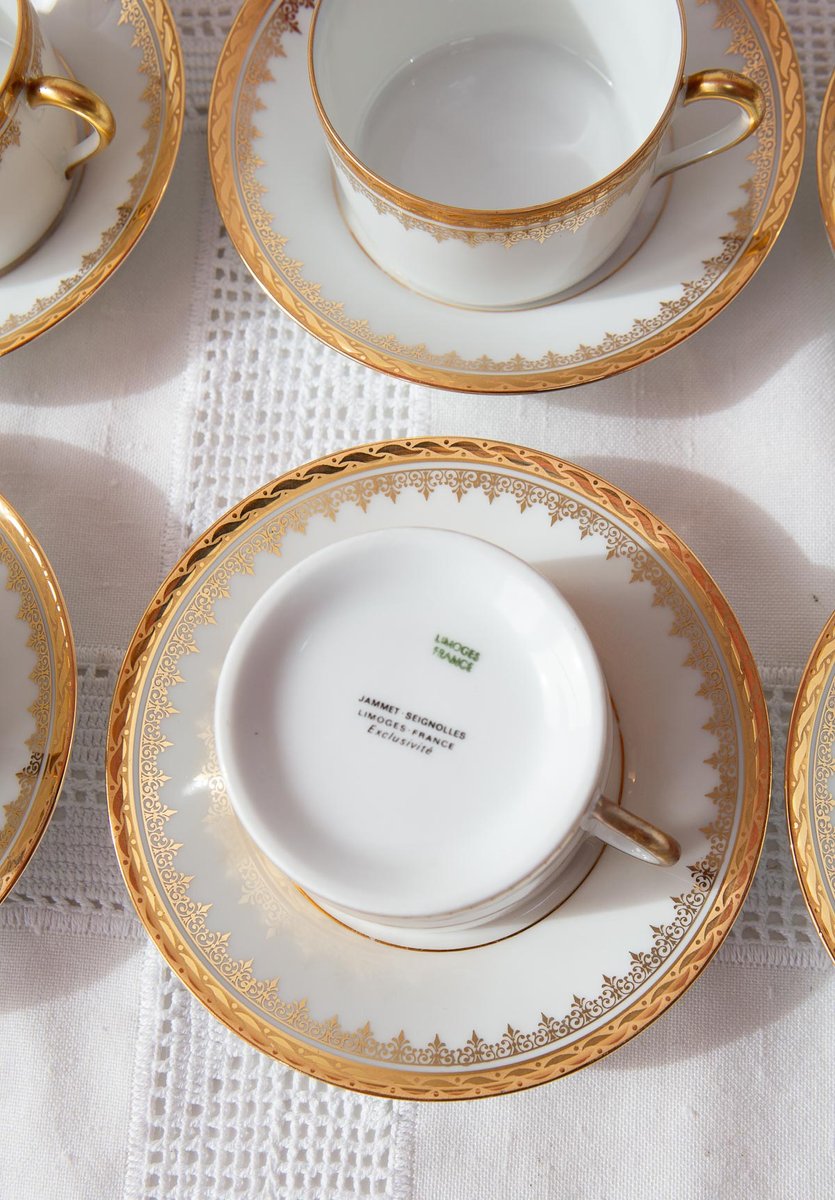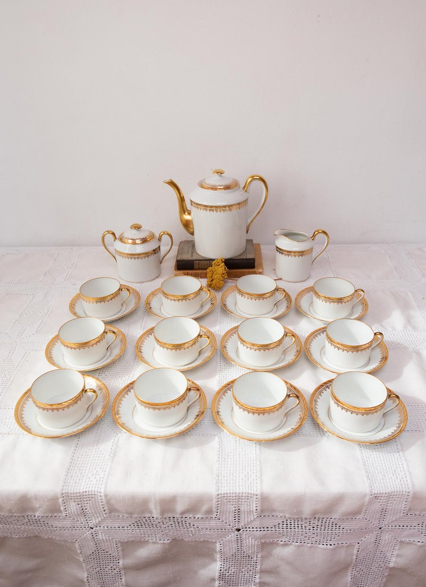 French Porcelain Tea Service for 12 by Jammet Seignolles for Limoges, 1960s, Set of 27