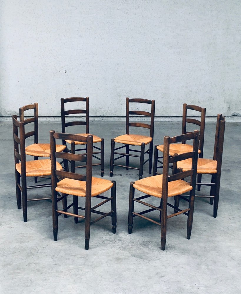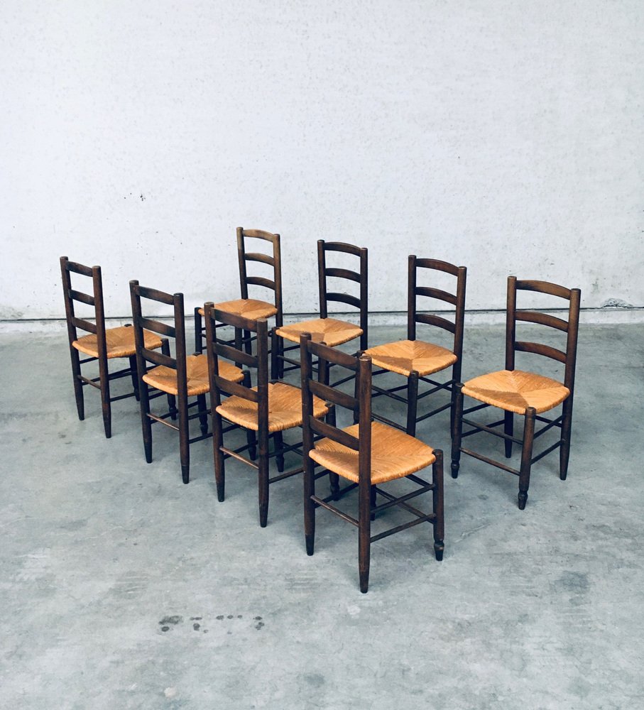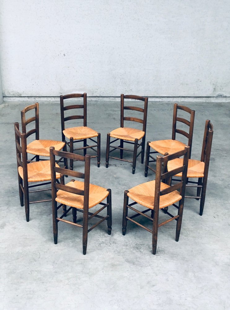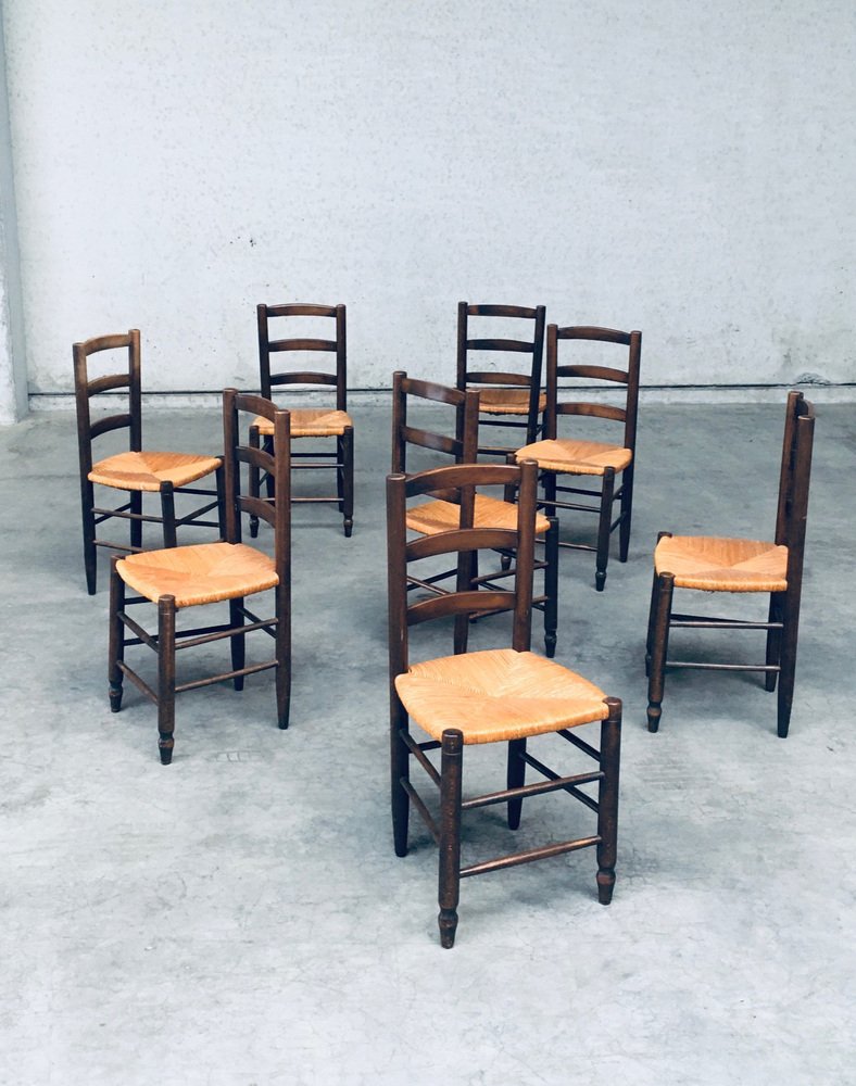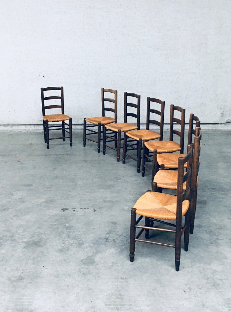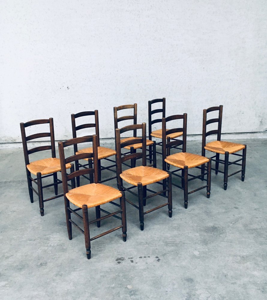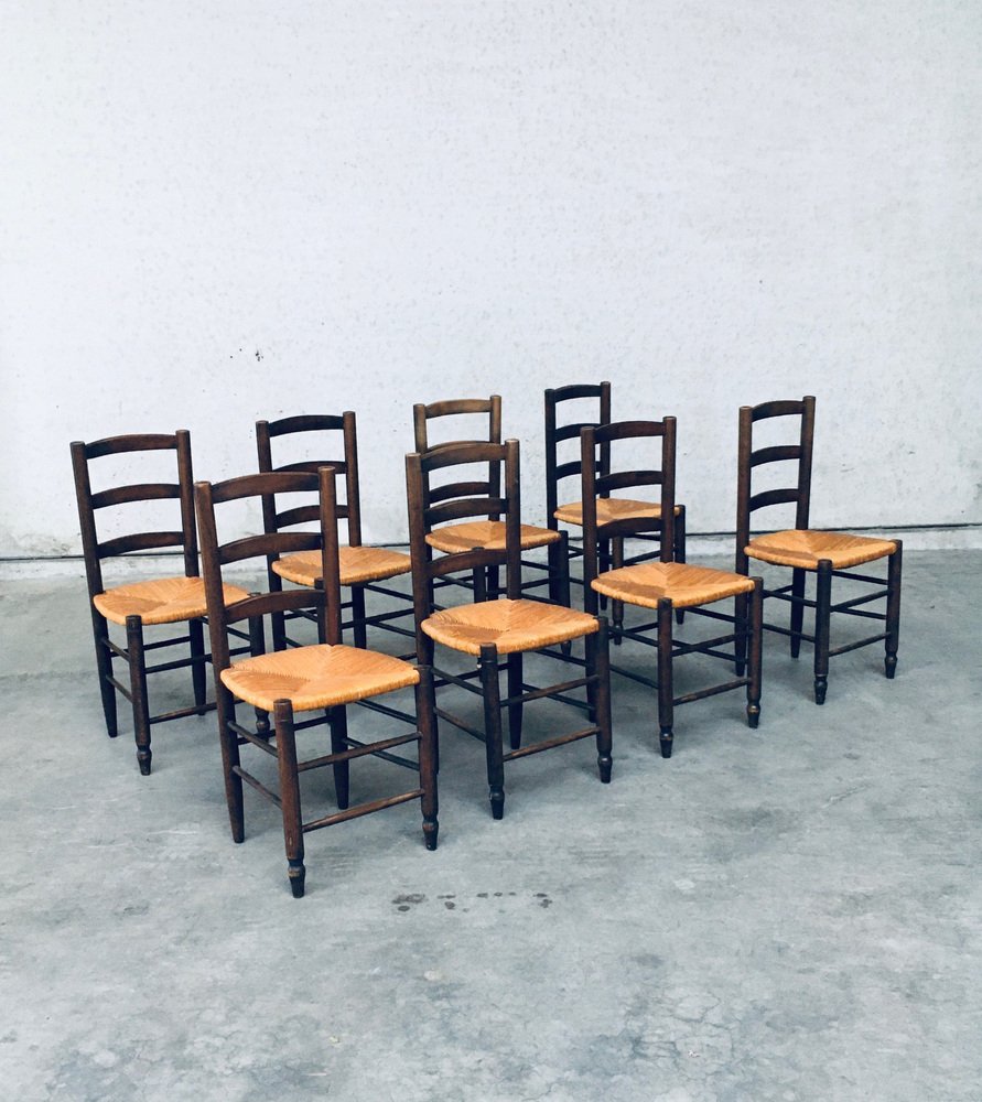 French Provincial Design Rush Dining Chairs, 1940s, Set of 8