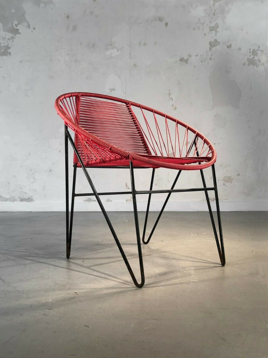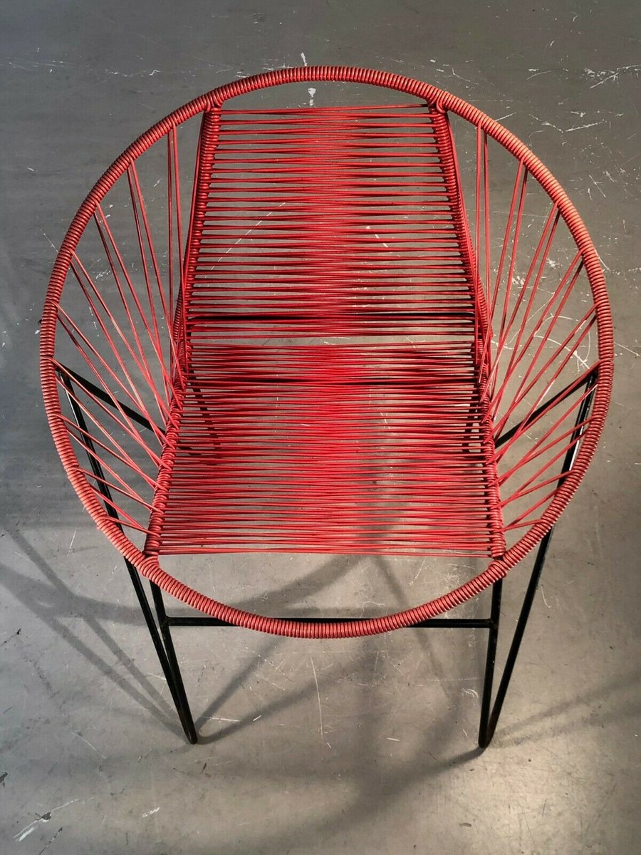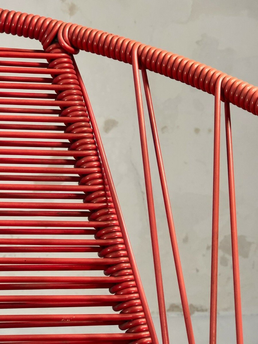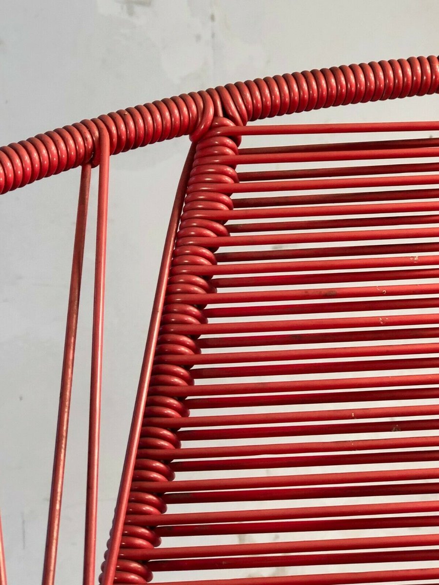 French Red Vinyl Wire Chair by Raoul Guys, 1950s