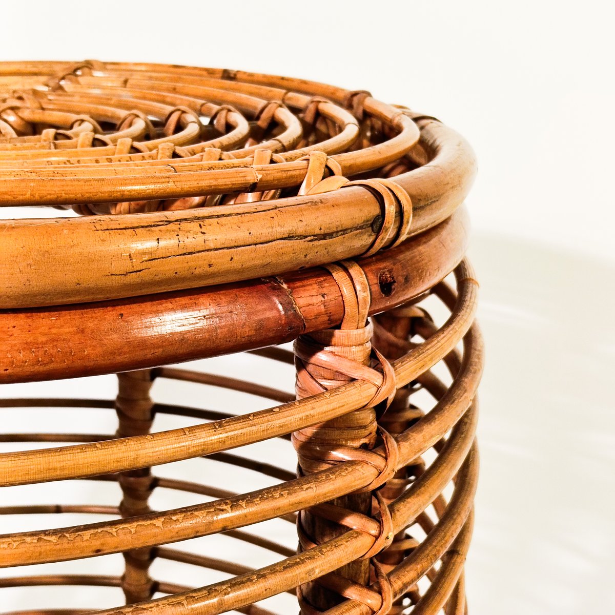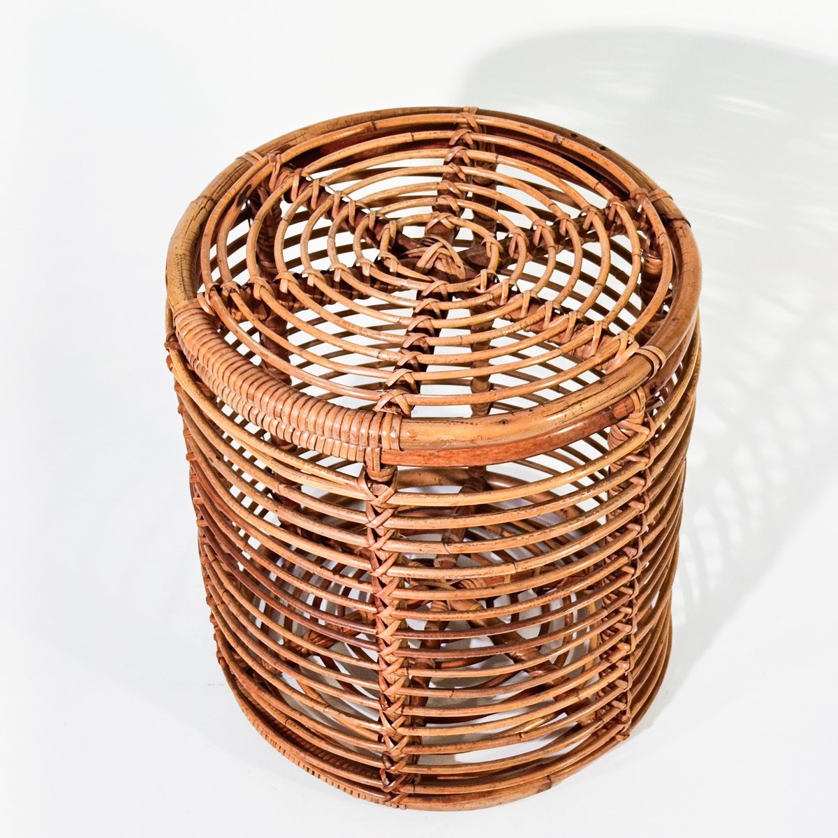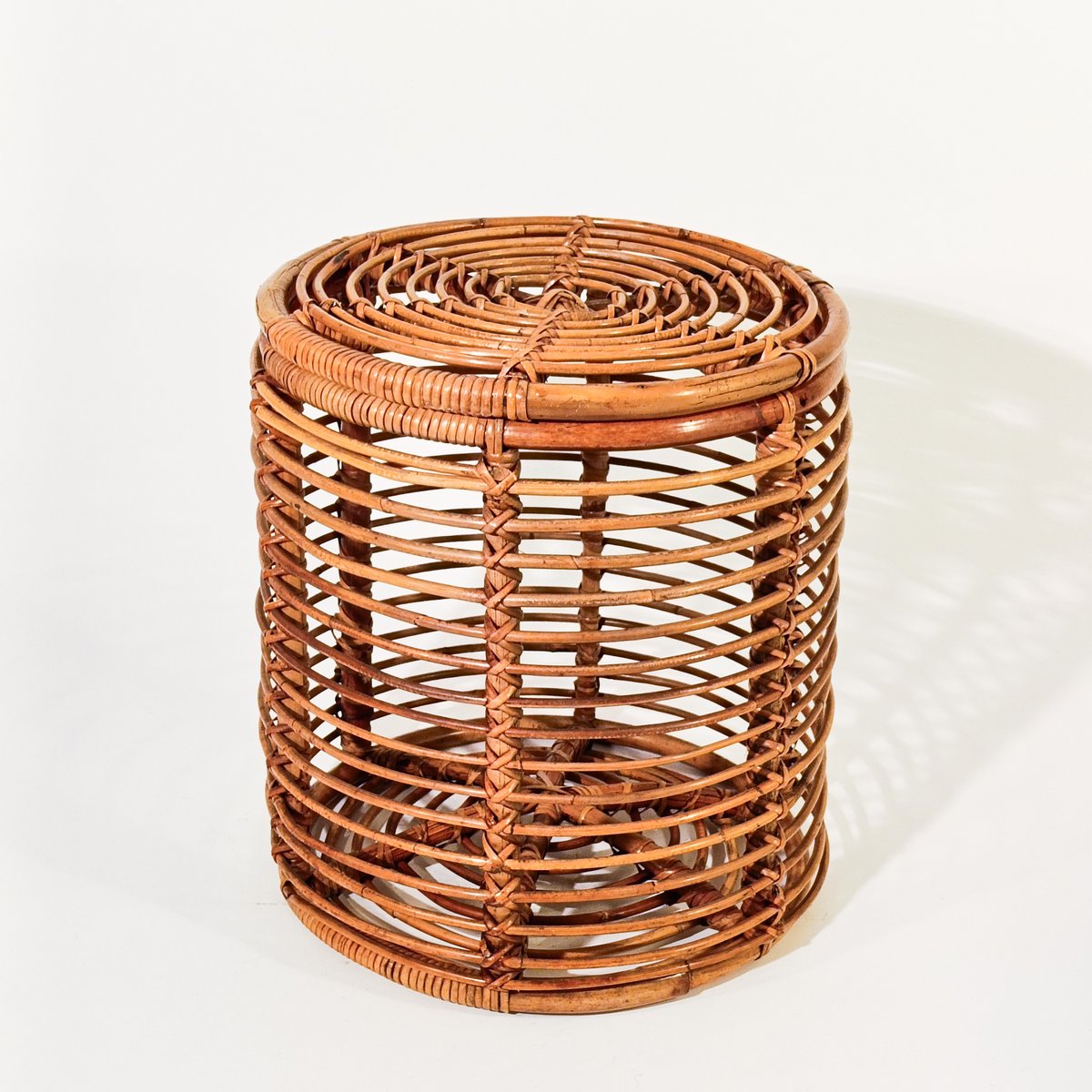French Riviera Style Rattan Stool or Basket by Tito Agnoli, Italy, 1970s