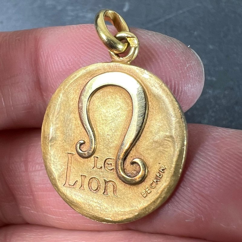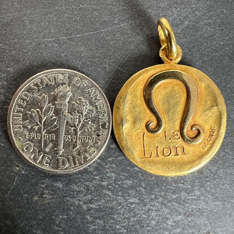 French Zodiac Leo Starsign 18k Yellow Gold Charm Pendant from Becker, 1950s