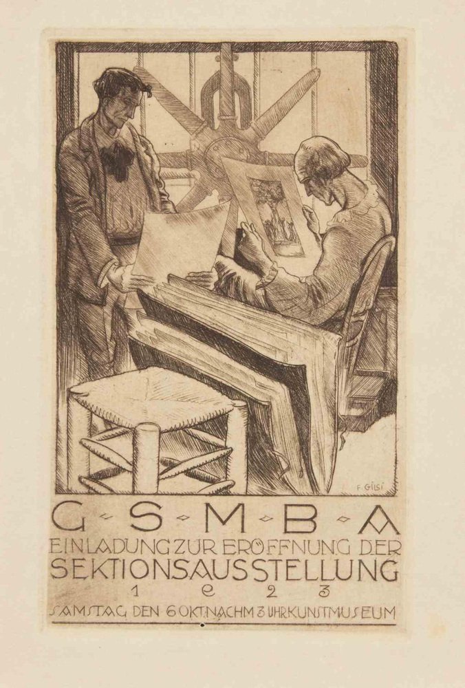 Fritz Gilsi, Invitation GSMBA 1923, Etching, 1923