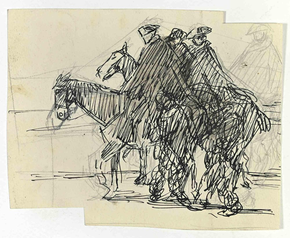 Gabriele Galantara, Horsemen, Mixed Media Drawing, Early 20th Century