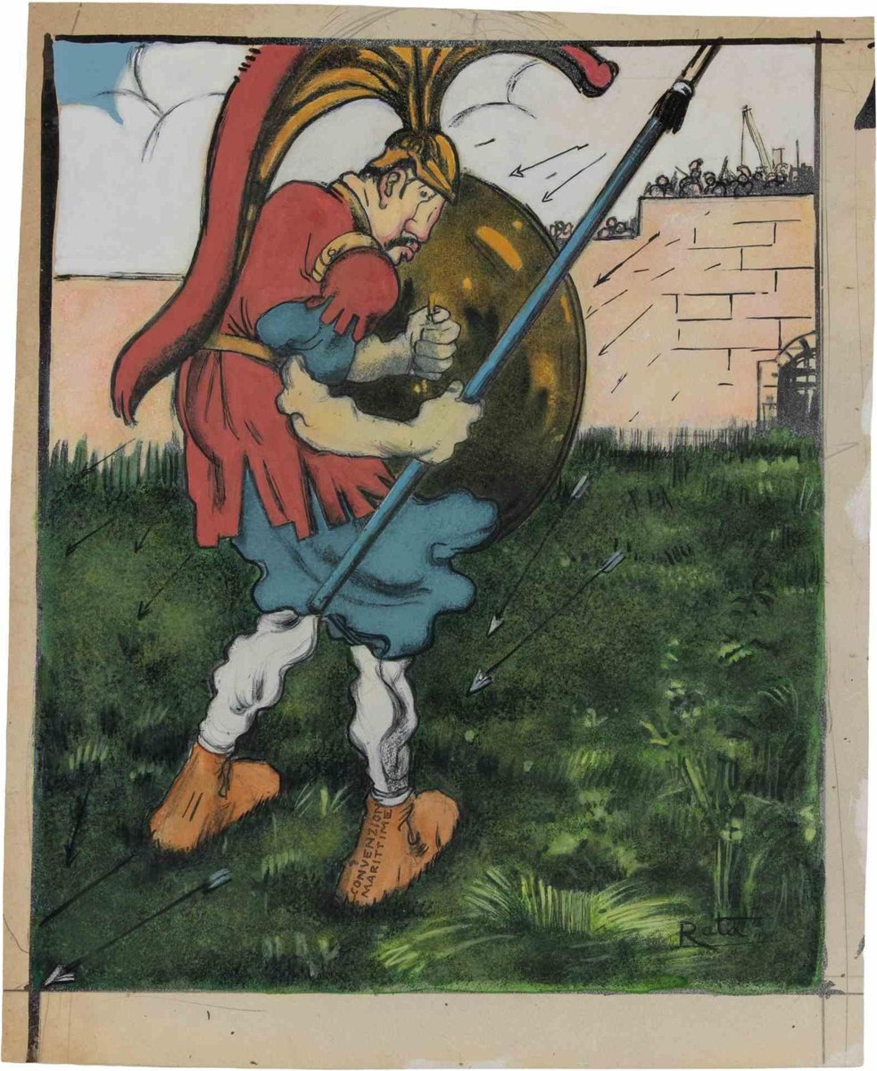 Gabriele Galantara, The Brave Soldier, Mixed Media on Paper, Early 20th Century