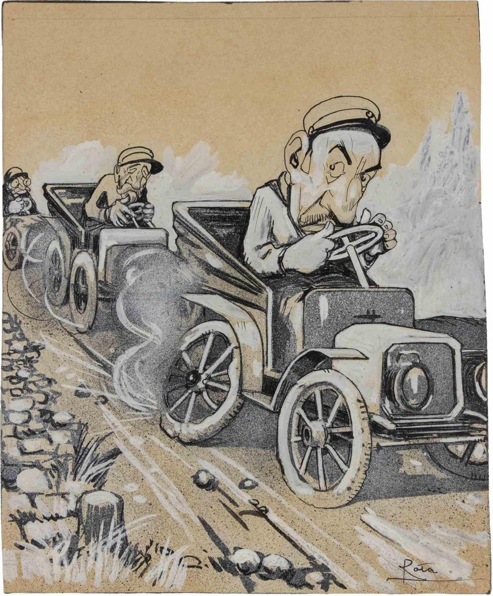 Gabriele Galantara, The Drivers, Mixed Media on Paper, Early 20th Century