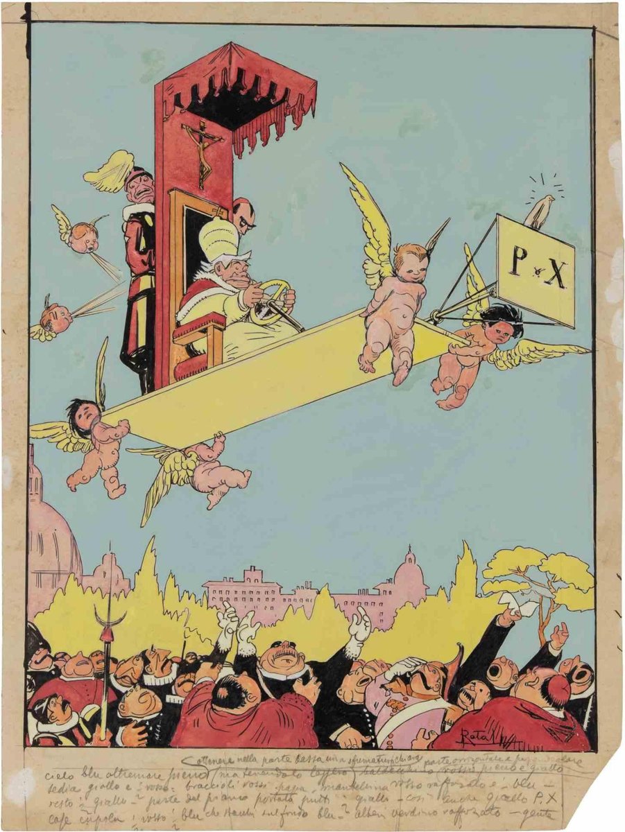 Gabriele Galantara, The Pope, Mixed Media on Paper, Early 20th Century