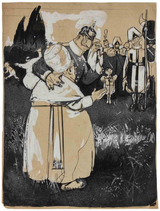 Gabriele Galantara, The Visit of the Pope, Mixed Media Drawing, 1908
