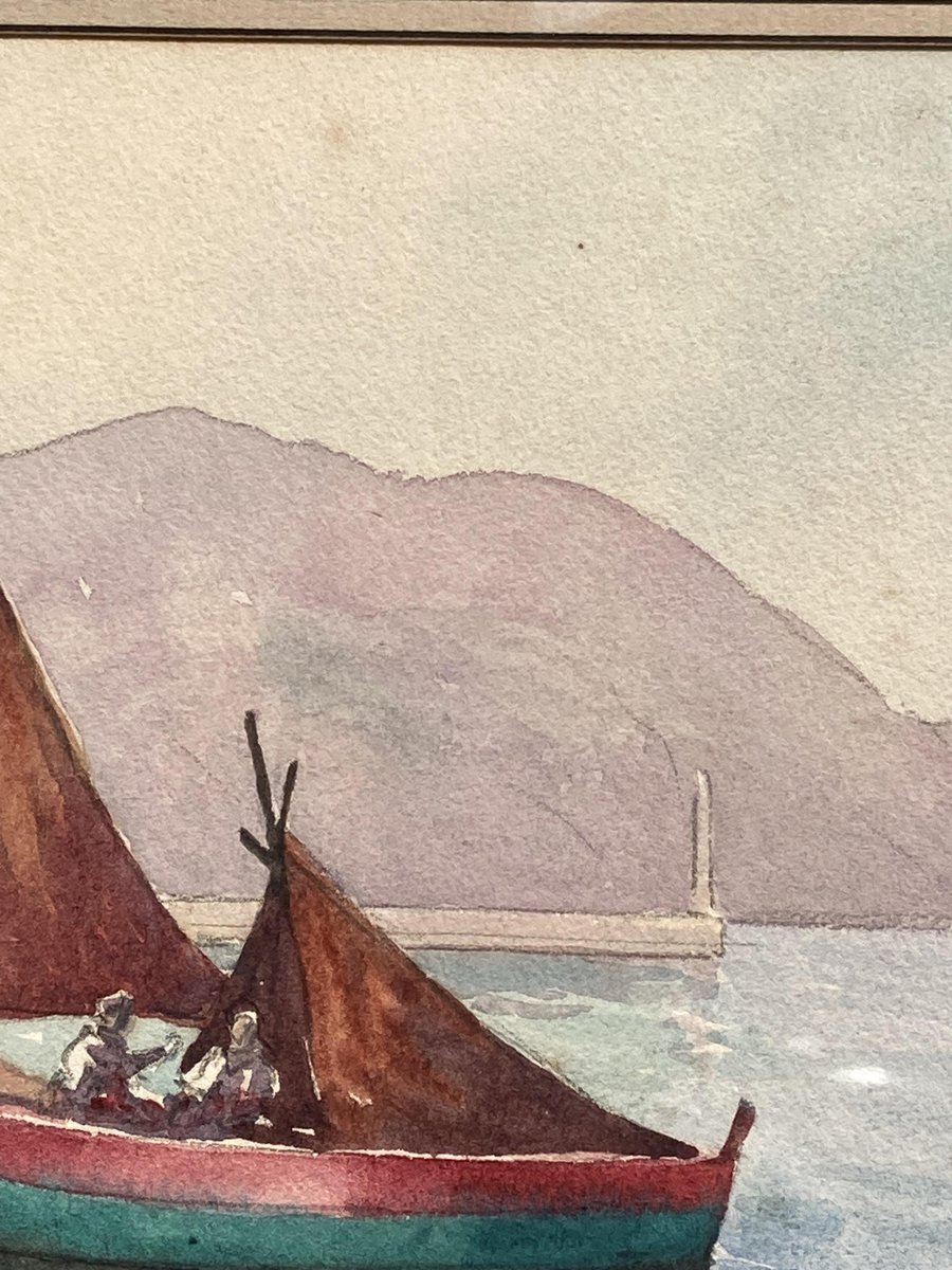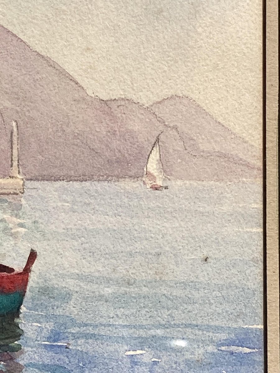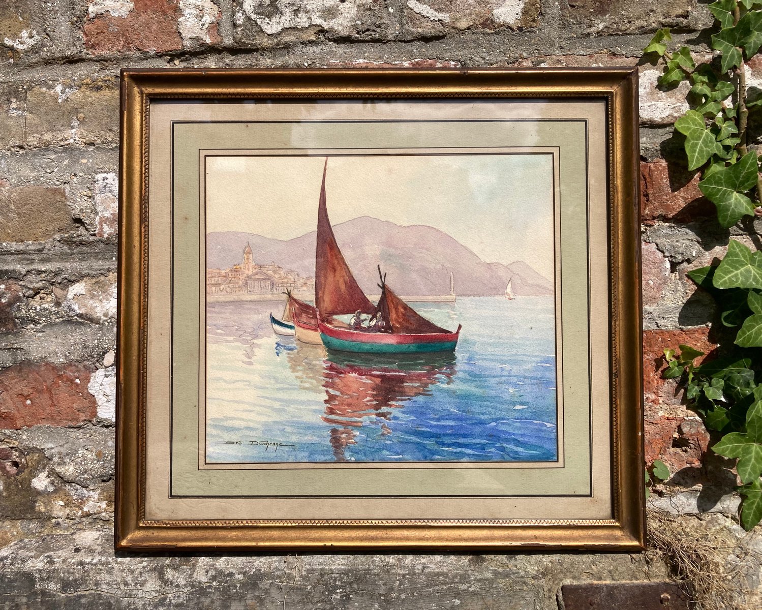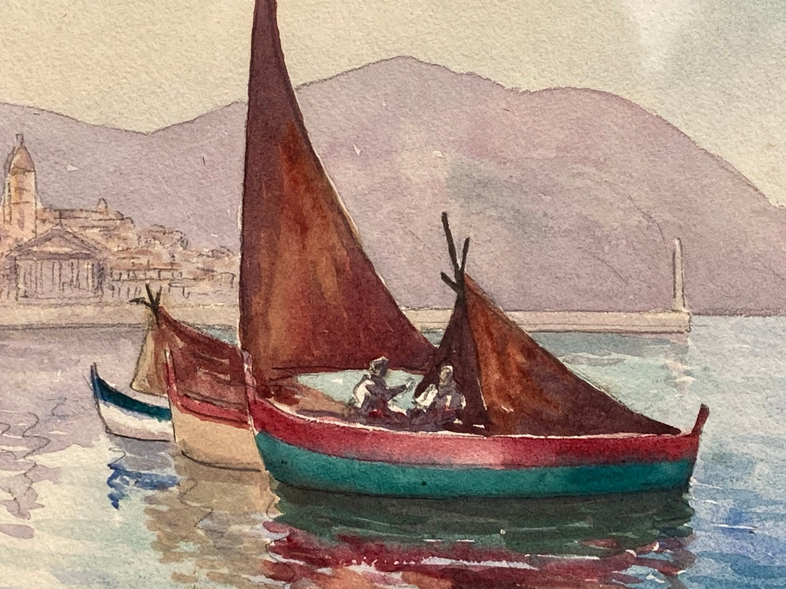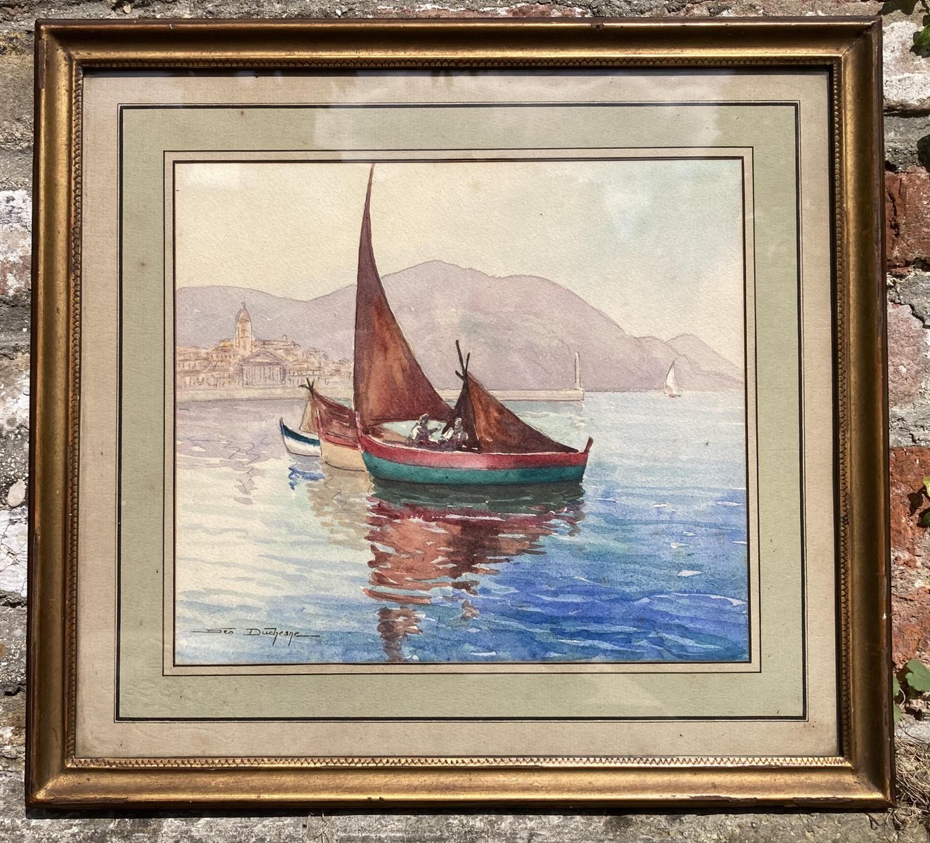 Geo Duchesne, Mediterranean Marine, Watercolor, 20th Century, Framed