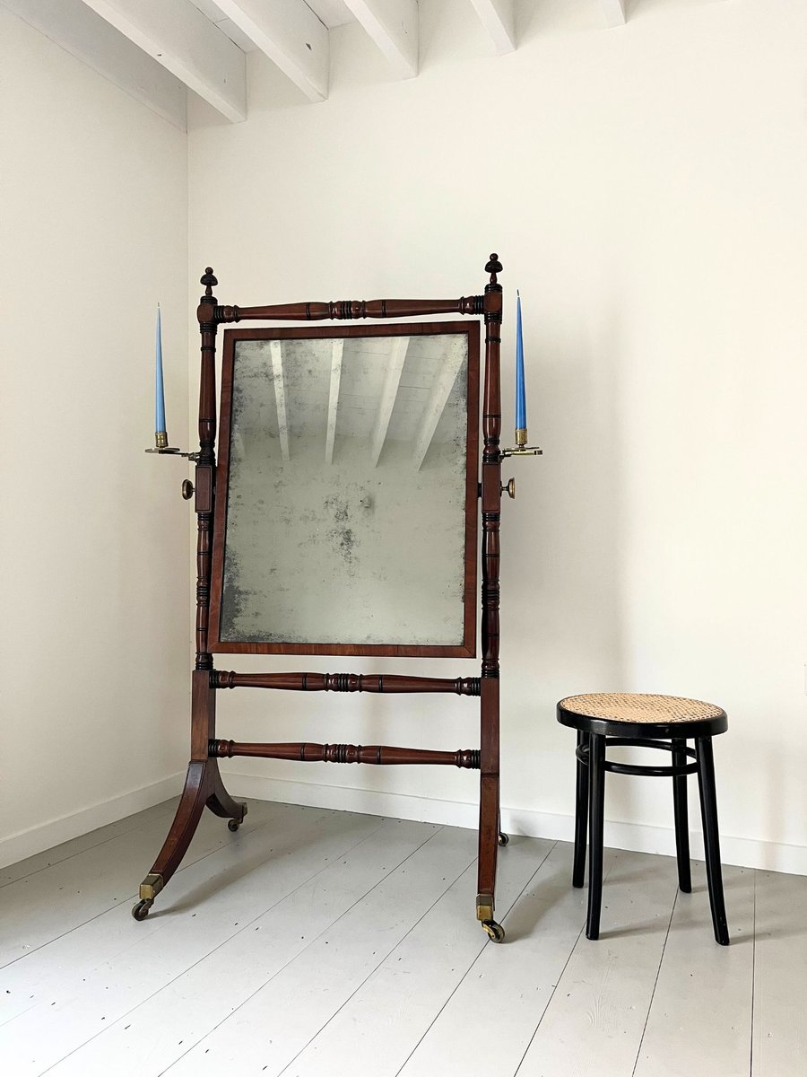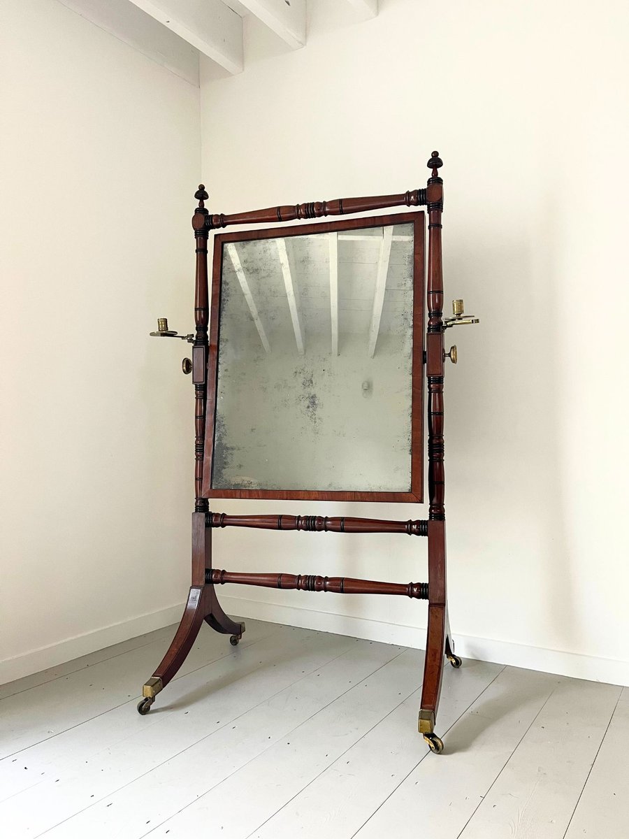 George III Cheval Free Standing Mirror in Turned Wood and Brass, Britain, 1800s