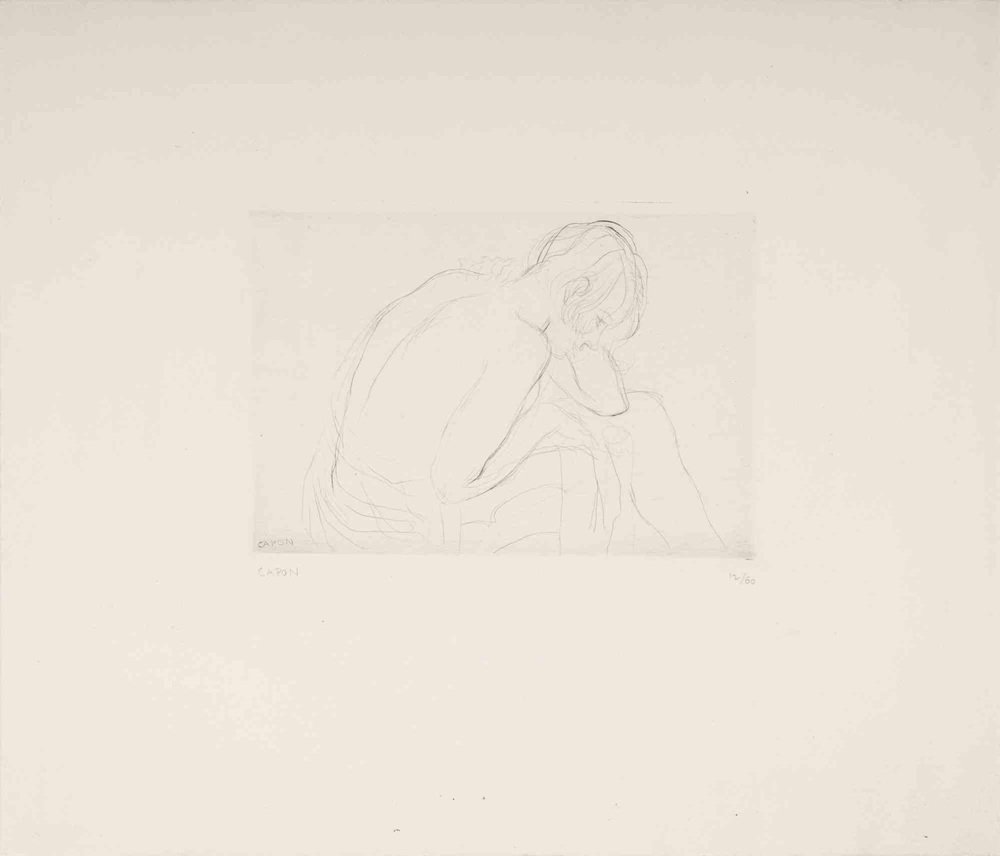 Georges Emile Capon, Nude From Behind, Original Etching, Mid-20th Century