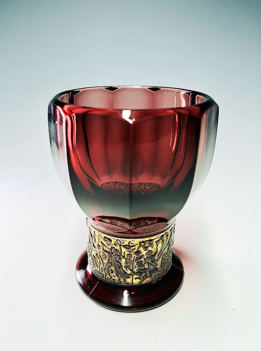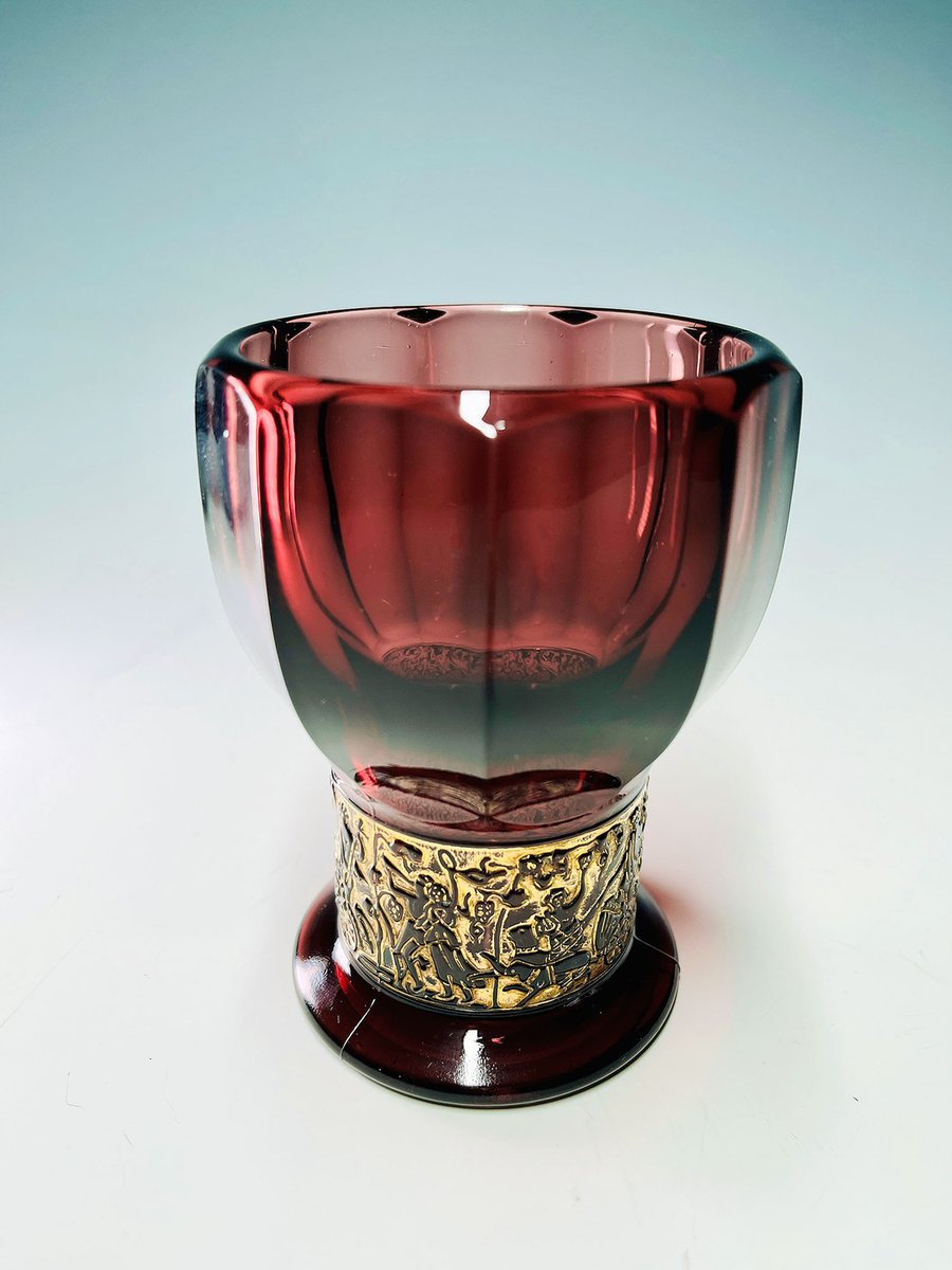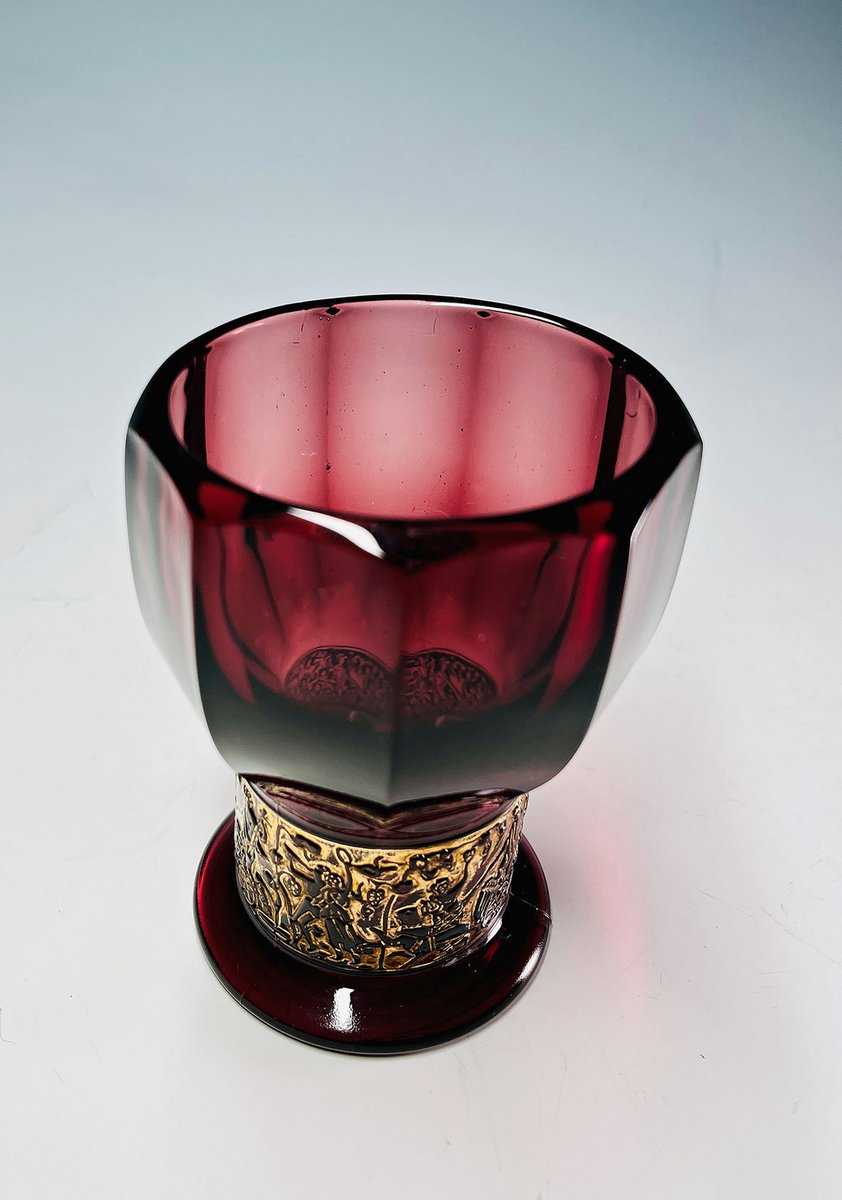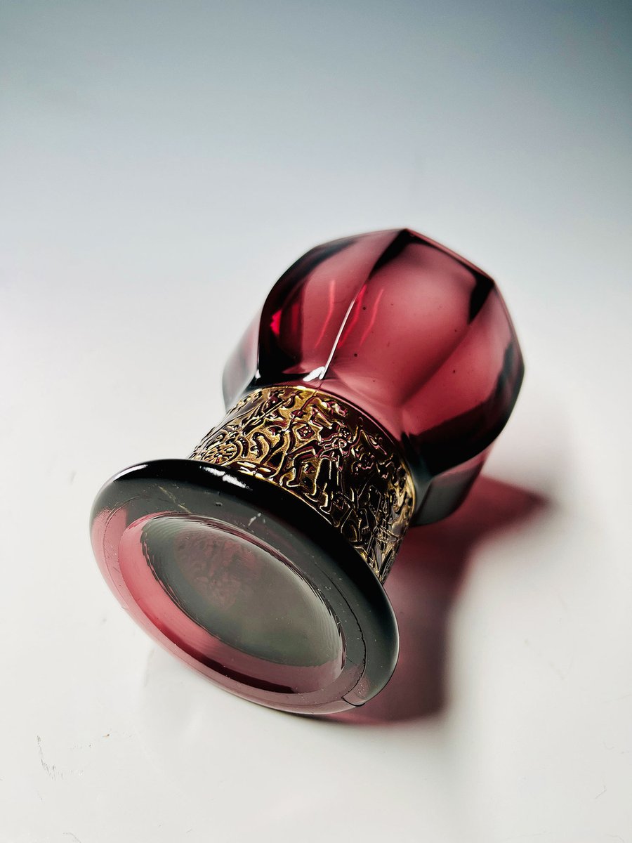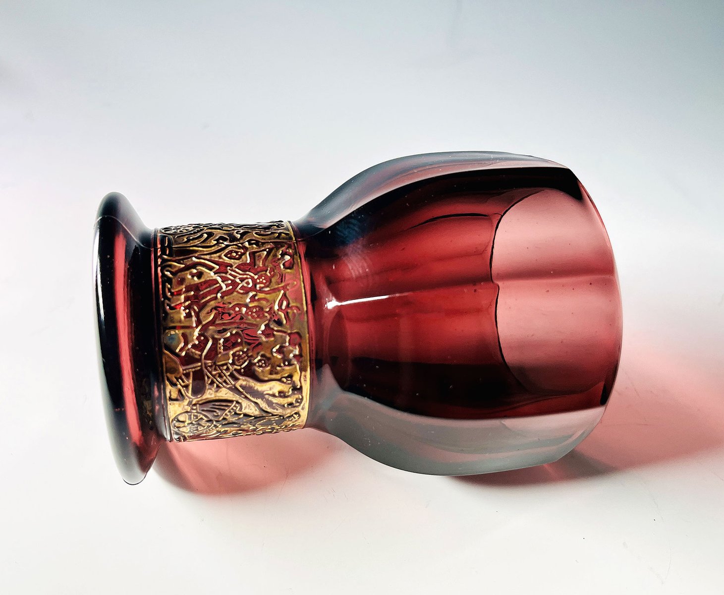 German Walther Amethyst Glass Vase with Embossed Gold Band, 1930s
