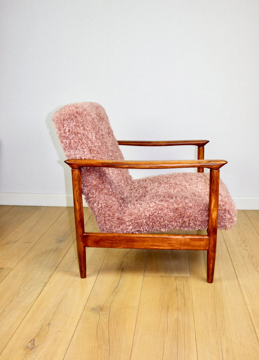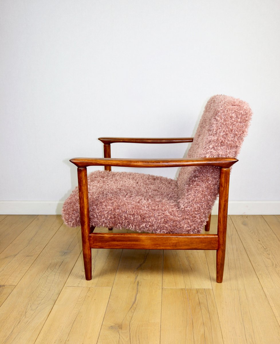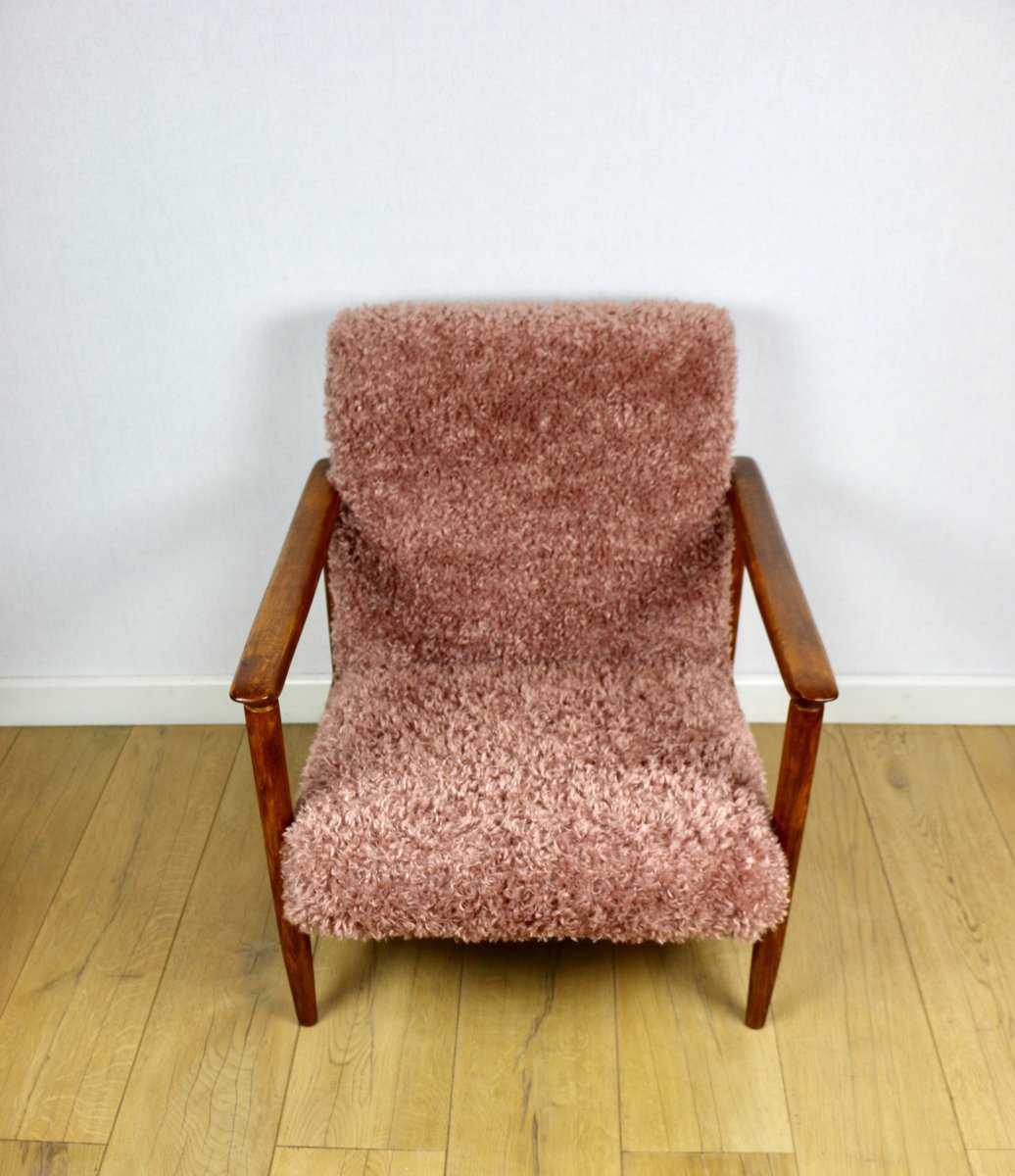 GFM-142 Armchair in Pink Long Hair Upholstery attributed to Edmund Homa, 1970s