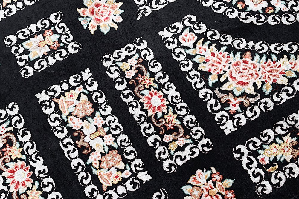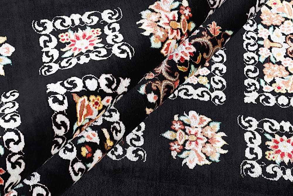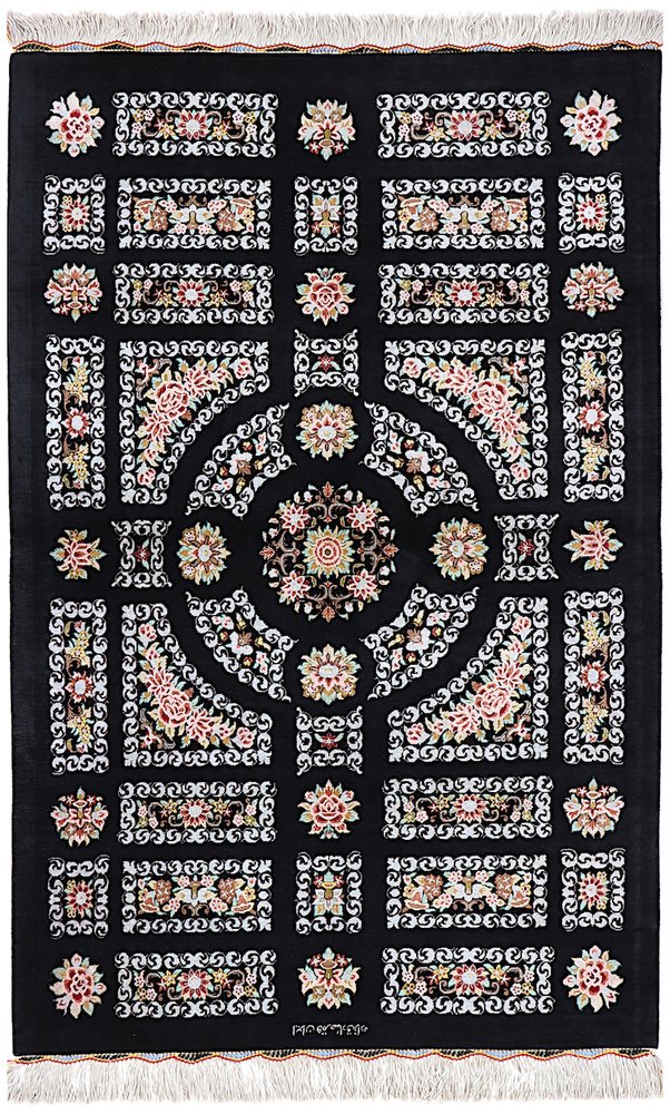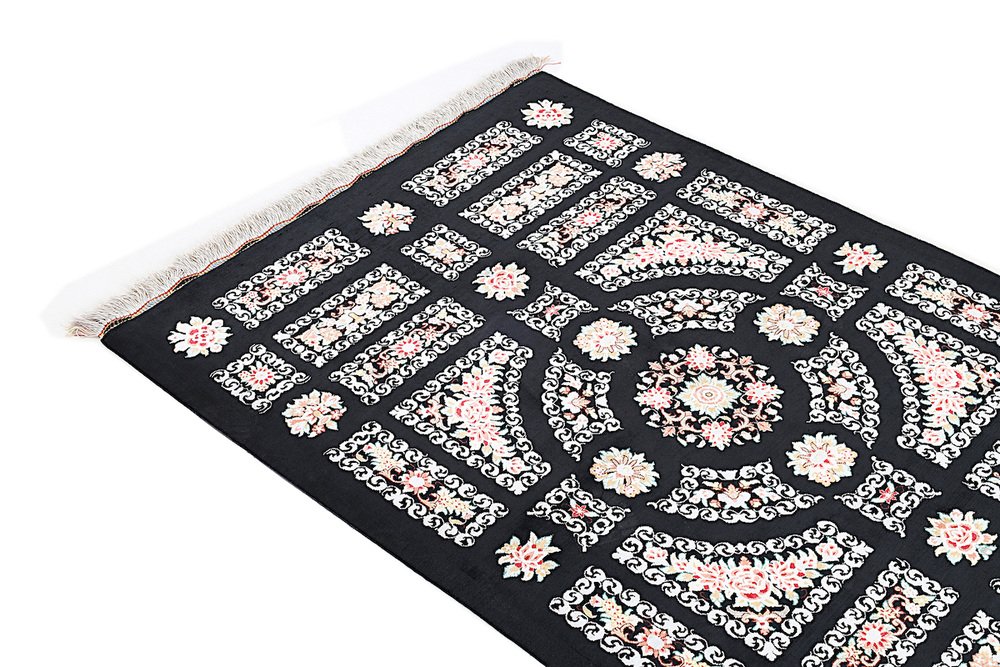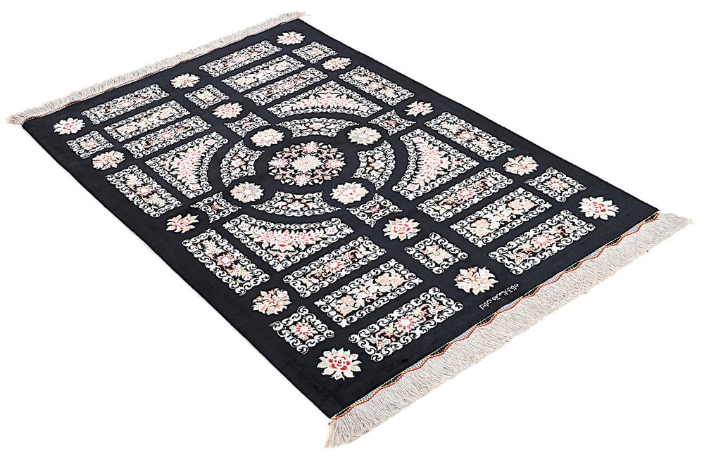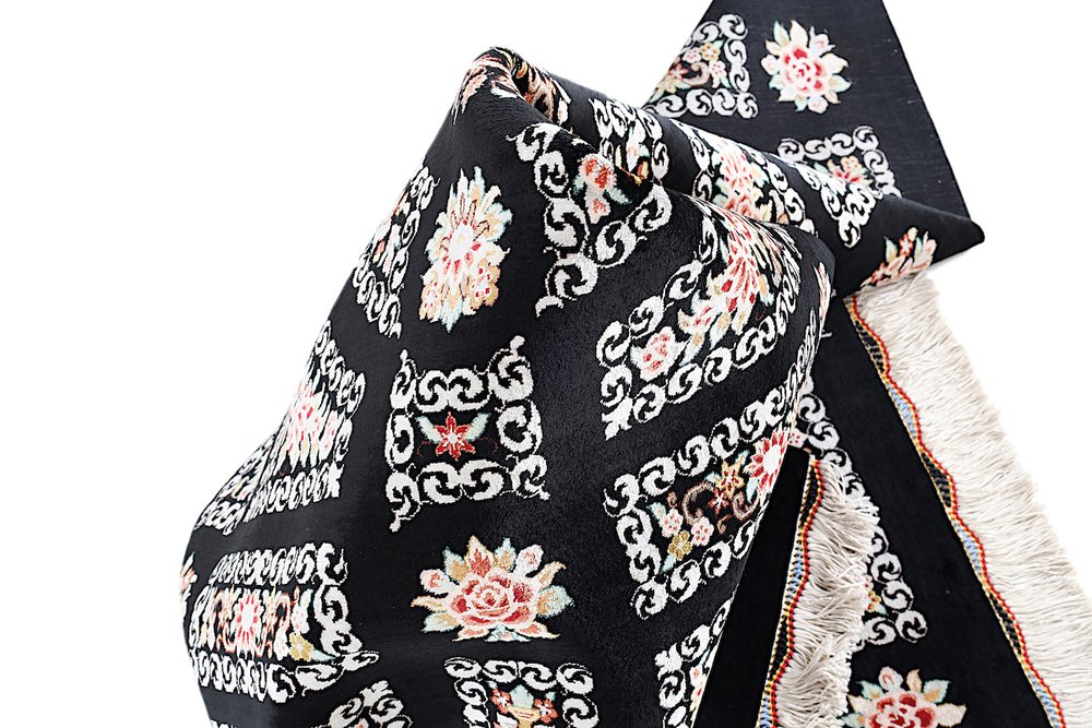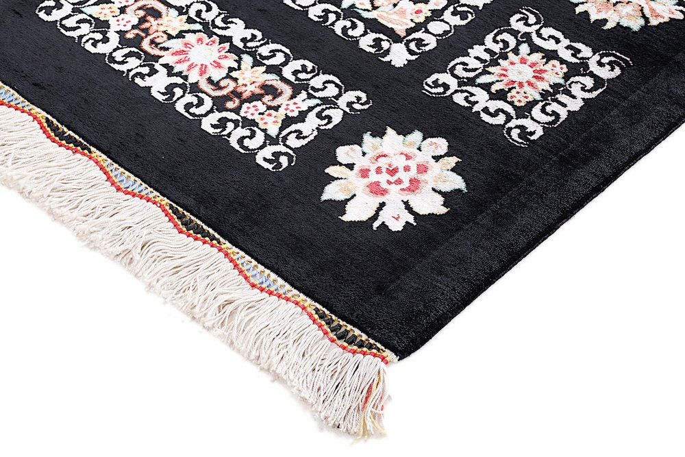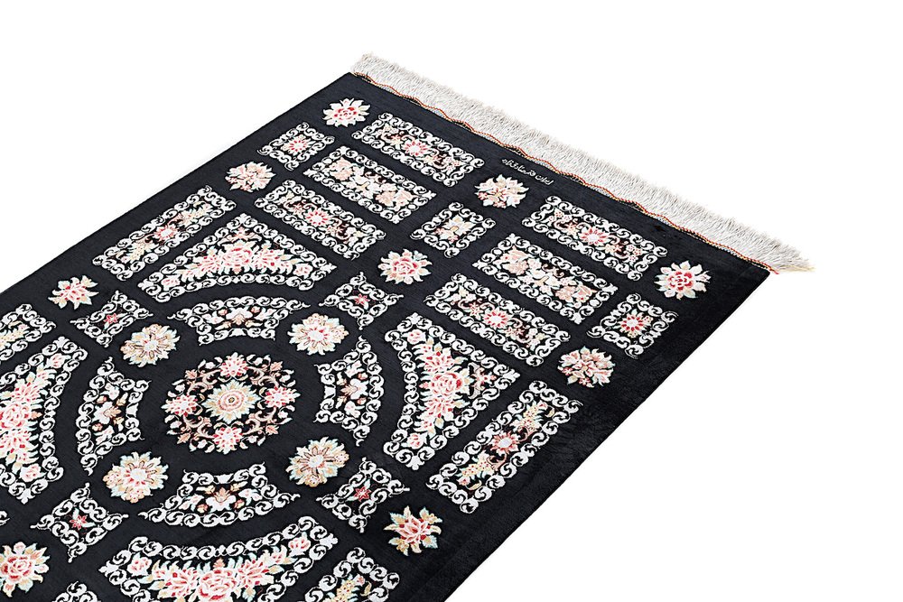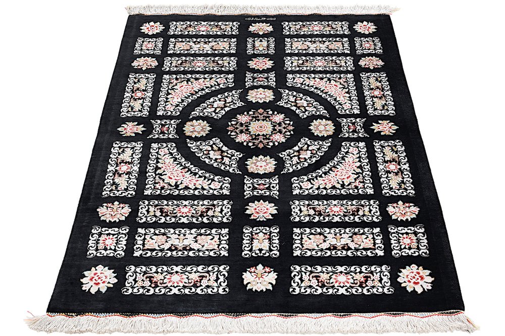 Ghom Silk Rug in Black