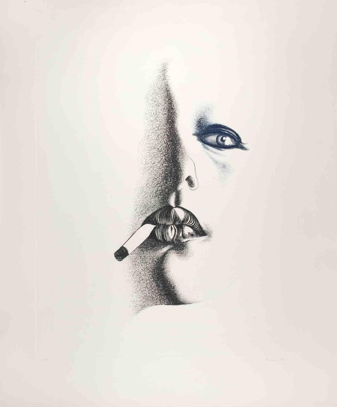 Giacomo Porzano, Smoker in White, Etching, 1972