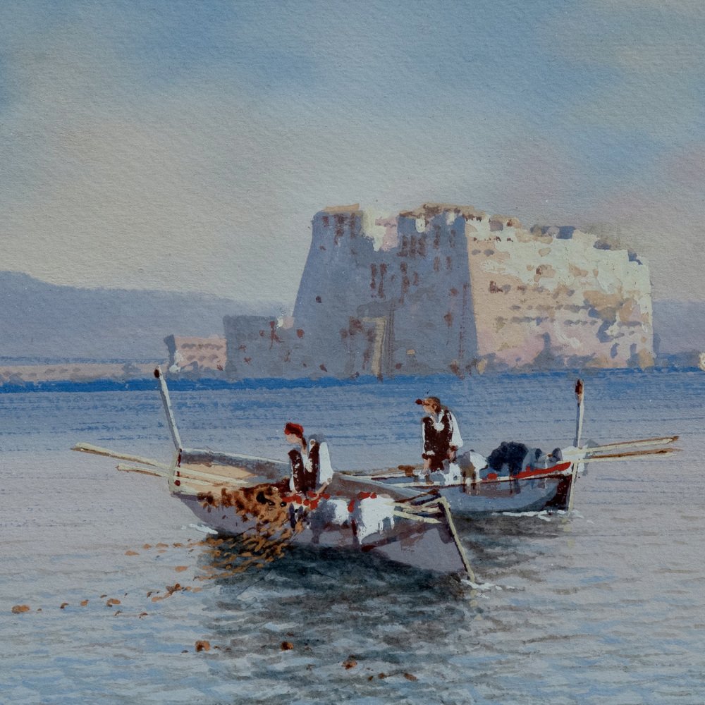Gianni Girolamo, Neapolitan Landscape, 1800s, Tempera, Framed