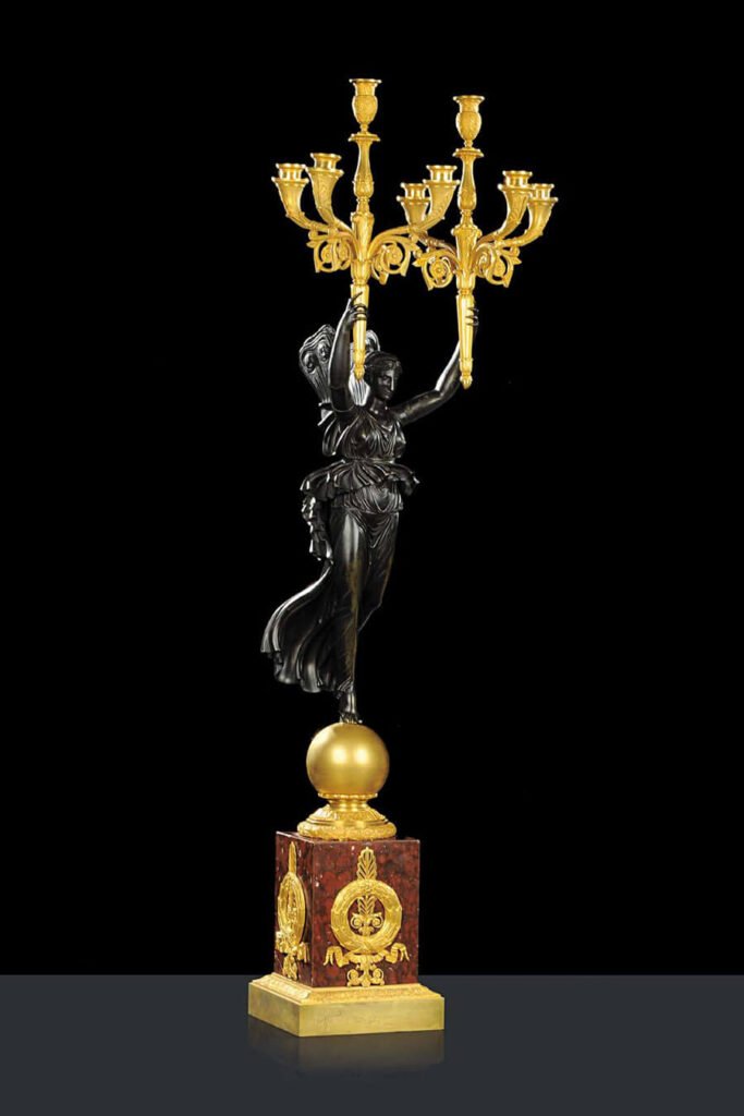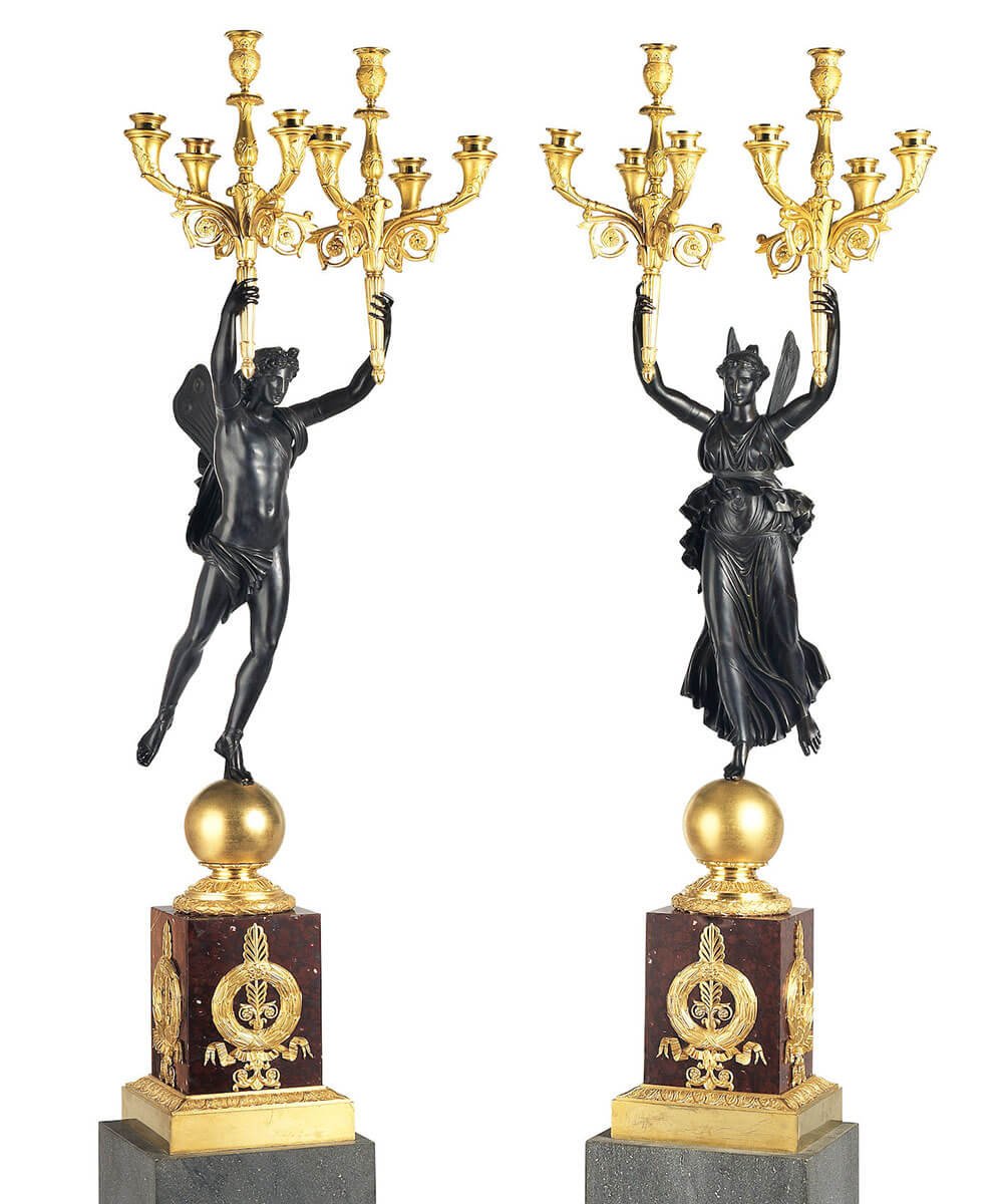 Monumental figural candelabra of this height, sculptural ambition and level of execution are exceptionally rare. While smaller Empire candelabra are relatively well documented, examples exceeding one metre in height — and preserved as a complete and harmonious pair — are seldom encountered. Their survival reflects both the extraordinary quality of their manufacture and the importance of their original setting.
