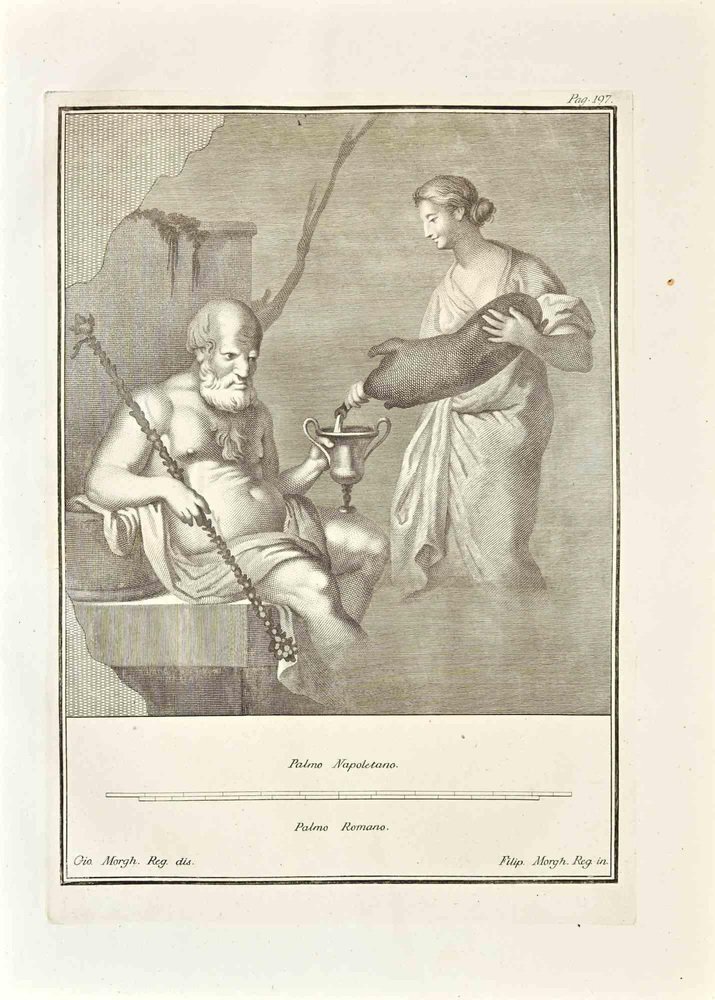 Giovanni Elia Morghen, Ancient Roman Fresco Herculaneum, Original Etching, 18th Century