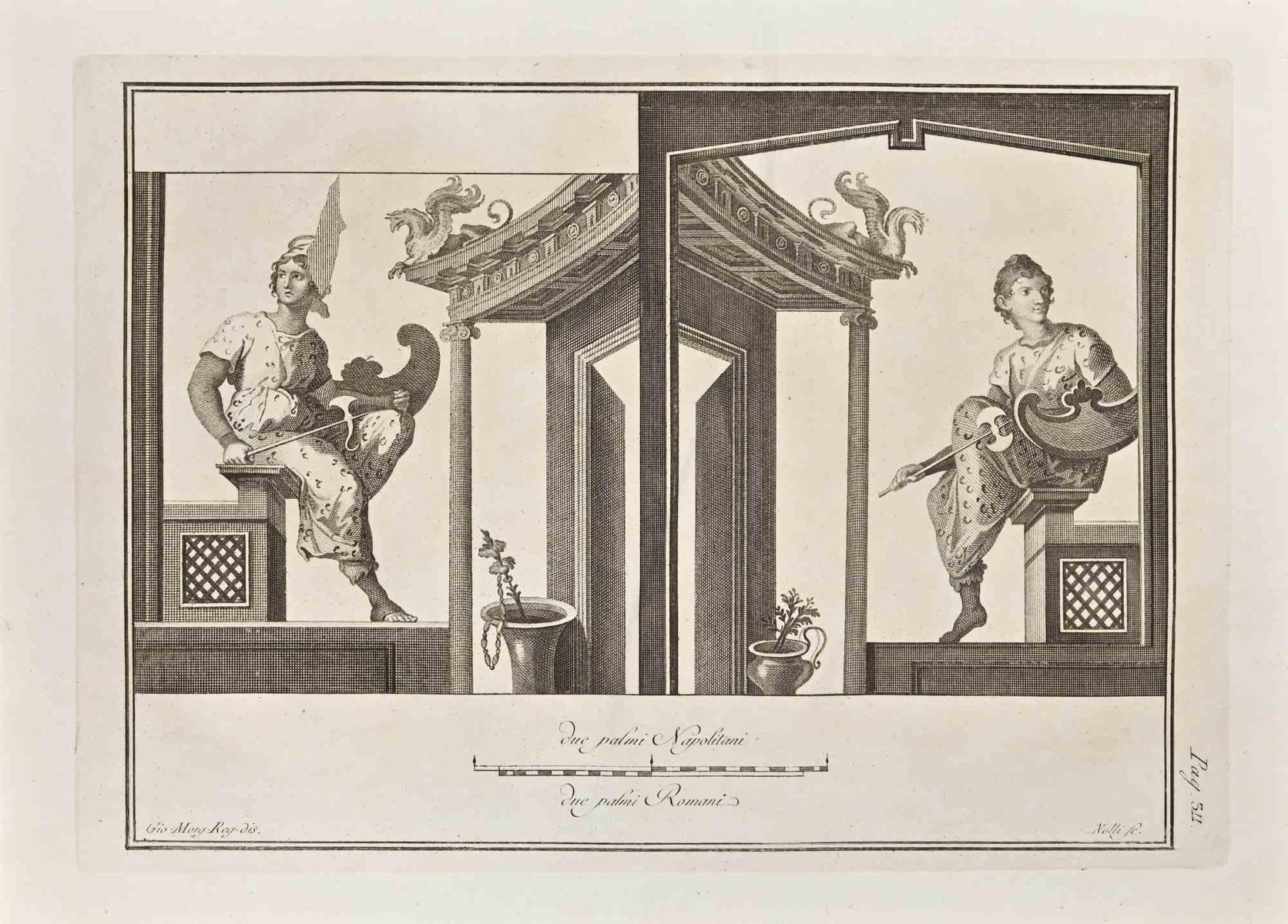 Giovanni Elia Morghen, Ancient Roman Fresco Herculaneum, Original Etching, 18th Century